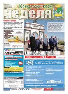 неделя Ковровская 12+ свежие новости, рассказы о земляках, актуальные темы, культурная и спортивная жизнь, официальная информация, афиша, объявления, сканворд и немного юмора. Городская информационноаналитическая газета ● ШПОН FINE-LINE ● ПИЛОМАТЕРИАЛЫ (ЭКЗОТИКА) ● НАТУРАЛЬНЫЙ ШПОН ● МЕБЕЛЬНЫЙ ЩИТ ● КЛЕЙ, ГРУНТ, ЛАК ● ТЕРРАСНАЯ ДОСКА Северный проезд, д. 1 Лесоторговая база 2-42-02 8-919-022-02-99 8-919-022-02-88 8-919-022-02-77 8-919-022-02-33 КОМПАНИЯ ВУДСТОК реклама реклама №39 (312) 29 сентября 2017 г. – ÑËÅÑÀÐÜ ÀÂÐ âîäîïðîâîäíûõ ñåòåé, 4-6 ðàçðÿäîâ – ÎÁÕÎÄ×ÈÊ âîäîïðîâîäíî-êàíàëèçàöèîííûõ ñåòåé – ÑËÅÑÀÐÜ-ÑÀÍÒÅÕÍÈÊ 4-6 ðàçðÿäîâ – ÌÀØÈÍÈÑÒ ÝÊÑÊÀÂÀÒÎÐÀ – ÍÀËÀÄ×ÈÊ ìàøèí è àâòîìàòè÷åñêèõ ëèíèé ïî ïðîèçâîäñòâó èçäåëèé èç ïëàñòìàññ 5-6 ðàçðÿäîâ – ÏÅÐÅÂÎÄ×ÈÊ (àíãë. ÿçûê, îïûò íå ìåíåå 3-õ ëåò) – ÕÓÄÎÆÅÑÒÂÅÍÍÛÉ ÐÓÊÎÂÎÄÈÒÅËÜ â ÄÊ èì. Â.À. Äåãòÿð¸âà – ÞÐÈÑÊÎÍÑÓËÜÒ ÏÐÎÈÇÂÎÄÈÒ ÍÀÁÎÐ ÎÁÐÀÙÀÒÜÑß Â ÓÏÐÀÂËÅÍÈÅ ÏÎ ÐÀÁÎÒÅ Ñ ÏÅÐÑÎÍÀËÎÌ ÎÀÎ «ÇèÄ»: óë. Òðóäà, ä. 4, 1 ýòàæ, êàá. ¹3, ïíä. – ïò. ñ 8.00 äî 12. Òåë.: (49232) 9-10-40 ÏÐÅÈÌÓÙÅÑÒÂÀ ÐÀÁÎÒÛ ÍÀ ÍÀØÅÌ ÏÐÅÄÏÐÈßÒÈÈ: îôèöèàëüíîå òðóäîóñòðîéñòâî, ìåäèöèíñêèé îñìîòð çà ñ÷åò ñðåäñòâ ïðåäïðèÿòèÿ, âûñîêàÿ çàðàáîòíàÿ ïëàòà ðåêëàìà НОВЫЕ МЕДИЦИНСКИЕ ТЕХНОЛОГИИ медицинская ЛАБОРАТОРИЯ Прием специалистов: • АЛЛЕРГОЛОГ-ИММУНОЛОГ Русаковская Марина Геннадьевна, врач высшей категории из г. Владимира Борута Ирина Павловна, врач высшей категории из г. Владимира (прием с 0 лет) • терапевт, • акушер-гинеколог, • гастроэнтеролог, • ревматолог, • уролог • эндокринолог УЗИ, ЭКГ взрослым и детям *Перечень и стоимость анализов уточняйте у администратора при регистрации. Место проведения акции: г. Ковров пр-т Ленина, д. 35 (тел. 6-43-48.) с 5.08.2017 по 5.09.2017. Акцию проводит ООО «Медлайн». Лицензия № ЛО33-01-001806 от 05.03.15г. выдана департаментом здравоохранения администрации Владимирской области. ОГРН 1143327006459, ИНН 3327124955. скидки по акции и дисконтным картам не суммируются nmt33.ru ВСЕ ВИДЫ АНАЛИЗОВ, ЗАБОР КРОВИ С 0 ЛЕТ АНАЛИЗЫ В ДЕНЬ ОБРАЩЕНИЯ* РЕКЛАМА ÈÌÅÞÒÑß ÏÐÎÒÈÂÎÏÎÊÀÇÀÍÈß. ÍÅÎÁÕÎÄÈÌÀ ÊÎÍÑÓËÜÒÀÖÈß ÑÏÅÖÈÀËÈÑÒÀ г. Ковров, пр-т Ленина, д. 35, 8-930-830-09-57, 8-900-477-55-11 тел. 8(49232) 6-43-48, АКЦИЯ!* с 1 сентября по 1 октября скидка 25% на панели аллергенов (20 аллергенов): педиатрическая, респираторная, универсальная, пищевая страница 3 ЕДИНОМЫШЛЕННИКИ встретились в Курске Глава Коврова Анатолий Зотов принял участие в торжествах, посвященных 985-летию со дня основания Курска. В этом городе также прошло заседание правления Союза городов воинской славы, на котором обсудили планы Союза на 2018 год. Читайте в номере: