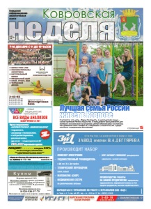 неделя Ковровская 12+ Городская информационноаналитическая газета ● ШПОН FINE-LINE ● ПИЛОМАТЕРИАЛЫ (ЭКЗОТИКА) ● НАТУРАЛЬНЫЙ ШПОН ● МЕБЕЛЬНЫЙ ЩИТ ● КЛЕЙ, ГРУНТ, ЛАК ● ТЕРРАСНАЯ ДОСКА Северный проезд, д. 1 Лесоторговая база 2-42-02 8-919-022-02-99 8-919-022-02-88 8-919-022-02-77 8-919-022-02-33 КОМПАНИЯ ВУДСТОК реклама реклама №52 (325) 1 декабря 2017 г. – ÈÍÆÅÍÅÐ-ÝËÅÊÒÐÎÍÈÊ – ÕÓÄÎÆÅÑÒÂÅÍÍÛÉ ÐÓÊÎÂÎÄÈÒÅËÜ â ÄÊ èì. Â.À. Äåãòÿð¸âà – ÒÅÕÍÈ×ÅÑÊÈÉ ÏÅÐÅÂÎÄ×ÈÊ (àíãë. ÿçûê) – ÌÀÒÅÌÀÒÈÊ (ÑÀÏÐ) – ÌÅÄÈÖÈÍÑÊÀß ÑÅÑÒÐÀ ïî äèåòè÷åñêîìó ïèòàíèþ – ÂÐÀ× ÀÊÓØÅÐ-ÃÈÍÅÊÎËÎà ôåëüäøåðñêîãî çäðàâïóíêòà, âûñøåé êàòåãîðèè ÏÐÎÈÇÂÎÄÈÒ ÍÀÁÎÐ ÎÁÐÀÙÀÒÜÑß Â ÓÏÐÀÂËÅÍÈÅ ÏÎ ÐÀÁÎÒÅ Ñ ÏÅÐÑÎÍÀËÎÌ ÎÀÎ «ÇèÄ»: óë. Òðóäà, ä. 4, 1 ýòàæ, êàá. ¹3, ïíä. – ïò. ñ 8.00 äî 12. Òåë.: (49232) 9-10-40 ðåêëàìà ÏÐÅÈÌÓÙÅÑÒÂÀ ÐÀÁÎÒÛ ÍÀ ÍÀØÅÌ ÏÐÅÄÏÐÈßÒÈÈ: îôèöèàëüíîå òðóäîóñòðîéñòâî, ìåäèöèíñêèé îñìîòð çà ñ÷åò ñðåäñòâ ïðåäïðèÿòèÿ, âûñîêàÿ çàðàáîòíàÿ ïëàòà НОВЫЕ МЕДИЦИНСКИЕ ТЕХНОЛОГИИ Прием специалистов: • АЛЛЕРГОЛОГ-ИММУНОЛОГ • терапевт, • акушер-гинеколог, • гастроэнтеролог, • ревматолог, • уролог • эндокринолог УЗИ, ЭКГ взрослым и детям *Перечень и стоимость анализов уточняйте у администратора при регистрации. Лицензия № ЛО-33-01-001806 от 05.03.15 г. выдана департаментом здравоохранения администрации Владимирской области. ОГРН 1143327006459, ИНН 3327124955. скидки по акции и дисконтным картам не суммируются nmt33.ru ВСЕ ВИДЫ АНАЛИЗОВ ЗАБОР КРОВИ С 0 ЛЕТ АНАЛИЗЫ В ДЕНЬ ОБРАЩЕНИЯ* РЕКЛАМА ÈÌÅÞÒÑß ÏÐÎÒÈÂÎÏÎÊÀÇÀÍÈß. ÍÅÎÁÕÎÄÈÌÀ ÊÎÍÑÓËÜÒÀÖÈß ÑÏÅÖÈÀËÈÑÒÀ г. Ковров, пр-т Ленина, д. 35, 8-930-830-09-57, 8-900-477-55-11 тел. 8(49232) 6-43-48 АКЦИЯ!* с 15.11 по 15.12 скидка 20% на все виды анализов при одновременной сдаче анализов двумя и более членами семьи страница 15 7-10 декабря с 11 до 19 часов реклама Считается, что дети – божья благодать, а многодетная семья – самая крепкая ячейка общества. В преддверии празднования Дня матери в московском культурном центре «Измайлово» состоялось чествование таких семейств, собранных со всей России. Среди них были и ковровчане Молчановы. Лучшая семья России живёт в Коврове