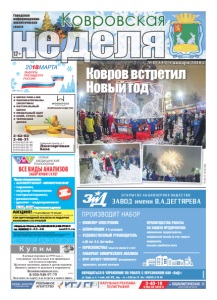 Ковровская Городская информационноаналитическая газета ● ШПОН FINELINE ● ПИЛОМАТЕРИАЛЫ ЭКЗОТИКА ● НАТУРАЛЬНЫЙ ШПОН ● МЕБЕЛЬНЫЙ ЩИТ ● КЛЕЙ, ГРУНТ, ЛАК ● ТЕРРАСНАЯ ДОСКА Северный проезд, д. 1 Лесоторговая база 24202 24631 89190220299 89190220288 89190220277 89190220233 КОМПАНИЯ ВУДСТОК реклама реклама №1 (335) 5 января 2018 г. Фото И. Волкова – ÈÍÆÅÍÅÐ-ÝËÅÊÒÐÎÍÈÊ – ØËÈÔÎÂÙÈÊ 4-6 ðàçðÿäîâ – ÕÓÄÎÆÅÑÒÂÅÍÍÛÉ ÐÓÊÎÂÎÄÈÒÅËÜ â ÄÊ èì. Â.À. Äåãòÿð¸âà – ÞÐÈÑÊÎÍÑÓËÜÒ (îïûò íå ìåíåå 3-õ ëåò) – ËÀÁÎÐÀÍÒ ÕÈÌÈ×ÅÑÊÎÃÎ ÀÍÀËÈÇÀ – ÂÐÀ× ÀÊÓØÅÐ-ÃÈÍÅÊÎËÎà ôåëüäøåðñêîãî çäðàâïóíêòà, âûñøåé êàòåãîðèè ÏÐÎÈÇÂÎÄÈÒ ÍÀÁÎÐ ÎÁÐÀÙÀÒÜÑß Â ÓÏÐÀÂËÅÍÈÅ ÏÎ ÐÀÁÎÒÅ Ñ ÏÅÐÑÎÍÀËÎÌ ÎÀÎ «ÇèÄ»: óë. Òðóäà, ä. 4, 1 ýòàæ, êàá. ¹3, ïíä. – ïò. ñ 8.00 äî 12. Òåë.: (49232) 9-10-40 ðåêëàìà ÏÐÅÈÌÓÙÅÑÒÂÀ ÐÀÁÎÒÛ ÍÀ ÍÀØÅÌ ÏÐÅÄÏÐÈßÒÈÈ: îôèöèàëüíîå òðóäîóñòðîéñòâî, ìåäèöèíñêèé îñìîòð çà ñ÷åò ñðåäñòâ ïðåäïðèÿòèÿ, âûñîêàÿ çàðàáîòíàÿ ïëàòà 12+ НОВЫЕ МЕДИЦИНСКИЕ ТЕХНОЛОГИИ Прием специалистов: • АЛЛЕРГОЛОГ-ИММУНОЛОГ • терапевт, • акушер-гинеколог, • гастроэнтеролог, • ревматолог, • уролог • эндокринолог УЗИ, ЭКГ взрослым и детям *Перечень и стоимость анализов уточняйте у администратора при регистрации. Лицензия № ЛО-33-01-001806 от 05.03.15 г. выдана департаментом здравоохранения администрации Владимирской области. ОГРН 1143327006459, ИНН 3327124955. скидки по акции и дисконтным картам не суммируются nmt33.ru ВСЕ ВИДЫ АНАЛИЗОВ ЗАБОР КРОВИ С 0 ЛЕТ ог АНАЛИЗЫ В ДЕНЬ ОБРАЩЕНИЯ* РЕКЛАМА Ä Ö Ö ÈÌÅÞÒÑß ÏÐÎÒÈÂÎÏÎÊÀÇÀÍÈß. ÍÅÎÁÕÎÄÈÌÀ ÊÎÍÑÓËÜÒÀÖÈß ÑÏÅÖÈÀËÈÑÒÀ г. Ковров, пр-т Ленина, д. 35, 8-930-830-09-57, 8-900-477-55-11 тел. 8(49232) 6-43-48 АКЦИЯ! с 15 декабря до 15 января сдай комплекс гормонов щитовидной железы* и получи УЗИ ЩИТОВИДНОЙ ЖЕЛЕЗЫ В ПОДАРОК ЭКОНОМИЯ 550 РУБЛЕЙ Ковров встретил Новый год Фото И Волкова
