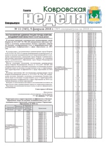 № 11 (345), 9 февраля 2018 г. (№5 спецвыпуска за 2018 г.) ǺDzDZDzǸȌ ǸȜȐȞȜȐȟȘȎȭ Спецвыпуск Газета ПОСТАНОВЛЕНИЕ АДМИНИСТРАЦИИ ГОРОДА КОВРОВА ВЛАДИМИРСКОЙ ОБЛАСТИ № 314 ОТ 02.02.2018 Г. О внесении изменений в постановление администрации города Коврова от 18.12.2017 № 3706 «Об утверждении итоговых значений и величины составляющих базовых норматив затрат на оказание государственных услуг и территориальных корректирующих коэффициентов в сфере образования на 2018 год» В соответствии с постановлением администрации города Коврова от 09.10.2015 № 2558 «О порядке формирования муниципального задания на оказание муниципальных услуг (выполнения работ) в отношении муниципальных учреждений города Коврова и финансового обеспечения выполнения муниципального задания», на основании Устава муниципального образования город Ковров Владимирской области постановляю: Внести следующие измененияв постановление администрации города Коврова Владимирской области от 18.12.2017 №3706 «Об утверждении итоговых значений и величины составляющих базовых норматив затрат на оказание государственных услуг и территориальных корректирующих коэффициентов в сфере образования на 2018 год»: Изложить приложение №2 постановления администрации города Коврова Владимирской области от 18.12.2017 № 3706 «Об утверждении итоговых значений и величины составляющих базовых норматив затрат на оказание государственных услуг и территориальных корректирующих коэффициентов в сфере образования на 2018 год» в новой редакции согласно приложения. Контроль за исполнением настоящего постановления возложить на заместителя главы администрации города по социальным вопросам. Настоящее постановление вступает в силу со дня его официального опубликования. Глава города А.В.Зотов Приложение к постановлению администрации города Коврова от «02» февраля 2018№ 314 Территориальные корректирующие коэффициенты к базовым нормативам затрат на оказание муниципальных услуг для муниципальных учреждений, подведомственных Управлению образования, на 2018 год Уникальный номер реестровой записи Наименование муниципальной услуги Территориальный корректирующий коэффициент Примечания 1772500001310 0697091178500 1100200006005 100101 Присмотр и уход 1,2654 1,2518 1,1917 1,4419 1,5050 1,8683 1,3278 1,1283 1,0674 1,5497 1,1493 1,8133 1,0989 1,1714 1,0310 1,2084 1,3987 1,2851 1,2017 1,2929 1,0513 1,0255 1,1905 1,4112 МАДОУ № 1 МБДОУ № 4 МБДОУ № 5 МБДОУ № 6 МБДОУ № 8 МБДОУ № 9 МБДОУ № 10 МБДОУ № 11 МБДОУ № 12 МБДОУ № 18 МБДОУ № 19 МБДОУ № 22 МБДОУ № 23 МБДОУ № 29 МБДОУ № 32 МБДОУ № 33 МБДОУ № 34 МБДОУ № 35 МБДОУ № 36 МБДОУ № 37 МБДОУ № 38 МБДОУ № 39 МБДОУ № 41 МБДОУ № 43 1,1972 1,1702 1,3547 1,1332 1,1405 1, 2066 1,0721 1,3789 1,1032 1,1565 1,1817 МБДОУ № 44 МБДОУ № 46 МБДОУ № 47 МБДОУ № 48 МБДОУ № 49 МБДОУ № 51 МБДОУ № 52 МБДОУ № 54 МБДОУ № 55 МБДОУ № 57 МБДОУ № 59 1772500001310 0697091178500 0500200006003 100101 Присмотр и уход 1,2444 1,2379 1,00 1,00 1,4825 1,00 1,00 1,00 1,00 1,00 1,00 1,00 1,0908 1,00 1,00 1,00 1,00 1,00 1,00 1,00 1,00 1,00 1,00 1,00 1,1319 1,00 1,3418 1,00 1,00 1,00 1,00 1,1228 1,00 1,00 1,00 МАДОУ № 1 МБДОУ № 4 МБДОУ № 5 МБДОУ № 6 МБДОУ № 8 МБДОУ № 9 МБДОУ № 10 МБДОУ № 11 МБДОУ № 12 МБДОУ № 18 МБДОУ № 19 МБДОУ № 22 МБДОУ № 23 МБДОУ № 29 МБДОУ № 32 МБДОУ № 33 МБДОУ № 34 МБДОУ № 35 МБДОУ № 36 МБДОУ № 37 МБДОУ № 38 МБДОУ № 39 МБДОУ № 41 МБДОУ № 43 МБДОУ № 44 МБДОУ № 46 МБДОУ № 47 МБДОУ № 48 МБДОУ № 49 МБДОУ № 51 МБДОУ № 52 МБДОУ № 54 МБДОУ № 55 МБДОУ № 57 МБДОУ № 59 1772500001310 0697091178500 1100300006003 100101 Присмотр и уход 1,0454 1,0507 0,9907 1,1939 1,3903 1,5468 1,0994 0,9342 0,8890 3,3987 1,5298 0,9515 1,5252 0,9062 0,9699 0,8536 1,0135 1,1581 1,0640 1,0588 1,0704 0,8705 0,8491 0,9857 1,1877 0,9371 0,9689 1,1110 0,9382 0,9529 0,99