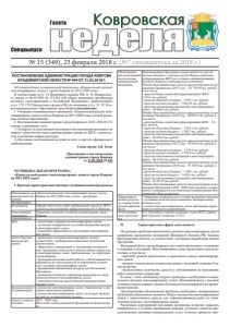 № 15 23 февраля 2018 г. 2 гоквартирные дома в соответствие с требованиями нормативно-технической документации. III. Приоритеты, цели и задачи в сфере деятельности Основными целями программы являются: - обеспечение сохранности многоквартирных домов; - улучшение комфортности и условий проживания граждан в многоквартирных домах; - повышение эффективности эксплуатации многоквартирных домов. Для реализации поставленных целей необходимо решить следующие задачи: - иметь полную и достоверную информацию по состоянию многоквартирных домов на территории муниципального образования город Ковров (электронные паспорта); - эффективно планировать и организовывать своевременное проведение капитального ремонта общего имущества в многоквартирных домах, расположенных на территории города Коврова; - разъяснить собственникам помещений об их ответственности за нормативное техническое состояние многоквартирных домов; - сформировать финансовые ресурсы для обеспечения Программы; - привести состояние многоквартирных домов в соответствие с требованиями нормативно-технической документации; - реализовывать механизм софинансирования работ по капитальному ремонту многоквартирных домов; - повысить качество предоставляемых жилищно-коммунальных услуг. IV. Целевые показатели (индикаторы) Основными целевыми показателями (индикаторами) являются: - количество многоквартирных домов, учавствующих в программе капитального ремонта; - количество многоквартирных домов, на которых проведены работы по капитальному ремонту. В региональной программе капитального ремонта по городу Коврову участвуют 1121 многоквартирный дом. В результате исполнения мероприятий программы планируется провести капитальный ремонт: - в 2015 году – на 105 многоквартирных домах; - в 2016 году – на 60 многоквартирных домах; - в 2017 году – на 33 многоквартирных домах; - в 2018 году – на 31 многоквартирных домах; - в 2019 году – на 202 многоквартирных домах; - в 2020 году – на 197 многоквартирных домах. V. Сроки и этапы реализации Срок реализации программы 2015 -2020 гг. Выделение этапов реализации Программы не предусмотрено. VI. Основные мероприятия Для достижения целей и решения задач настоящей Программы необходимо проведение следующих мероприятий: - ежегодное утверждение постановлением администрации города Коврова краткосрочных планов по капитальному ремонту общего имущества многоквартирных домов; - подготовка ведомостей объемов работ на проведение ремонтных работ; - заполнение электронных паспортов на все многоквартирные дома города Коврова, участвующие в региональной программе капитального ремонта; - оформление протоколов решений общих собраний собственников помещений в многоквартирных домах на проведение капитального ремонта; - приемка выполненных работ по капитальному ремонту; - привлечение средств граждан, федерального бюджета, областного бюджета и местного бюджета для проведения капитального ремонта общего имущества многоквартирных домов. VII. Прогноз сводных показателей муниципальных заданий по этапам реализации Программы В рамках реализации Программы муниципальные услуги населению не предоставляются. VIII. Взаимодействие с органами государственной власти и местного самоуправления, организациями и гражданами При реализации Программы Управление городского хозяйства администрации го