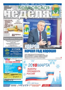 неделя Ковровская Городская информационноаналитическая газета ● ШПОН FINE-LINE ● ПИЛОМАТЕРИАЛЫ (ЭКЗОТИКА) ● НАТУРАЛЬНЫЙ ШПОН ● МЕБЕЛЬНЫЙ ЩИТ ● КЛЕЙ, ГРУНТ, ЛАК ● ТЕРРАСНАЯ ДОСКА Северный проезд, д. 1 Лесоторговая база 2-42-02 2-46-31 8-919-022-02-99 8-919-022-02-88 8-919-022-02-77 8-919-022-02-33 КОМПАНИЯ ВУДСТОК реклама реклама №20 (354) 16 марта 2018 г. 12+ НОВЫЕ МЕДИЦИНСКИЕ ТЕХНОЛОГИИ Прием специалистов: • АЛЛЕРГОЛОГ-ИММУНОЛОГ • терапевт, • акушер-гинеколог, • гастроэнтеролог, • ревматолог, • уролог • эндокринолог УЗИ, ЭКГ взрослым и детям *Стоимость исследований уточняйте у администра при оформлении. Скидки по дисконтным картам и другим акциям не суммируются. Лицензия № ЛО-33-01-001806 от 05.03.15 г. выдана департаментом здравоохранения администрации Владимирской области. ОГРН 1143327006459, ИНН 3327124955. nmt33.ru ВСЕ ВИДЫ АНАЛИЗОВ АНАЛИЗЫ В ДЕНЬ ОБРАЩЕНИЯ* РЕКЛАМА ÈÌÅÞÒÑß ÏÐÎÒÈÂÎÏÎÊÀÇÀÍÈß. ÍÅÎÁÕÎÄÈÌÀ ÊÎÍÑÓËÜÒÀÖÈß ÑÏÅÖÈÀËÈÑÒÀ г. Ковров, пр-т Ленина, д. 35, 8-930-830-09-57, 8-900-477-55-11 тел. 8(49232) 6-43-48 АКЦИЯ! «ПРОВЕРЬ СВОЁ ЗДОРОВЬЕ» С 10 февраля по 1 апреля СКИДКА 70% на комплекс из 10 медицинских анализов: общий анализ крови, СОЭ, общий анализ мочи, АЛАТ, АСАТ, глюкоза, холестерин общий, мочевина, креатинин, общий белок – 350 рублей вместо 1180 руб. (без учета забора крови) ЗАБОР КРОВИ С 0 ЛЕТ 1 сентября – 240 лет Коврову реклама страница 3 Глава города Анатолий Зотов рассказал на пресс-конференции о том, как Ковров прожил первые месяцы 2018-го. В январе и феврале отмечено немало позитивных изменений в промышленности, в бюджетной политике и в социальной сфере. КОВРОВ начал год хорошо