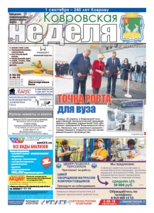 неделя Ковровская Городская информационноаналитическая газета ● ШПОН FINE-LINE ● ПИЛОМАТЕРИАЛЫ (ЭКЗОТИКА) ● НАТУРАЛЬНЫЙ ШПОН ● МЕБЕЛЬНЫЙ ЩИТ ● КЛЕЙ, ГРУНТ, ЛАК ● ТЕРРАСНАЯ ДОСКА Северный проезд, д. 1 Лесоторговая база 2-42-02 2-46-31 8-919-022-02-99 8-919-022-02-88 8-919-022-02-77 8-919-022-02-33 КОМПАНИЯ ВУДСТОК реклама реклама №31 (365) 27 апреля 2018 г. Фото А. Соколова 12+ НОВЫЕ МЕДИЦИНСКИЕ ТЕХНОЛОГИИ Прием специалистов: • АЛЛЕРГОЛОГ-ИММУНОЛОГ • терапевт, • акушер-гинеколог, • гастроэнтеролог, • ревматолог, • уролог • эндокринолог УЗИ, ЭКГ взрослым и детям *Перечень и стоимость анализов уточняйте у администратора при регистрации. Место проведения акции: г. Ковров пр-т Ленина, д. 35 (тел. 6-43-48.) с 1.04.2018 по 1.05.2018. Акцию проводит ООО «Медлайн». Количество призов ограничено. Лицензия № ЛО-33-01-001806 от 05.03.15 г. выдана департаментом здравоохранения администрации Владимирской области. ОГРН 1143327006459, ИНН 3327124955. nmt33.ru ВСЕ ВИДЫ АНАЛИЗОВ АНАЛИЗЫ В ДЕНЬ ОБРАЩЕНИЯ* РЕКЛАМА ÈÌÅÞÒÑß ÏÐÎÒÈÂÎÏÎÊÀÇÀÍÈß. ÍÅÎÁÕÎÄÈÌÀ ÊÎÍÑÓËÜÒÀÖÈß ÑÏÅÖÈÀËÈÑÒÀ г. Ковров, пр-т Ленина, д. 35, 8-930-830-09-57, 8-900-477-55-11 тел. 8(49232) 6-43-48 ЗАБОР КРОВИ С 0 ЛЕТ АКЦИЯ!* с 1 апреля по 1 мая 2018 г. Панели аллергенов производства Германия со скидкой 20%. 20 аллергенов: педиатрическая, респираторная, универсальная, пищевая. страница 3 реклама реклама 1 сентября – 240 лет Коврову В среду, 25 апреля, в Ковровской государственной технологической академии прошло собрание учредителей Лиги оборонных предприятий Владимирской области. Началось оно с приятного момента – торжественного открытия опытно-экспериментального производства. ТОЧКА РОСТА для вуза