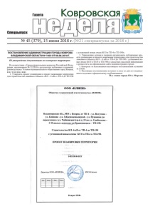 № 45 15 июня 2018 г. 54 ИНФОРМАЦИОННОЕ СООБЩЕНИЕ В соответствии со статьей 39.18 Земельного кодекса Российской Федерации, администрация города информирует население о возможности предоставления в аренду земельного участка для строительства индивидуального жилого дома по адресу: Владимирская обл., МО г. Ковров (городской округ), г. Ковров, ул. Живописная, д. 29, с кадастровым номером 33:20:017104:125, площадью 964,0 кв.м. Граждане, заинтересованные в предоставлении указанного земельного участка, имеют право подать заявление о намерении участвовать в аукционе на право заключения договора аренды такого земельного участка, по адресу: 601900, г. Ковров, ул. Краснознаменная, д. 6, каб. 116, в течение тридцати дней со дня опубликования настоящего информационного извещения. Способ подачи заявлений – письменно, лично (или через представителя по доверенности) либо почтовым отправлением. Заявления о намерении участвовать в аукционе на право заключения договора аренды земельного участка принимаются ежедневно, кроме субботы и воскресенья с 08.00 часов до 17.00 часов (перерыв с 12.00 часов до 13.00 часов). Дата окончания приема заявлений о намерении участвовать в аукционе на право заключения договора аренды земельного участка: 18.07.2018 (по истечении тридцати дней со дня опубликования настоящего информационного извещения). ИНФОРМАЦИОННОЕ СООБЩЕНИЕ В соответствии со статьей 39.18 Земельного кодекса Российской Федерации, администрация города информирует население о возможности предоставления в аренду земельного участка для строительства индивидуального жилого дома по адресу: Владимирская обл., МО г. Ковров (городской округ), г. Ковров, с западной стороны д. 29 по ул. Живописная, с кадастровым номером 33:20:017104:124, площадью 870,0 кв.м. Граждане, заинтересованные в предоставлении указанного земельного участка, имеют право подать заявление о намерении участвовать в аукционе на право заключения договора аренды такого земельного участка, по адресу: 601900, г. Ковров, ул. Краснознаменная, д. 6, каб. 116, в течение тридцати дней со дня опубликования настоящего информационного извещения. Способ подачи заявлений – письменно, лично (или через представителя по доверенности) либо почтовым отправлением. Заявления о намерении участвовать в аукционе на право заключения договора аренды земельного участка принимаются ежедневно, кроме субботы и воскресенья с 08.00 часов до 17.00 часов (перерыв с 12.00 часов до 13.00 часов). Дата окончания приема заявлений о намерении участвовать в аукционе на право заключения договора аренды земельного участка: 18.07.2018 (по истечении тридцати дней со дня опубликования настоящего информационного извещения). ПОСТАНОВЛЕНИЕ АДМИНИСТРАЦИИ ГОРОДА КОВРОВА ВЛАДИМИРСКОЙ ОБЛАСТИ № 1369 ОТ 08.06.2018 Г. О внесении изменений в постановление администрации г. Коврова от 18.12.2017 № 3705 «Об утверждении муниципальной программы «Обеспечение доступным и комфортным жильем населения города Коврова» на 2015-2020 годы» В соответствии со ст.16 Федерального закона от 06.10.2003 № 131ФЗ «Об общих принципах организации местного самоуправления в Российской Федерации», руководствуясь ст.ст. 179, 179.3 Бюджетного кодекса РФ, на основании Устава муниципального образования город Ковров Владимирской области, постановляю: 1. Внести в муниципальную программу «Обеспечение доступным и комфортным жильем населения города Коврова» на