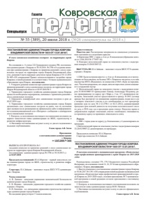 № 55 (389), 20 июля 2018 г. (№26 спецвыпуска за 2018 г.) ǺDzDZDzǸȌ ǸȜȐȞȜȐȟȘȎȭ Спецвыпуск Газета ПОСТАНОВЛЕНИЕ АДМИНИСТРАЦИИ ГОРОДА КОВРОВА ВЛАДИМИРСКОЙ ОБЛАСТИ № 1653 ОТ 13.07.2018 Г. О сносе самовольно возведенных построек на территории города Коврова. На основании п. 4 статьи 222 Гражданского кодекса РФ, постановления администрации г. Коврова от 30.10.2016 № 2786 «О создании комиссии при администрации г. Коврова по принятию решений о сносе самовольных построек на территории города Коврова Владимирской области», решения Совета народных депутатов города Коврова от 01.12.2011 № 460 «Об утверждении Правил землепользования и застройки города Коврова» в новой редакции и в соответствии с Уставом муниципального образования город Ковров, постановляю: 1. Утвердить решение комиссии при администрации города Ковров по принятии решений о сносе самовольных построек, на территории города Ковров Владимирской области от 02.07.2018 № 5. 2. Управлению городского хозяйства администрации города Коврова провести необходимые мероприятия, связанные с принятием решений о сносе самовольных построек. 3. Определить планируемый снос самовольных построек в срок до 02.07.2019 года. 4. Управлению городского хозяйства администрации города Ковров организовать снос самовольных построек не ранее, чем по истечении двух месяцев после размещения на официальном сайте в информационно-телекоммуникационной сети «Интернет» сообщения о планируемом сносе самовольных построек. 5. Контроль за исполнением настоящего постановления возложить на первого заместителя главы администрации по ЖКХ, строительству и развитию инфраструктуры. 6. Настоящее постановление вступает в силу со дня его подписания и подлежит опубликованию. Глава города А.В. Зотов Приложение к постановлению администрации г. Коврова от 13.07.2018 № 1653 ВЫПИСКА ИЗ ПРОТОКОЛА № 5 заседания комиссии по принятию решений о сносе самовольных построек на территории города Коврова Владимирской области (постановление администрации города № 2786 от 30.10.2015 г.) от 02.07.2018 Председательствовавший: Ю.А.Морозов – первый заместитель главы администрации города по ЖКХ, строительству и развитию инфраструктуры. Секретарь: И.А.Зайцева – экономист отдела ЖКХ УГХ администрации г. Коврова. Члены комиссии: А. И. Левченя – начальник управления экономической безопасности администрации города Коврова; Е. В. Фомина – начальник управления городского хозяйства администрации г. Коврова; О. Н. Лопатина – и.о. начальника управления строительства и архитектуры администрации города Коврова. На заседании присутствуют 5 членов комиссии. Присутствовали: Повестка дня: Рассмотрение материалов по самовольно установленным строениям по следующим адресам: 1) Кирпичная ПНС с торца д. 6 по ул. Клязьменская (обращение жителя от 13.06.2018 № 1774/07-16). 3) Повторно металлический гараж на земельном участке с кадастровым номером 33:20:013907:22. ВЫСТУПАЛИ: И.А.Зайцева – экономист отдела ЖКХ УГХ администрации г. Коврова 1. ПНС была построена вместе с д. 6 по ул. Клязьменская, но в эксплуатацию не была введена, на балансе МО г. Ковров не числится, в составе имущества МУП «Водоканал» по концессии в ОАО «ЗиД» не передавалась. Частично разрушена, нет двери, жители окрестных домов скидывают в сооружение мусор. 3. Металлический гараж на земельном участке с кадастровым номером 33:20:0139007:22 принадлежит Ежкову Александру Петрови