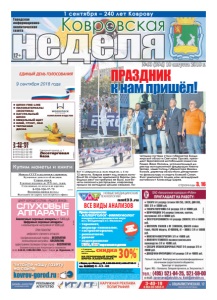неделя Ковровская Городская информационноаналитическая газета 12+ страницы 3, 16 1 сентября – 240 лет Коврову Фото И. Волкова и А. Соколова ● ШПОН FINE-LINE ● ПИЛОМАТЕРИАЛЫ (ЭКЗОТИКА) ● НАТУРАЛЬНЫЙ ШПОН ● МЕБЕЛЬНЫЙ ЩИТ ● КЛЕЙ, ГРУНТ, ЛАК ● ТЕРРАСНАЯ ДОСКА Северный проезд, д. 1 Лесоторговая база 2-42-02 2-46-31 8-919-022-02-99 8-919-022-02-88 8-919-022-02-77 8-919-022-02-33 КОМПАНИЯ ВУДСТОК реклама реклама НОВЫЕ МЕДИЦИНСКИЕ ТЕХНОЛОГИИ Прием специалистов: • АЛЛЕРГОЛОГ-ИММУНОЛОГ кандидаты медицинских наук из г. Владимира и г. Иваново • терапевт, • акушер-гинеколог, • гастроэнтеролог, • ревматолог, • уролог • эндокринолог УЗИ, ЭКГ взрослым и детям *Перечень и стоимость анализов уточняйте у администратора при регистрации. Место проведения акции: г. Ковров пр-т Ленина, д. 35 (тел. 6-43-48.) с 1.08.2018 по 1.09.2018. Акцию проводит ООО «Медлайн». Скидка по дисконтным картам с другими акциями не суммируется. Лицензия № ЛО-33-01-001806 от 05.03.15 г. выдана департаментом здравоохранения администрации Владимирской области. ОГРН 1143327006459, ИНН 3327124955. nmt33.ru ВСЕ ВИДЫ АНАЛИЗОВ АНАЛИЗЫ В ДЕНЬ ОБРАЩЕНИЯ* РЕКЛАМА ÈÌÅÞÒÑß ÏÐÎÒÈÂÎÏÎÊÀÇÀÍÈß. ÍÅÎÁÕÎÄÈÌÀ ÊÎÍÑÓËÜÒÀÖÈß ÑÏÅÖÈÀËÈÑÒÀ г. Ковров, пр-т Ленина, д. 35, 8-930-830-09-57, 8-900-477-55-11 тел. 8(49232) 6-43-48 ЗАБОР КРОВИ С 0 ЛЕТ скидка с 1 августа по 1 сентября 2018 г. НА ПЕРВИЧНЫЙ ПРИЁМ ВРАЧА-АЛЛЕРГОЛОГА 30%* ðåêëàìà №60 (394) 10 августа 2018 г. Àíàëîãîâûå ñëóõîâûå àïïàðàòû îò 5400 ðóá. Öèôðîâûå ñëóõîâûå àïïàðàòû ñ êîìïüþòåðíîé íàñòðîéêîé îò 9000 ðóá. Î ÏÐÎÒÈÂÎÏÎÊÀÇÀÍÈßÕ ÏÐÎÊÎÍÑÓËÜÒÈÐÓÉÒÅÑÜ ÑÎ ÑÏÅÖÈÀËÈÑÒÎÌ ÖÅÍÒÐ ÕÎÐÎØÅÃÎ ÑËÓÕÀ «ÐÀÄÓÃÀ ÇÂÓÊλ ÑËÓÕÎÂÛÅ ÀÏÏÀÐÀÒÛ Âîçìîæåí âûåçä íà äîì. Êîíñóëüòàöèÿ ñî ñïåöèàëèñòîì ïî òåë. 6-46-52, 8-906-562-2992. Àäðåñ: ã. Êîâðîâ, óë. Ôóðìàíîâà, 31 ÏÐÈ ÏÎÊÓÏÊÅ öèôðîâîãî ñëóõîâîãî àïïàðàòà: ïðîôåññèîíàëüíûé ïîäáîð – ÁÅÑÏËÀÒÍÎ êîìïüþòåðíàÿ íàñòðîéêà – ÁÅÑÏËÀÒÍÎ àóäèîãðàììà (ïðîâåðêà ïîòåðè ñëóõà) – ÁÅÑÏËÀÒÍÎ ðåêëàìà Вот и свершилось: всю неделю, с 6 по 12 августа, Ковров живет под знаком мотобола! На открытии чемпионата Европы свободных мест на трибунах не было, все билеты оказались распроданы, ковровчане пришли на мотодром целыми семьями. Почетными гостями стали губернатор Владимирской области Светлана Орлова, президент Европейской мотобольной комиссии Решко Жако Паскаль, исполнительный директор мотоциклетной федерации Никита Теппер, заместитель губернатора Михаил Колков, директор областного департамента физкультуры и спорта Алексей Сипач. Флаг чемпионата поднял наш легендарный мотоболист Александр Царев. ПРАЗДНИК к нам пришёл! kovrov-gorod.ru РЕКЛАМА Читайте нашу газету на сайте