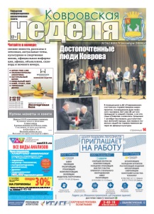 неделя Ковровская свежие новости, рассказы о земляках, актуальные темы, культурная и спортивная жизнь, официальная информация, афиша, объявления, сканворд и немного юмора. Городская информационноаналитическая газета Читайте в номере: 12+ ● ШПОН FINE-LINE ● ПИЛОМАТЕРИАЛЫ (ЭКЗОТИКА) ● НАТУРАЛЬНЫЙ ШПОН ● МЕБЕЛЬНЫЙ ЩИТ ● КЛЕЙ, ГРУНТ, ЛАК ● ТЕРРАСНАЯ ДОСКА Северный проезд, д. 1 Лесоторговая база 2-42-02 2-46-31 8-919-022-02-99 8-919-022-02-88 8-919-022-02-77 8-919-022-02-33 КОМПАНИЯ ВУДСТОК реклама реклама НОВЫЕ МЕДИЦИНСКИЕ ТЕХНОЛОГИИ Прием специалистов: • АЛЛЕРГОЛОГ-ИММУНОЛОГ кандидаты медицинских наук из г. Владимира и г. Иваново • терапевт, • акушер-гинеколог, • гастроэнтеролог, • ревматолог, • уролог • эндокринолог УЗИ, ЭКГ взрослым и детям *Перечень и стоимость анализов уточняйте у администратора при регистрации. Место проведения акции: г. Ковров пр-т Ленина, д. 35 (тел. 6-43-48.) с 1.10.2018 по 1.11.2018. Акцию проводит ООО «Медлайн». Скидка по дисконтным картам с другими акциями не суммируется. Лицензия № ЛО-33-01-001806 от 05.03.15 г. выдана департаментом здравоохранения администрации Владимирской области. ОГРН 1143327006459, ИНН 3327124955. nmt33.ru ВСЕ ВИДЫ АНАЛИЗОВ РЕКЛАМА ÈÌÅÞÒÑß ÏÐÎÒÈÂÎÏÎÊÀÇÀÍÈß. ÍÅÎÁÕÎÄÈÌÀ ÊÎÍÑÓËÜÒÀÖÈß ÑÏÅÖÈÀËÈÑÒÀ г. Ковров, пр-т Ленина, д. 35, 8-930-830-09-57, 8-900-477-55-11 тел. 8(49232) 6-43-48 ЗАБОР КРОВИ С 0 ЛЕТ скидка30%* НА ГОРМОНЫ С 1 октября по 1 ноября 2018 г. №76 (410) 5 октября 2018 г. страница 14 Достопочтенные люди Коврова В понедельник в ДК «Современник» состоялось торжественное мероприятие, посвященное Дню пожилого человека. Вот уже 28 лет его празднуют в нашей стране, и за эти годы в Коврове сложилась традиция 1 октября чествовать достопочтенных жителей города, как назвали пожилых людей на торжественном вечере во Дворце культуры. реклама