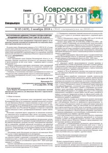 № 85 2 ноября 2018 г. 4 6. Внесение изменений в областные нормативы градостроительного проектирования в части включения требований по приспособлению объектов для обеспечения доступности для инвалидов СП 59.13330.2012 «СНиП 35-01-2001 «Доступность зданий и сооружений для маломобильных групп населения» Управление строительства и архитектуры администрации г. Коврова До 2030 года Реализация мероприятий позволит обеспечить беспрепятственный доступ инвалидов всех категорий к месту предоставления государственных услуг, осуществляемых органами исполнительной власти Владимирской области 7. Оборудование объектов транспортной инфраструктуры специализированными средствами, необходимыми для обслуживания на объектах транспортной инфраструктуры всех категорий инвалидов: - аудиовизуальные информационные системы (усилители звука, специализированные табло); - оборудование туалетных комнат для инвалидов; - оборудование пандусами, подъемными устройствами, поручнями; - оборудование тактильными полосами Постановление администрации области от 13.11.2014 N 1163 «Об утверждении государственной программы Владимирской области «Социальная поддержка отдельных категорий граждан во Владимирской области на 2014 - 2020 годы», подпрограмма 6 «Доступная среда» Управление городского хозяйства администрации г. Коврова До 2030 года (в рамках выделенного бюджетного ассигнования) Реализация мероприятий позволит обеспечить беспрепятственный доступ инвалидов всех категорий к месту предоставления транспортных услуг Раздел II. Мероприятия по поэтапному повышению значений показателей доступности предоставляемых инвалидам услуг с учетом имеющихся у них нарушений функций организма, а также по оказанию им помощи в преодолении барьеров, препятствующих пользованию объектами и услугами 1. Организация предоставления социально-досуговых услуг, проведение мероприятий с участием инвалидов, в целях формирования толерантного отношения к проблемам инвалидности в обществе Постановление администрации области от 13.11.2014 N 1163 «Об утверждении государственной программы Владимирской области «Социальная поддержка отдельных категорий граждан во Владимирской области на 2014 - 2020 годы», подпрограмма 6 «Доступная среда» Комитет по культуре, туризму, молодежной политике, семье и детству администрации г. Коврова До 2030 года Реализация мероприятий позволит обеспечить доступ инвалидов всех категорий к месту предоставления социально-досуговых услуг 2. Организация инструктирования или обучения специалистов, работающих с инвалидами, по вопросам, связанным с обеспечением доступности для них объектов, услуг и оказанием помощи в их использовании или получении (доступу к ним) Постановление администрации области от 13.11.2014 N 1163 «Об утверждении государственной программы Владимирской области «Социальная поддержка отдельных категорий граждан во Владимирской области на 2014 - 2020 годы», подпрограмма 6 «Доступная среда» Управление образования администрации г. Коврова, управление экономики, имущественных и земельных отношений г. Коврова, комитет по культуре, туризму, молодежной политике, семье и детству администрации г. Коврова, управление строительства и архитектуры администрации г. Коврова, МКУ г. Коврова «Управление физической культуры и спорта» Управление городского хозяйства администрации г