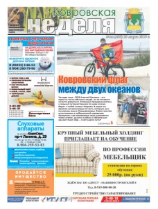 неделя Ковровская Городская информационноаналитическая газета 12+ №24 (459) 29 марта 2019 г. ● ШПОН FINE-LINE ● ПИЛОМАТЕРИАЛЫ (ЭКЗОТИКА) ● НАТУРАЛЬНЫЙ ШПОН ● МЕБЕЛЬНЫЙ ЩИТ ● КЛЕЙ, ГРУНТ, ЛАК ● ТЕРРАСНАЯ ДОСКА Северный проезд, д. 1 Лесоторговая база 2-42-02 2-46-31 8-919-022-02-99 8-919-022-02-88 8-919-022-02-77 8-919-022-02-33 КОМПАНИЯ ВУДСТОК реклама 8 (49232) 3-86-52 8 (904) 260-79-96 ПОВЕРКА СЧЕТЧИКОВ ВОДЫ И ГАЗА ИП Петрова Ю.Г. Аттестат аккредитации № RA.RU.320031 от 28.04.2017 В случае непригодности счетчика оплата за поверку не взимается ВЫБЕРИТЕ УДОБНОЕ ДЛЯ ВАС ВРЕМЯ реклама НА ДОМУ, БЕЗ СНЯТИЯ, БЕЗ НАРУШЕНИЯ ПЛОМБ Работаем с 8.00 до 21.00 без обеда и выходных в ЦЕНТРЕ «КомпСлух» пр-т Ленина, д. 29 пн, вт, ср, чт, пт с 11.00 до 15.00, сб – с 15.00 до 17.00 8-904-259-53-83 ÈÌÅÞÒÑß ÏÐÎÒÈÂÎÏÎÊÀÇÀÍÈß. ÏÐÎÊÎÍÑÓËÜÒÈÐÓÉÒÅÑÜ ÑÎ ÑÏÅÖÈÀËÈÑÒÎÌ  диагностика слуха,подбор, настройка  пробное ношение  микроаппараты (невидимки) Продажа:  батарейки  ушные вкладыши  тонкие трубочки  фильтры Слуховые аппараты ðåêëàìà страница 5 НЕЖИЛОЕ ЗДАНИЕ, ул. Правды, д. 51 234,8 кв. м, кадастровый номер: 33:20:011610:47 Начальная цена – 2 958 000 рублей (с учетом НДС). По вопросам осмотра объекта обращаться в МУП «САХ»: г. Ковров, ул. Грибоедова, д. 129, административное здание, 2-й этаж. Тел. 8 (49232) 5-49-20 ПРОД ЁТС ИМУЩЕСТВО реклама Человек года – 2018 Алексей Балакин – это герой из числа обычных людей, но на которого хочется равняться. Успешный предприниматель и заядлый путешественник по миру всегда берет с собой символ Коврова. В марте он проехал на велосипеде по пути, которым шли пилигримы еще в Средневековье. Какие чувства испытываешь в заброшенной деревушке Аргентины, где незнакомые люди удивляются твоей отваге, делятся хлебом и обязательно желают buen viaje – счастливого пути? Ковровский флаг между двух океанов реклама