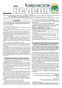 № 50 28 июня 2019 г. 2 седьмого созыва избирательными объединениями, кандидатами в Территориальную избирательную комиссию города Коврова, на которую возложены полномочия окружных избирательных комиссий одномандатных избирательных округов №№1-30, в единый день голосования 8 сентября 2019 года 1. Документы, представляемые кандидатом в окружную избирательную комиссию для уведомления о его выдвижении избирательным объединением (Статьи 27, 28, 30 Закона Владимирской области «Избирательный кодекс Владимирской области») 1.1. Заявление кандидата о согласии баллотироваться по одномандатному избирательному округу (Приложение 1). 1.2. Заверенная кандидатом копия паспорта (отдельных страниц паспорта, определенных Центральной избирательной комиссией Российской Федерации ) или документа, заменяющего паспорт гражданина РФ, кандидата, выдвинутого по одномандатному избирательному округу. 1.3. Заверенная кандидатом копия документа о профессиональном образовании кандидата, подтверждающего сведения, указанные в заявлении кандидата о согласии баллотироваться. 1.4. Заверенная кандидатом копия трудовой книжки, либо выписки из трудовой книжки, либо справки с основного места работы, либо иного документа, подтверждающего указанные в заявлении о согласии баллотироваться кандидата сведения об основном месте работы или службы, о занимаемой должности , а при отсутствии основного места работы или службы – заверенные кандидатом копии документов, подтверждающих сведения о роде занятий, то есть о деятельности кандидата, приносящей ему доход, или о статусе неработающего кандидата (пенсионер, безработный, учащийся (с указанием наименования организации, осуществляющей образовательную деятельность), домохозяйка (домохозяин), временно неработающий) . 1.5. Подписанный уполномоченным лицом политической партии, иного общественного объединения либо уполномоченным лицом соответствующего структурного подразделения политической партии, иного общественного объединения, документ, подтверждающий принадлежность к политической партии, иному общественному объединению и статусе в нем кандидата, если кандидат указал в заявлении о согласии баллотироваться сведения о его принадлежности к выдвинувшей его политической партии либо не более чем к одному иному общественному объединению, зарегистрированному не позднее чем за один год до дня голосования в установленном законом порядке, и своем статусе в этой политической партии либо ином общественном объединении (Приложение 2). В случае если кандидат указал в своем заявлении сведения о принадлежности к иному общественному объединению, представляются также сведения о наименовании данного общественного объединения1. 1.6. Заверенная кандидатом копия справки из законодательного (представительного) органа государственной власти, представительного органа муниципального образования, копия иного документа об осуществлении кандидатом полномочий депутата законодательного (представительного) органа государственной власти, представительного органа муниципального образования на непостоянной основе2. 1.7. Копия соответствующего документа (соответствующих документов) о смене фамилии, или имени, или отчества кандидата, если кандидат менял фамилию, или имя, или отчество3. 1.8. Сведения о размере и об источниках доходов кандид