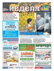 свежие новости, рассказы о земляках, актуальные темы, культурная и спортивная жизнь, официальная информация, афиша, объявления, сканворд и немного юмора. Читайте в номере: №77 (512) 4 октября 2019 г. неделя Ковровская Городская информационноаналитическая газета 12+ страница 6 ● ШПОН FINE-LINE ● ПИЛОМАТЕРИАЛЫ (ЭКЗОТИКА) ● НАТУРАЛЬНЫЙ ШПОН ● МЕБЕЛЬНЫЙ ЩИТ ● КЛЕЙ, ГРУНТ, ЛАК ● ТЕРРАСНАЯ ДОСКА Северный проезд, д. 1 Лесоторговая база 2-42-02 2-46-31 8-919-022-02-99 8-919-022-02-88 8-919-022-02-77 8-919-022-02-33 КОМПАНИЯ ВУДСТОК реклама 8 (49232) 3‑86‑52 8 (904) 260‑79‑96 ПОВЕРКА СЧЕТЧИКОВ ВОДЫ И ГАЗА ИП Петрова Ю.Г. Аттестат аккредитации № RA.RU.320031 от 28.04.2017 В случае непригодности счетчика оплата за поверку не взимается ВЫБЕРИТЕ УДОБНОЕ ДЛЯ ВАС ВРЕМЯ реклама НА ДОМУ, БЕЗ СНЯТИЯ, БЕЗ НАРУШЕНИЯ ПЛОМБ Работаем с 8.00 до 21.00 без обеда и выходных в ЦЕНТРЕ «КомпСлух» пр-т Ленина, д. 29 пн, вт, ср, чт, пт с 11.00 до 15.00, 8-904-259-53-83 ÈÌÅÞÒÑß ÏÐÎÒÈÂÎÏÎÊÀÇÀÍÈß. ÏÐÎÊÎÍÑÓËÜÒÈÐÓÉÒÅÑÜ ÑÎ ÑÏÅÖÈÀËÈÑÒÎÌ диагностика слуха,подбор, настройка пробное ношение микроаппараты (невидимки) Продажа: батарейки ушные вкладыши тонкие трубочки фильтры Слуховые аппараты ðåêëàìà реклама реклама Свой профессиональный праздник 5 октября отмечают не только учителя-предметники, но и педагоги дополнительного образования, преподаватели музыкальных и художественных школ. Андрей Дубов в Доме детского творчества преподает шахматы, и его воспитанники показывают высокие результаты. Учительская профессия – семейная для Дубовых: Людмила Александровна, супруга Андрея Витальевича, – учитель русского языка и литературы в школе №23. ПРЕПОДАВАТЕЛЬ, нынче праздник твой!