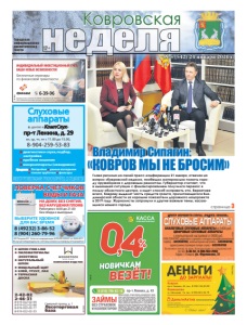 №5 (542) 24 января 2020 г. неделя Ковровская 12+ ● ШПОН FINELINE ● ПИЛОМАТЕРИАЛЫ ЭКЗОТИКА ● НАТУРАЛЬНЫЙ ШПОН ● МЕБЕЛЬНЫЙ ЩИТ ● КЛЕЙ, ГРУНТ, ЛАК ● ТЕРРАСНАЯ ДОСКА Северный проезд, д. 1 Лесоторговая база 24202 24631 89190220299 89190220288 89190220277 89190220233 КОМПАНИЯ ВУДСТОК реклама 8 (49232) 3-86-52 8 (904) 260-79-96 ПОВЕРКА СЧЕТЧИКОВ ВОДЫ И ГАЗА ИП Петрова Ю.Г. Аттестат аккредитации № RA.RU.320031 от 28.04.2017 В случае непригодности счетчика оплата за поверку не взимается ВЫБЕРИТЕ УДОБНОЕ ДЛЯ ВАС ВРЕМЯ Е реклама НА ДОМУ, БЕЗ СНЯТИЯ, БЕЗ НАРУШЕНИЯ ПЛОМБ Работаем с 8.00 до 21.00 без обеда и выходных в ЦЕНТРЕ «КомпСлух» пр-т Ленина, д. 29 вт, ср, чт, пт с 11.00 до 15.00, 8-904-259-53-83 ÈÌÅÞÒÑß ÏÐÎÒÈÂÎÏÎÊÀÇÀÍÈß. ÏÐÎÊÎÍÑÓËÜÒÈÐÓÉÒÅÑÜ ÑÎ ÑÏÅÖÈÀËÈÑÒÎÌ диагностика слуха,подбор, настройка  пробное ношение  микроаппараты (невидимки) Продажа: батарейки ушные вкладыши тонкие трубочки  фильтры Слуховые аппараты ðåêëàìà Городская информационноаналитическая газета страница 3 реклама Çà¸ì íà óñëîâèÿõ «Íîâûé çà¸ìùèê» ïðåäîñòàâëÿåòñÿ ãðàæäàíàì ÐÔ â âîçðàñòå îò 18 ëåò ïðè ïåðâîì îáðàùåíèè â îðãàíèçàöèþ. Çà¸ì ïðåäîñòàâëÿåòñÿ íàëè÷íûìè äåíåæíûìè ñðåäñòâàìè íà ñðîê 32 äíÿ, ðàçìåð çàéìà ñîñòàâëÿåò îò 1 òûñ. ðóá. äî 10 òûñ. ðóá. Ïðîöåíòíàÿ ñòàâêà ñ 1 ïî 10 äåíü ïîëüçîâàíèÿ çàéìîì ñîñòàâëÿåò 0,4% â äåíü (146% äëÿ íåâèñîêîñíîãî èëè 146,4% ãîäîâûõ äëÿ âèñîêîñíîãî ãîäà), ñ 11 äíÿ ïîëüçîâàíèÿ çàéìîì ïðîöåíòíàÿ ñòàâêà ñîñòàâëÿåò 1% â äåíü (365% äëÿ íåâèñîêîñíîãî èëè 366% ãîäîâûõ äëÿ âèñîêîñíîãî ãîäà); äëÿ ïåíñèîíåðîâ ïî ñòàðîñòè è âûñëóãå ëåò 0,7% â äåíü (255,5% äëÿ íåâèñîêîñíîãî èëè 256,2% ãîäîâûõ äëÿ âèñîêîñíîãî ãîäà). Çàéìû ïðåäîñòàâëÿþòñÿ ÎÎÎ ÌÊÊ "Ê Ïÿòûé Ýëåìåíò Äåíüãè" ÎÃÐÍ 1154025001316 (çàðåãèñòðèðîâàíî â ðååñòðå ÌÔÎ 651503029006503 îò 25 ìàÿ 2015 ã., ñàéò www.5element-mfo.ru). реклама ÀÍÀËÎÃÎÂÛÅ ÑËÓÕÎÂÛÅ ÀÏÏÀÐÀÒÛ îò 5400 ðóá. ÖÈÔÐÎÂÛÅ ÑËÓÕÎÂÛÅ ÀÏÏÀÐÀÒÛ ñ êîìïüþòåðíîé íàñòðîéêîé îò 9000 ðóá. Î ÏÐÎÒÈÂÎÏÎÊÀÇÀÍÈßÕ ÏÐÎÊÎÍÑÓËÜÒÈÐÓÉÒÅÑÜ ÑÎ ÑÏÅÖÈÀËÈÑÒÎÌ ÖÅÍÒÐ ÕÎÐÎØÅÃÎ ÑËÓÕÀ «ÐÀÄÓÃÀ ÇÂÓÊλ Âîçìîæåí âûåçä íà äîì. Êîíñóëüòàöèÿ ñî ñïåöèàëèñòîì ïî òåë. 6-46-52, 8-906-562-2992 Àäðåñ: ã. Êîâðîâ, óë. Ôóðìàíîâà, 31 ÏÐÈ ÏÎÊÓÏÊÅ öèôðîâîãî ñëóõîâîãî àïïàðàòà ïðîôåññèîíàëüíûé ïîäáîð – ÁÅÑÏËÀÒÍÎ, êîìïüþòåðíàÿ íàñòðîéêà – ÁÅÑÏËÀÒÍÎ, àóäèîãðàììà (ïðîâåðêà ïîòåðè ñëóõà) – ÁÅÑÏËÀÒÍÎ ðåêëàìà Ö Ä ÑËÓÕÎÂÛÅ ÀÏÏÀÐÀÒÛ Глава региона на своей пресс-конференции 21 января, отвечая на вопрос «Ковровской недели», пообещал материально помочь городу оружейников с дорожным ремонтом. Губернатор считает, что в нынешней ситуации с финансированием получился перекос в пользу областного центра, и ищет способ исправить это. Вероятнее всего, Коврову выделят часть средств гранта, причитающегося Владимирской области за хорошие показатели дорожного нацпроекта в 2019 году. Журналисты затронули и другие важные темы, касающиеся нашего города. Владимир Сипягин: «КОВРОВ МЫ НЕ БРОСИМ»