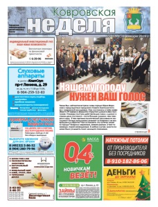 №7 (544) 31 января 2020 г. Фото А. Соколова неделя Ковровская 12+ ● ШПОН FINE-LINE ● ПИЛОМАТЕРИАЛЫ (ЭКЗОТИКА) ● НАТУРАЛЬНЫЙ ШПОН ● МЕБЕЛЬНЫЙ ЩИТ ● КЛЕЙ, ГРУНТ, ЛАК ● ТЕРРАСНАЯ ДОСКА Северный проезд, д. 1 Лесоторговая база 2-42-02 2-46-31 8-919-022-02-99 8-919-022-02-88 8-919-022-02-77 8-919-022-02-33 КОМПАНИЯ ВУДСТОК реклама 8 (49232) 3-86-52 8 (904) 260-79-96 ПОВЕРКА СЧЕТЧИКОВ ВОДЫ И ГАЗА ИП Петрова Ю.Г. Аттестат аккредитации № RA.RU.320031 от 28.04.2017 В случае непригодности счетчика оплата за поверку не взимается ВЫБЕРИТЕ УДОБНОЕ ДЛЯ ВАС ВРЕМЯ реклама НА ДОМУ, БЕЗ СНЯТИЯ, БЕЗ НАРУШЕНИЯ ПЛОМБ Работаем с 8.00 до 21.00 без обеда и выходных Городская информационноаналитическая газета страница 3 реклама Заём на условиях «Новый заёмщик» предоставляется гражданам РФ в возрасте от 18 лет при первом обращении в организацию. Заём предоставляется наличными денежными средствами на срок 32 дня, размер займа составляет от 1 тыс. руб. до 10 тыс. руб. Процентная ставка с 1 по 10 день пользования займом составляет 0,4% в день (146% для невисокосного или 146,4% годовых для високосного года), с 11 дня пользования займом процентная ставка составляет 1% в день (365% для невисокосного или 366% годовых для високосного года); для пенсионеров по старости и выслуге лет 0,7% в день (255,5% для невисокосного или 256,2% годовых для високосного года). Займы предоставляются ООО МКК "КВ Пятый Элемент Деньги" ОГРН 1154025001316 (зарегистрировано в реестре МФО 651503029006503 от 25 мая 2015 г., сайт www.5element-mfo.ru). ОТ ПРОИЗВОДИТЕЛЯ БЕЗ ПОСРЕДНИКОВ РЕКЛАМА 8-910-182-86-06 НАТЯЖНЫЕ ПОТОЛКИ №1 (538) 10 января 2020 г. Фото И. Волкова реклама в ЦЕНТРЕ «КомпСлух» пр-т Ленина, д. 29 вт, ср, чт, пт с 11.00 до 15.00, 8-904-259-53-83 ÈМÅÞÒÑß ПРОÒÈВОПОКÀЗÀНÈß. ПРОКОНÑÓËÜÒÈРÓÉÒÅÑÜ ÑО ÑПÅÖÈÀËÈÑÒОМ  диагностика слуха,подбор, настройка  пробное ношение  микроаппараты (невидимки) Продажа:  батарейки  ушные вкладыши  тонкие трубочки  фильтры Слуховые аппараты реклама реклама Заём на условиях «Новый заёмщик» предоставляется гражданам РФ в возрасте от 18 лет при первом обращении в организацию. Заём предоставляется наличными денежными средствами на срок 32 дня, размер займа составляет от 1 тыс. руб. до 10 тыс. руб. Процентная ставка с 1 по 10 день пользования займом составляет 0,4% в день (146% для невисокосного или 146,4% годовых для високосного года), с 11 дня пользования займом процентная ставка составляет 1% в день (365% для невисокосного или 366% годовых для високосного года); для пенсионеров по старости и выслуге лет 0,7% в день (255,5% для невисокосного или 256,2% годовых для високосного года). Займы предоставляются ООО МКК "КВ Пятый Элемент Деньги" ОГРН 1154025001316 (зарегистрировано в реестре МФО 651503029006503 от 25 мая 2015 г., сайт www.5element-mfo.ru). реклама ÀÍÀËÎÃÎÂÛÅ ÑËÓÕÎÂÛÅ ÀÏÏÀÐÀÒÛ îò 5400 ðóá. ÖÈÔÐÎÂÛÅ ÑËÓÕÎÂÛÅ ÀÏÏÀÐÀÒÛ ñ êîìïüþòåðíîé íàñòðîéêîé îò 9000 ðóá. Î ÏÐÎÒÈÂÎÏÎÊÀÇÀÍÈßÕ ÏÐÎÊÎÍÑÓËÜÒÈÐÓÉÒÅÑÜ ÑÎ ÑÏÅÖÈÀËÈÑÒÎÌ ÖÅÍÒÐ ÕÎÐÎØÅÃÎ ÑËÓÕÀ «ÐÀÄÓÃÀ ÇÂÓÊλ Âîçìîæåí âûåçä íà äîì. Êîíñóëüòàöèÿ ñî ñïåöèàëèñòîì ïî òåë. 6-46-52, 8-906-562-2992 Àäðåñ: ã. Êîâðîâ, óë. Ôóðìàíîâà, 31 ÏÐÈ ÏÎÊÓÏÊÅ öèôðîâîãî ñëóõîâîãî àïïàðàòà ïðîôåññèîíàëüíûé ïîäáîð – ÁÅÑÏËÀÒÍÎ, êîìïüþòåðíàÿ íàñòðîéêà – ÁÅÑÏËÀÒÍÎ, àóäèîãðàììà (ïðîâåðêà ïîòåðè ñëóõà) – ÁÅÑÏËÀÒÍÎ ðåêëàìà ÑËÓÕÎÂÛÅ ÀÏÏÀÐÀÒÛ После новогодних праздников Ковров входит в повседневный рабочий режим. Нынешние каникулы прошли на удивление спокойно, с минимумом происшествий, аварий и прочих омрачающих праздник неприятностей. Особенно важно, что н