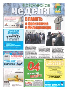 №13 (550) 21 февраля 2020 г. неделя Ковровская 12+ ● ШПОН FINELINE ● ПИЛОМАТЕРИАЛЫ ЭКЗОТИКА ● НАТУРАЛЬНЫЙ ШПОН ● МЕБЕЛЬНЫЙ ЩИТ ● КЛЕЙ, ГРУНТ, ЛАК ● ТЕРРАСНАЯ ДОСКА Северный проезд, д. 1 Лесоторговая база 24202 24631 89190220299 89190220288 89190220277 89190220233 КОМПАНИЯ ВУДСТОК реклама 8 (49232) 3-86-52 8 (904) 260-79-96 ПОВЕРКА СЧЕТЧИКОВ ВОДЫ И ГАЗА ИП Петрова Ю.Г. Аттестат аккредитации № RA.RU.320031 от 28.04.2017 В случае непригодности счетчика оплата за поверку не взимается ВЫБЕРИТЕ УДОБНОЕ ДЛЯ ВАС ВРЕМЯ Е реклама НА ДОМУ, БЕЗ СНЯТИЯ, БЕЗ НАРУШЕНИЯ ПЛОМБ Работаем с 8.00 до 21.00 без обеда и выходных Читайте нашу газету на сайте kovrov-gorod.ru реклама http://kovrov-gorod.ru/newspaper.html Городская информационноаналитическая газета ðåêëàìà Çà¸ì íà óñëîâèÿõ «Íîâûé çà¸ìùèê» ïðåäîñòàâëÿåòñÿ ãðàæäàíàì ÐÔ â âîçðàñòå îò 18 ëåò ïðè ïåðâîì îáðàùåíèè â îðãàíèçàöèþ. Çà¸ì ïðåäîñòàâëÿåòñÿ íàëè÷íûìè äåíåæíûìè ñðåäñòâàìè íà ñðîê 32 äíÿ, ðàçìåð çàéìà ñîñòàâëÿåò îò 1 òûñ. ðóá. äî 10 òûñ. ðóá. Ïðîöåíòíàÿ ñòàâêà ñ 1 ïî 10 äåíü ïîëüçîâàíèÿ çàéìîì ñîñòàâëÿåò 0,4% â äåíü (146% äëÿ íåâèñîêîñíîãî èëè 146,4% ãîäîâûõ äëÿ âèñîêîñíîãî ãîäà), ñ 11 äíÿ ïîëüçîâàíèÿ çàéìîì ïðîöåíòíàÿ ñòàâêà ñîñòàâëÿåò 1% â äåíü (365% äëÿ íåâèñîêîñíîãî èëè 366% ãîäîâûõ äëÿ âèñîêîñíîãî ãîäà); äëÿ ïåíñèîíåðîâ ïî ñòàðîñòè è âûñëóãå ëåò 0,7% â äåíü (255,5% äëÿ íåâèñîêîñíîãî èëè 256,2% ãîäîâûõ äëÿ âèñîêîñíîãî ãîäà). Çàéìû ïðåäîñòàâëÿþòñÿ ÎÎÎ ÌÊÊ "Ê Ïÿòûé Ýëåìåíò Äåíüãè" ÎÃÐÍ 1154025001316 (çàðåãèñòðèðîâàíî â ðååñòðå ÌÔÎ 651503029006503 îò 25 ìàÿ 2015 ã., ñàéò www.5element-mfo.ru). реклама в ЦЕНТРЕ «КомпСлух» пр-т Ленина, д. 29 вт, ср, чт, пт с 11.00 до 15.00, 8-904-259-53-83 ÈÌÅÞÒÑß ÏÐÎÒÈÂÎÏÎÊÀÇÀÍÈß. ÏÐÎÊÎÍÑÓËÜÒÈÐÓÉÒÅÑÜ ÑÎ ÑÏÅÖÈÀËÈÑÒÎÌ P диагностика слуха,подбор, настройка P пробное ношение P микроаппараты (невидимки) Продажа: P батарейки P ушные вкладыши P тонкие трубочки P фильтры Слуховые аппараты ðåêëàìà Àíàëîãîâûå ñëóõîâûå àïïàðàòû îò 5400 ðóá. Öèôðîâûå ñëóõîâûå àïïàðàòû ñ êîìïüþòåðíîé íàñòðîéêîé îò 9000 ðóá. Î ÏÐÎÒÈÂÎÏÎÊÀÇÀÍÈßÕ ÏÐÎÊÎÍÑÓËÜÒÈÐÓÉÒÅÑÜ ÑÎ ÑÏÅÖÈÀËÈÑÒÎÌ ÖÅÍÒÐ ÕÎÐÎØÅÃÎ ÑËÓÕÀ «ÐÀÄÓÃÀ ÇÂÓÊλ ÑËÓÕÎÂÛÅ ÀÏÏÀÐÀÒÛ Âîçìîæåí âûåçä íà äîì. Êîíñóëüòàöèÿ ñî ñïåöèàëèñòîì ïî òåë. 6-46-52, 8-906-562-2992 Àäðåñ: ã. Êîâðîâ, óë. Ôóðìàíîâà, 31 ÏÐÈ ÏÎÊÓÏÊÅ öèôðîâîãî ñëóõîâîãî àïïàðàòà: ïðîôåññèîíàëüíûé ïîäáîð – ÁÅÑÏËÀÒÍÎ êîìïüþòåðíàÿ íàñòðîéêà – ÁÅÑÏËÀÒÍÎ àóäèîãðàììà (ïðîâåðêà ïîòåðè ñëóõà) – ÁÅÑÏËÀÒÍÎ ðåêëàìà Фото А. Соколова На фасаде дома №38 на ул. Абельмана 20 февраля была открыта мемориальная доска в честь почетного гражданина Коврова Дмитрия Исаева. Он в июле 1941 года попал на фронт, награжден орденом Отечественной войны I степени и медалью «За отвагу». В августе 1944 года сменил солдатскую шинель на милицейскую форму и прошел путь от оперуполномоченного до начальника милиции. Общий стаж его службы в милиции 26 лет, с января 1963 года в течение 7 лет Дмитрий Александрович возглавлял Ковровский ГОВД. После выхода на пенсию ветеран еще 20 лет трудился зав отделом по труду и социальным вопросам Ковровского горисполкома. Почтить память земляка пришли представители власти, руководители УМВД области и сотрудники городской полиции, члены ветеранских организаций. Право открыть мемориальную доску было по традиции предоставлено родственникам – жене Ольге Ивановне и дочери Татьяне. Они выразили благодарность автору проекта, члену Союза художников РФ Павлу Раскину и работникам ОАО «ЗиД», изготовившим доску. Отныне мемориальная плита и живые цветы будут напомина