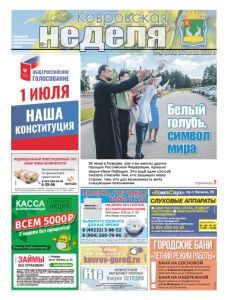 Ñðîê ïðîâåäåíèÿ ñòèìóëèðóþùåãî ìåðîïðèÿòèÿ (Àêöèè) «Âìåñòå â òðóäíóþ ìèíóòó» - ñ 01.07.2020ã. ïî 30.09.2020ã. âêëþ÷èòåëüíî. Îðãàíèçàòîð Àêöèè ÎÎÎ ÌÊÊ «Ê Ïÿòûé Ýëåìåíò Äåíüãè», ÎÃÐÍ 1154025001316, ðåã.¹ â ðååñòðå ÌÔÎ 651503029006503. Ïîäðîáíàÿ èíôîðìàöèÿ îá îðãàíèçàòîðå ñòèìóëèðóþùåãî ìåðîïðèÿòèÿ «Âìåñòå â òðóäíóþ ìèíóòó», î ïðàâèëàõ åãî ïðîâåäåíèÿ, êîëè÷åñòâå ïðèçîâ ïî ðåçóëüòàòàì òàêîãî ìåðîïðèÿòèÿ, ñðîêàõ, ìåñòå è ïîðÿäêå èõ ïîëó- ÷åíèÿ íà ñàéòå www.5element-mfo.ru è â îôèñàõ Îðãàíèçàòîðà Àêöèè. Çàéìû ïðåäîñòàâëÿþòñÿ ÎÎÎ ÌÊÊ «Ê Ïÿòûé Ýëåìåíò Äåíüãè», ðåã.¹ â ðååñòðå ÌÔÎ 651503029006503. реклама №47 (584) 26 июня 2020 г. неделя Ковровская 12+ 8 (49232) 3-86-52 8 (904) 260-79-96 ПОВЕРКА СЧЕТЧИКОВ ВОДЫ И ГАЗА ИП Петрова Ю.Г. Аттестат аккредитации № RA.RU.320031 от 28.04.2017 В случае непригодности счетчика оплата за поверку не взимается ВЫБЕРИТЕ УДОБНОЕ ДЛЯ ВАС ВРЕМЯ Е реклама НА ДОМУ, БЕЗ СНЯТИЯ, БЕЗ НАРУШЕНИЯ ПЛОМБ Работаем с 8.00 до 21.00 без обеда и выходных Городская информационноаналитическая газета Фото И. Волкова Читайте нашу газету на сайте kovrov-gorod.ru реклама страница 2 ÈÌÅÞÒÑß ÏÐÎÒÈÂÎÏÎÊÀÇÀÍÈß. ÏÐÎÊÎÍÑÓËÜÒÈÐÓÉÒÅÑÜ ÑÎ ÑÏÅÖÈÀËÈÑÒÎÌ реклама «КомпСлух» пр-т Ленина, 29 8-904-259-53-83 e-mail: KompSluh33@yandex.ru СЛУХОВЫЕ АППАРАТЫ ДИАГНОСТИКА СЛУХА, ПОДБОР, НАСТРОЙКА МИКРОАППАРАТЫ (НЕВИДИМКИ) ПРОДАЖА: батарейки ушные вкладыши тонкие трубочки фильтры вт, ср, чт, пт 11.00 –15.00 время работы реклама БАНЯ НА СОСНОВОЙ будет закрыта на профилактические работы с 6 июля по 2 августа. В это время работает баня на ул. Набережной. БАНЯ НА НАБЕРЕЖНОЙ будет закрыта на профилактику с 3 по 30 августа. В это время откроется баня на ул. Сосновой. Й ГОРОДСКИЕ БАНИ ЛЕТНИЙ РЕЖИМ РАБОТЫ 24 июня в Коврове, как и во многих других городах Российской Федерации, прошла акция «Звон Победы». Это ещё один способ сказать спасибо тем, кто защищал нашу страну, тем, кто дал возможность жить следующим поколениям. Белый голубь, символ мира