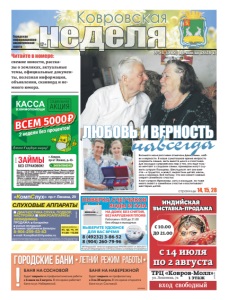 Ñðîê ïðîâåäåíèÿ ñòèìóëèðóþùåãî ìåðîïðèÿòèÿ (Àêöèè) «Âìåñòå â òðóäíóþ ìèíóòó» - ñ 01.07.2020ã. ïî 30.09.2020ã. âêëþ÷èòåëüíî. Îðãàíèçàòîð Àêöèè ÎÎÎ ÌÊÊ «Ê Ïÿòûé Ýëåìåíò Äåíüãè», ÎÃÐÍ 1154025001316, ðåã.¹ â ðååñòðå ÌÔÎ 651503029006503. Ïîäðîáíàÿ èíôîðìàöèÿ îá îðãàíèçàòîðå ñòèìóëèðóþùåãî ìåðîïðèÿòèÿ «Âìåñòå â òðóäíóþ ìèíóòó», î ïðàâèëàõ åãî ïðîâåäåíèÿ, êîëè÷åñòâå ïðèçîâ ïî ðåçóëüòàòàì òàêîãî ìåðîïðèÿòèÿ, ñðîêàõ, ìåñòå è ïîðÿäêå èõ ïîëó- ÷åíèÿ íà ñàéòå www.5element-mfo.ru è â îôèñàõ Îðãàíèçàòîðà Àêöèè. Çàéìû ïðåäîñòàâëÿþòñÿ ÎÎÎ ÌÊÊ «Ê Ïÿòûé Ýëåìåíò Äåíüãè», ðåã.¹ â ðååñòðå ÌÔÎ 651503029006503. реклама свежие новости, рассказы о земля ках, актуальные темы, официальные документы, полезная информация, объявления, сканворд и немного юмора. Читайте в номере: №51 (588) 10 июля 2020 г. неделя Ковровская 12+ 8 (49232) 3-86-52 8 (904) 260-79-96 ПОВЕРКА СЧЕТЧИКОВ ВОДЫ И ГАЗА ИП Петрова Ю.Г. Аттестат аккредитации № RA.RU.320031 от 28.04.2017 В случае непригодности счетчика оплата за поверку не взимается ВЫБЕРИТЕ УДОБНОЕ ДЛЯ ВАС ВРЕМЯ Е реклама НА ДОМУ, БЕЗ СНЯТИЯ, БЕЗ НАРУШЕНИЯ ПЛОМБ Работаем с 8.00 до 21.00 без обеда и выходных Городская информационноаналитическая газета страницы 14, 15, 28 Þ Ñ Î Î Î Ç ÎÎÑÓË Ó Ñ ÑÎÑ Ö ËÑÎ ÈÌÅÞÒÑß ÏÐÎÒÈÂÎÏÎÊÀÇÀÍÈß. ÏÐÎÊÎÍÑÓËÜÒÈÐÓÉÒÅÑÜ ÑÎ ÑÏÅÖÈÀËÈÑÒÎÌ реклама «КомпСлух» пр-т Ленина, 29 8-904-259-53-83 e-mail: KompSluh33@yandex.ru СЛУХОВЫЕ АППАРАТЫ ДИАГНОСТИКА СЛУХА, ПОДБОР, НАСТРОЙКА МИКРОАППАРАТЫ (НЕВИДИМКИ) ПРОДАЖА: батарейки ушные вкладыши тонкие трубочки фильтры вт, ср, чт, пт 11.00 –15.00 время работы ž —• ž ¤–œ “• ’‘ˆ„ž¡’ |p b•‘”•‘ z•–– ›¡’˜ „–82 •“’¡ ‡’72A’ ”† –’Ÿ’ реклама БАНЯ НА СОСНОВОЙ будет закрыта на профилактические работы с 6 июля по 2 августа. В это время работает баня на ул. Набережной. ГОРОДСКИЕ БАНИ  ЛЕТНИЙ РЕЖИМ РАБОТЫ  БАНЯ НА НАБЕРЕЖНОЙ будет закрыта на профилактику с 3 по 30 августа. В это время откроется баня на ул. Сосновой. ЛЮБОВЬ И ВЕРНОСТЬ íàâñåãäà Восьмого июля россияне отмечали День семьи, любви и верности. В наше суматошное время непросто сохранить семью, жить вместе долго и счастливо. Для молодых супружеских пар и тех, кто еще только мечтает о создании семьи, примером могут служить супруги Пальцевы. Шестьдесят лет они вместе – и трудятся, и живут, вырастили детей, нянчились с внуками. Всё потому, что они знают главный секрет семейного счастья. А вот супруги Ирниязовы, хоть и молодые, но тоже много знают о семейном счастье и воспитывают шестерых детей.
