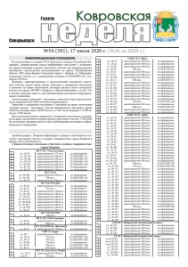 №54 (591), 17 июля 2020 г. (№26 за 2020 г.) ǺDzDZDzǸȌ ǸȜȐȞȜȐȟȘȎȭ Спецвыпуск Газета ИНФОРМАЦИОННОЕ СООБЩЕНИЕ. В соответствии со статьей 39.18 Земельного кодекса Российской Федерации, администрация города информирует население о возможности предоставления в аренду земельного участка для индивидуального жилищного строительства, расположенного по адресу: Владимирская область, МО город Ковров (городской округ), г. Ковров, ул. Мичурина, земельный участок 1д, с кадастровым номером 33:20:016903:141, площадью 639 кв.м. Граждане, заинтересованные в предоставлении указанного земельного участка, имеют право подать заявление о намерении участвовать в аукционе на право заключения договора аренды такого земельного участка, по адресу: 601900, г. Ковров, ул. Краснознаменная, д. 6, каб. 116, в течение тридцати дней со дня опубликования настоящего информационного извещения. Способ подачи заявлений - письменно, лично (или через представителя по доверенности) либо почтовым отправлением. Заявления о намерении участвовать в аукционе на право заключения договора аренды земельного участка принимаются ежедневно, кроме субботы и воскресенья с 08.00 часов до 17.00 часов (перерыв с 12.00 часов до 13.00 часов). Дата окончания приема заявлений о намерении участвовать в аукционе на право заключения договора аренды земельного участка: 17.08.2020 (по истечении тридцати дней со дня опубликования настоящего информационного извещения). Администрация г. Коврова информирует граждан о возможности получить земельный участок в садовых товариществах города Коврова в аренду или в собственность. Список отказных земельных участков в садовых товариществах города Коврова: НСТ № 1 «Текстильщик» 1 уч., № 29 ориентировочно 375 кв.м. не сформирован 2 уч., № 154 ориентировочно 500 кв.м. 33:20:010401:141 3 уч., № 206 ориентировочно 500 кв.м. 33:20:010401:185 4 уч., № 212 ориентировочно 468 кв.м. 33:20:010401:190 5 уч., № 309 ориентировочно 500 кв.м. 33:20:010401:309 6 уч., № 324 ориентировочно 500 кв.м. не сформирован 7 уч., № 327 ориентировочно 700 кв.м. не сформирован НСТ № 14 1 уч., № 420 ориентировочно 500 кв.м. не сформирован 2 уч., № 536 340 кв.м. 33:20:014401:536 3 уч., № 537 ориентировочно 500 кв.м. не сформирован НСТ № 15 КЭМЗ 1 уч., № 30 ориентировочно 416 кв.м. не сформирован 2 уч., № 57 374 кв.м. 33:20:014402:57 3 уч., № 80 ориентировочно 340 кв.м. не сформирован 4 уч., № 120 ориентировочно 340 кв.м. не сформирован 5 уч., № 271 ориентировочно 340 кв.м. не сформирован 6 уч., № 471А ориентировочно 500 кв.м. не сформирован 7 уч., № 563Б ориентировочно 500 кв.м. не сформирован 8 уч., № 587д ориентировочно 500 кв.м. не сформирован 9 уч., № 599 ориентировочно 340 кв.м. не сформирован 10 уч., № 613 ориентировочно 500 кв.м. не сформирован НСТ № 16 КЭМЗ 1 уч., № 95 360 кв.м. 33:20:014403:95 НСТ № 5 «Текстильщик» 1 уч., № 30 ориентировочно 601 кв.м. не сформирован 2 уч., № 50 480 кв.м. 33:20:010403:50 СОТ № 5 ПТФ им. Абельмана 1 уч., № 32 ориентировочно 750 кв.м. не сформирован СНТ «У озера» 1 уч. № 1 ориентировочно 500 кв.м. не сформирован 2 уч. № 21 553 кв.м. 33:20:012001:1021 3 уч., № 55 647 кв.м. 33:20:012001:1055 4 уч., № 56а 378 кв.м. не сформирован 5 уч., № 59 590 кв.м. 33:20:012001:1059 6 уч., № 75 1032 кв.м. 33:20:012001:1075 СНТ № 3 ж/д узла ст. Ковров 1 уч., № 22 ориентировочно 780 кв.м. не сформирован 2 дом 64 510 кв.м. 33:20:012701:64 СОНТ № 9 «ЗИД» 1 уч., № 14 ориентировочно 500 кв.м. не сформирован 2 уч., № 22 ориентировочно 400 кв.м. не сформирован 3 уч., № 36 ориентировочно 500 кв.м. не сформирован 4 уч., № 59 400 кв.м. 33:20:013501:59 5 уч., № 63 ориентировочно 400 кв.м. не сформирован 6 уч., № 91 ориентиро