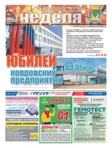 Ковровская 12+ Городская информационноаналитическая газета ÈÌÅÞÒÑß ÏÐÎÒÈÂÎÏÎÊÀÇÀÍÈß. ÏÐÎÊÎÍÑÓËÜÒÈÐÓÉÒÅÑÜ ÑÎ ÑÏÅÖÈÀËÈÑÒÎÌ реклама «КомпСлух» пр-т Ленина, 29 8-904-259-53-83 e-mail: KompSluh33@yandex.ru СЛУХОВЫЕ АППАРАТЫ ДИАГНОСТИКА СЛУХА, ПОДБОР, НАСТРОЙКА МИКРОАППАРАТЫ (НЕВИДИМКИ) ПРОДАЖА: батарейки ушные вкладыши тонкие трубочки фильтры вт, ср, чт, пт 11.00 –15.00 время работы АКУШЕРЫГИНЕКОЛОГИ ПЛЕТНЕВА СВЕТЛАНА ВЛАДИМИРОВНА ВОЛКОВА Рената Анатольевна прием, УЗИ, колькоскопия, пренатальные скрининги. ВРАЧ УЛЬТРАЗВУКОВОЙ ДИАГНОСТИКИ ПОЛЯКОВА Виктория Сергеевна УЗИ брюшной полости, малого таза. Диагностика по беременности, молочные железы, лимфоузлы, щитовидная железа, артерии и вены, УЗИ сердца, сосуды головы и шеи. ПРИНИМАЕМ КОЛЛЕКТИВНЫЕ ЗАЯВКИ ВЫЕЗЖАЕМ НА ПРЕДПРИЯТИЕ ВНИМАНИЕ! ТЕСТ НА КОРОНАВИРУС за 1700 руб. срок – 1 день ГЕМОТЕСТ МЕДИЦИНСКАЯ ЛАБОРАТОРИЯ АНАЛИЗЫ УЗИ ВРАЧИ ВЫЕЗД МЕДСЕСТРЫ НА ДОМ ВНУТРИМЫШЕЧНЫЙ УКОЛ – 60 Р. ВНУТРИВЕННЫЙ УКОЛ – 100 Р. ВНУТРИВЕННОЕ КАПЕЛЬНОЕ ВЛИВАНИЕ – ОТ 207 Р. ул. Строителей, д. 27/2, тел. 9-90-03, 8-961-254-98-00 ул. Чернышевского, д. 3, тел. 6-30-20, 8-961-254-98-00 Камешково, ул. Свердлова, д. 20, тел. 8-962-090-11-10 ИМЕЮТСЯ ПРОТИВОПОКАЗАНИЯ. НЕОБХОДИМА КОНСУЛЬТАЦИЯ СПЕЦИАЛИСТА *Акция действует до 30.09.2020г. Подробности о сроках, условиях и других действующих акциях уточняйте у администратора лабораторного отделения или на сайте. Акции и подарки предоставляет ООО «КОВРОВ-ТЕСТ». ОГРН 1163328051336, лицензия ЛО 33-01-002804 от 26.04.2019 г. Реклама НА АНТИТЕЛА G+M – 700 рублей ДОМ – 60 Р ТВОЯ БИОХИМИЯ 8 главных показателей за 690 р КЛЮЧ К ЗДОРОВЬЮ гормоны щитовидной железы ТТГ, Т4, Т3 за 690 р. Акция* страницы 4-5, 15-16 №75 (612) 2 октября 2020 г. В конце сентября и в начале октября сразу два ковровских предприятия отмечают юбилейные даты. Двадцать пятого сентября крупнейшей российской компании в сфере товаров для сна «Аскона» исполнилось 30 лет. За это время она прошла путь от фабрики по производству матрасов до евангелиста здорового сна. История ПАО «Ковровский механический завод» началась гораздо раньше – 6 октября 1950 года, до этого он был филиалом завода имени Киркижа. Совсем скоро грядет 70-летие. Сегодня наш рассказ о том, как развивались предприятия-юбиляры и чего они достигли. ɇȺ ȾɈɆɍ ȻȿɁ ɋɇəɌɂə ȻȿɁ ɇȺɊɍɒȿɇɂə ɉɅɈɆȻ ɊȺȻɈɌȺȿɆ ɋ ȾɈ ȻȿɁ ɈȻȿȾȺ ɂ ȼɕɏɈȾɇɕɏ ɂɉ ɉȿɌɊɈȼȺ ɘ Ƚ ȺɌɌȿɋɌȺɌ ȺɄɄɊȿȾɂɌȺɐɂɂ 5$ 58 ȼɕȾȺɇ ɝ ȼ ɫɥɭɱɚɟ ɧɟɩɪɢɝɨɞɧɨɫɬɢ ɫɱɟɬɱɢɤɚ ɨɩɥɚɬɚ ɡɚ ɩɨɜɟɪɤɭ ɧɟ ɜɡɢɦɚɟɬɫɹ ЮБИЛЕИ ковровских предприятий реклама