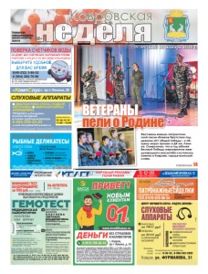 Ковровская 12+ Городская информационноаналитическая газета ÈÌÅÞÒÑß ÏÐÎÒÈÂÎÏÎÊÀÇÀÍÈß. ÏÐÎÊÎÍÑÓËÜÒÈÐÓÉÒÅÑÜ ÑÎ ÑÏÅÖÈÀËÈÑÒÎÌ реклама «КомпСлух» пр-т Ленина, 29 8-904-259-53-83 e-mail: KompSluh33@yandex.ru СЛУХОВЫЕ АППАРАТЫ ДИАГНОСТИКА СЛУХА, ПОДБОР, НАСТРОЙКА МИКРОАППАРАТЫ (НЕВИДИМКИ) ПРОДАЖА: батарейки ушные вкладыши тонкие трубочки фильтры вт, ср, чт, пт 11.00 –15.00 время работы АКУШЕРЫ-ГИНЕКОЛОГИ ПЛЕТНЕВА СВЕТЛАНА ВЛАДИМИРОВНА ВОЛКОВА Рената Анатольевна прием, УЗИ, колькоскопия, пренатальные скрининги. ВРАЧ УЛЬТРАЗВУКОВОЙ ДИАГНОСТИКИ ПОЛЯКОВА Виктория Сергеевна УЗИ брюшной полости, малого таза. Диагностика по беременности, молочные железы, лимфоузлы, щитовидная железа, артерии и вены, УЗИ сердца, сосуды головы и шеи. ПРИНИМАЕМ КОЛЛЕКТИВНЫЕ ЗАЯВКИ ВЫЕЗЖАЕМ НА ПРЕДПРИЯТИЕ ВНИМАНИЕ! ТЕСТ НА КОРОНАВИРУС за 1700 руб. срок – 1 день ГЕМОТЕСТ МЕДИЦИНСКАЯ ЛАБОРАТОРИЯ АНАЛИЗЫ УЗИ ВРАЧИ ВЫЕЗД МЕДСЕСТРЫ НА ДОМ ВНУТРИМЫШЕЧНЫЙ УКОЛ – 60 р. ВНУТРИВЕННЫЙ УКОЛ – 100 р. ВНУТРИВЕННОЕ КАПЕЛЬНОЕ ВЛИВАНИЕ – ОТ 207 р. ул. Строителей, д. 27/2, тел. 9-90-03, 8-961-254-98-00 ул. Чернышевского, д. 3, тел. 6-30-20, 8-961-254-98-00 Камешково, ул. Свердлова, д. 20, тел. 8-962-090-11-10 ИМЕЮТСЯ ПРОТИВОПОКАЗАНИЯ. НЕОБХОДИМА КОНСУЛЬТАЦИЯ СПЕЦИАЛИСТА *Акция действует до 30.09.2020г. Подробности о сроках, условиях и других действующих акциях уточняйте у администратора лабораторного отделения или на сайте. Акции и подарки предоставляет ООО «КОВРОВ-ТЕСТ». ОГРН 1163328051336, лицензия ЛО 33-01-002804 от 26.04.2019 г. Реклама НА АНТИТЕЛА G+M – 700 руб. ДОМ – 60 р ТВОЯ БИОХИМИЯ 8 главных показателей за 690 р. КЛЮЧ К ЗДОРОВЬЮ гормоны щитовидной железы ТТГ, Т4, Т3 за 690 р. Акция* Фото И. Волкова № 89 (626) 20 ноября 2020 г. ɇȺ ȾɈɆɍ ȻȿɁ ɋɇəɌɂə ȻȿɁ ɇȺɊɍɒȿɇɂə ɉɅɈɆȻ ɊȺȻɈɌȺȿɆ ɋ ȾɈ ȻȿɁ ɈȻȿȾȺ ɂ ȼɕɏɈȾɇɕɏ ɂɉ ɉȿɌɊɈȼȺ ɘ Ƚ ȺɌɌȿɋɌȺɌ ȺɄɄɊȿȾɂɌȺɐɂɂ 5$ 58 ȼɕȾȺɇ ɝ ȼ ɫɥɭɱɚɟ ɧɟɩɪɢɝɨɞɧɨɫɬɢ ɫɱɟɬɱɢɤɚ ɨɩɥɚɬɚ ɡɚ ɩɨɜɟɪɤɭ ɧɟ ɜɡɢɦɚɟɬɫɹ реклама Àíàëîãîâûå от 5400 руб. Öèôðîâûå от 9000 руб. (ñ êîìïüþòåðíîé íàñòðîéêîé) Î ÏÐÎÒÈÂÎÏÎÊÀÇÀÍÈßÕ ÏÐÎÊÎÍÑÓËÜÒÈÐÓÉÒÅÑÜ ÑÎ ÑÏÅÖÈÀËÈÑÒÎÌ ÖÅÍÒÐ ÕÎÐÎØÅÃÎ ÑËÓÕÀ «ÐÀÄÓÃÀ ÇÂÓÊλ ÑËÓÕÎÂÛÅ ÀÏÏÀÐÀÒÛ Êîâðîâ, óë. ÔÓÐÌÀÍÎÂÀ, 31 ÏÐÈ ÏÎÊÓÏÊÅ ÖÈÔÐÎÂÎÃÎ ÑËÓÕÎÂÎÃÎ ÀÏÏÀÐÀÒÀ: ïðîôåññèîíàëüíûé ïîäáîð êîìïüþòåðíàÿ íàñòðîéêà àóäèîãðàììà (ïðîâåðêà ïîòåðè ñëóõà) ðåêëàìà ÁÅÑÏËÀÒÍÎ Êîíñóëüòàöèÿ ñî ñïåöèàëèñòîì ïî òåë.: 6-46-52, 8-906-562-2992 Âîçìîæåí âûåçä íà äîì Патронажныесиделки на дому и в стационаре Тел. 8-910-678-06-34 заботящееся о нуждающихся ООО «АЗОН» реклама Агентство, Рег. №73 от 09.09.2016 г. Деп. соц. защиты Работает квалифицированный медперсонал страница 14 Фестиваль военно-патриотический песни «Боевое братство» под девизом «От общей победы – к общему миру» прошел в ДК им. Ленина. Символично, что в год юбилея Великой Победы мероприятие международного масштаба состоялось именно в Коврове, городе воинской славы. ВЕТЕРАНЫ пели о пели Родине Родине С 24 до 29 ноября, ДК им. Ленина (ул. Лопатина, 4) СЕЛЕДКА олюторская бочковая слабосоленая БОЛЕЕ 25 ВИДОВ рыбы холодного и горячего копчения РЫБНЫЕ ДЕЛИКАТЕСЫ реклама НЕРКА ЧАВЫЧА БЕЛУГА БЕЛОРЫБИЦА ИКРА зернистая НОВОГО УЛОВА