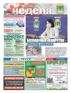 Ковровская 12+ Городская информационноаналитическая газета ÈÌÅÞÒÑß ÏÐÎÒÈÂÎÏÎÊÀÇÀÍÈß. ÏÐÎÊÎÍÑÓËÜÒÈÐÓÉÒÅÑÜ ÑÎ ÑÏÅÖÈÀËÈÑÒÎÌ реклама «КомпСлух» пр-т Ленина, 29 8-904-259-53-83 e-mail: KompSluh33@yandex.ru СЛУХОВЫЕ АППАРАТЫ ДИАГНОСТИКА СЛУХА, ПОДБОР, НАСТРОЙКА МИКРОАППАРАТЫ (НЕВИДИМКИ) ПРОДАЖА: батарейки ушные вкладыши тонкие трубочки фильтры вт, ср, чт, пт 11.00 –15.00 время работы реклама АКУШЕРЫ-ГИНЕКОЛОГИ ПЛЕТНЕВА СВЕТЛАНА ВЛАДИМИРОВНА ВОЛКОВА Рената Анатольевна прием, УЗИ, колькоскопия, пренатальные скрининги. ВРАЧ УЛЬТРАЗВУКОВОЙ ДИАГНОСТИКИ ПОЛЯКОВА Виктория Сергеевна УЗИ брюшной полости, малого таза. Диагностика по беременности, молочные железы, лимфоузлы, щитовидная железа, артерии и вены, УЗИ сердца, сосуды головы и шеи. ПРИНИМАЕМ КОЛЛЕКТИВНЫЕ ЗАЯВКИ ВЫЕЗЖАЕМ НА ПРЕДПРИЯТИЕ ВНИМАНИЕ! ТЕСТ НА КОРОНАВИРУС за 1700 руб. срок – 1 день ГЕМОТЕСТ МЕДИЦИНСКАЯ ЛАБОРАТОРИЯ АНАЛИЗЫ УЗИ ВРАЧИ ВЫЕЗД МЕДСЕСТРЫ НА ДОМ ВНУТРИМЫШЕЧНЫЙ УКОЛ – 60 р. ВНУТРИВЕННЫЙ УКОЛ – 100 р. ВНУТРИВЕННОЕ КАПЕЛЬНОЕ ВЛИВАНИЕ – ОТ 207 р. ул. Строителей, д. 27/2, тел. 9-90-03, 8-961-254-98-00 ул. Чернышевского, д. 3, тел. 6-30-20, 8-961-254-98-00 Камешково, ул. Свердлова, д. 20, тел. 8-962-090-11-10 ИМЕЮТСЯ ПРОТИВОПОКАЗАНИЯ. НЕОБХОДИМА КОНСУЛЬТАЦИЯ СПЕЦИАЛИСТА *Акция действует до 30.09.2020г. Подробности о сроках, условиях и других действующих акциях уточняйте у администратора лабораторного отделения или на сайте. Акции и подарки предоставляет ООО «КОВРОВ-ТЕСТ». ОГРН 1163328051336, лицензия ЛО 33-01-002804 от 26.04.2019 г. Реклама НА АНТИТЕЛА G+M – 700 руб. ДОМ – 60 р ТВОЯ БИОХИМИЯ 8 главных показателей за 690 р. КЛЮЧ К ЗДОРОВЬЮ гормоны щитовидной железы ТТГ, Т4, Т3 за 690 р. Акция* Фото А.Соколова № 91 (628) 27 ноября 2020 г. ɇȺ ȾɈɆɍ ȻȿɁ ɋɇəɌɂə ȻȿɁ ɇȺɊɍɒȿɇɂə ɉɅɈɆȻ ɊȺȻɈɌȺȿɆ ɋ ȾɈ ȻȿɁ ɈȻȿȾȺ ɂ ȼɕɏɈȾɇɕɏ ɂɉ ɉȿɌɊɈȼȺ ɘ Ƚ ȺɌɌȿɋɌȺɌ ȺɄɄɊȿȾɂɌȺɐɂɂ 5$ 58 ȼɕȾȺɇ ɝ ȼ ɫɥɭɱɚɟ ɧɟɩɪɢɝɨɞɧɨɫɬɢ ɫɱɟɬɱɢɤɚ ɨɩɥɚɬɚ ɡɚ ɩɨɜɟɪɤɭ ɧɟ ɜɡɢɦɚɟɬɫɹ реклама ОТ ПРОИЗВОДИТЕЛЯ БЕЗ ПОСРЕДНИКОВ РЕКЛАМА 8-910-182-86-06 НАТЯЖНЫЕ ПОТОЛКИ страница 3 БЕСПЛАТНЫЕ ЛЕКАРСТВА ˱ против ковида Заболеваемость новой коронавирусной инфекцией остается темой номер один. Есть и хорошие новости: в Коврове, как и во всей области, началась выдача бесплатных лекарств амбулаторным больным, у которых подозревают COVID-19. Об этом и многом другом рассказали в четверг на пресс-конференции глава города Елена Фомина и главврач ЦГБ Антон Зинченко.