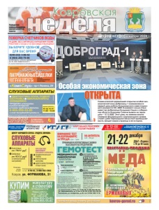 Ковровская 12+ Городская информационноаналитическая газета kovrov-gorod.ru РЕКЛАМА Читайте нашу газету на сайте ÈÌÅÞÒÑß ÏÐÎÒÈÂÎÏÎÊÀÇÀÍÈß. ÏÐÎÊÎÍÑÓËÜÒÈÐÓÉÒÅÑÜ ÑÎ ÑÏÅÖÈÀËÈÑÒÎÌ реклама «КомпСлух» пр-т Ленина, 29 8-904-259-53-83 e-mail: KompSluh33@yandex.ru СЛУХОВЫЕ АППАРАТЫ ДИАГНОСТИКА СЛУХА, ПОДБОР, НАСТРОЙКА МИКРОАППАРАТЫ (НЕВИДИМКИ) ПРОДАЖА: батарейки ушные вкладыши тонкие трубочки фильтры вт, ср, чт, пт 11.00 –15.00 время работы АКУШЕРЫГИНЕКОЛОГИ ПЛЕТНЕВА СВЕТЛАНА ВЛАДИМИРОВНА ВОЛКОВА Рената Анатольевна прием, УЗИ, колькоскопия, пренатальные скрининги. ВРАЧ УЛЬТРАЗВУКОВОЙ ДИАГНОСТИКИ ПОЛЯКОВА Виктория Сергеевна УЗИ брюшной полости, малого таза. Диагностика по беременности, молочные железы, лимфоузлы, щитовидная железа, артерии и вены, УЗИ сердца, сосуды головы и шеи. ПРИНИМАЕМ КОЛЛЕКТИВНЫЕ ЗАЯВКИ ВЫЕЗЖАЕМ НА ПРЕДПРИЯТИЕ ВНИМАНИЕ! ТЕСТ НА КОРОНАВИРУС за 1700 руб. срок – 1 день ГЕМОТЕСТ МЕДИЦИНСКАЯ ЛАБОРАТОРИЯ АНАЛИЗЫ УЗИ ВРАЧИ ВЫЕЗД МЕДСЕСТРЫ НА ДОМ ВНУТРИМЫШЕЧНЫЙ УКОЛ – 60 р. ВНУТРИВЕННЫЙ УКОЛ – 100 р. ВНУТРИВЕННОЕ КАПЕЛЬНОЕ ВЛИВАНИЕ – ОТ 207 р. ул. Строителей, д. 27/2, тел. 9-90-03, 8-961-254-98-00 ул. Чернышевского, д. 3, тел. 6-30-20, 8-961-254-98-00 Камешково, ул. Свердлова, д. 20, тел. 8-962-090-11-10 ИМЕЮТСЯ ПРОТИВОПОКАЗАНИЯ. НЕОБХОДИМА КОНСУЛЬТАЦИЯ СПЕЦИАЛИСТА *Акция действует до 30.09.2020г. Подробности о сроках, условиях и других действующих акциях уточняйте у администратора лабораторного отделения или на сайте. Акции и подарки предоставляет ООО «КОВРОВ-ТЕСТ». ОГРН 1163328051336, лицензия ЛО 33-01-002804 от 26.04.2019 г. Реклама НА АНТИТЕЛА G+M – 700 руб. ДОМ – 60 р ТВОЯ БИОХИМИЯ 8 главных показателей за 690 р. КЛЮЧ К ЗДОРОВЬЮ гормоны щитовидной железы ТТГ, Т4, Т3 за 690 р. Акция* реклама в киосках «Роспечати» «КОВРОВСКАЯ НЕДЕЛЯ» ɇȺ ȾɈɆɍ ȻȿɁ ɋɇəɌɂə ȻȿɁ ɇȺɊɍɒȿɇɂə ɉɅɈɆȻ ɊȺȻɈɌȺȿɆ ɋ ȾɈ ȻȿɁ ɈȻȿȾȺ ɂ ȼɕɏɈȾɇɕɏ ɂɉ ɉȿɌɊɈȼȺ ɘ Ƚ ȺɌɌȿɋɌȺɌ ȺɄɄɊȿȾɂɌȺɐɂɂ 5$ 58 ȼɕȾȺɇ ɝ ȼ ɫɥɭɱɚɟ ɧɟɩɪɢɝɨɞɧɨɫɬɢ ɫɱɟɬɱɢɤɚ ɨɩɥɚɬɚ ɡɚ ɩɨɜɟɪɤɭ ɧɟ ɜɡɢɦɚɟɬɫɹ Àíàëîãîâûå от 5400 руб. Öèôðîâûå от 9000 руб. (ñ êîìïüþòåðíîé íàñòðîéêîé) Î ÏÐÎÒÈÂÎÏÎÊÀÇÀÍÈßÕ ÏÐÎÊÎÍÑÓËÜÒÈÐÓÉÒÅÑÜ ÑÎ ÑÏÅÖÈÀËÈÑÒÎÌ ÖÅÍÒÐ ÕÎÐÎØÅÃÎ ÑËÓÕÀ «ÐÀÄÓÃÀ ÇÂÓÊλ ÑËÓÕÎÂÛÅ ÀÏÏÀÐÀÒÛ Êîâðîâ, óë. ÔÓÐÌÀÍÎÂÀ, 31 ÏÐÈ ÏÎÊÓÏÊÅ ÖÈÔÐÎÂÎÃÎ ÑËÓÕÎÂÎÃÎ ÀÏÏÀÐÀÒÀ: ïðîôåññèîíàëüíûé ïîäáîð êîìïüþòåðíàÿ íàñòðîéêà àóäèîãðàììà (ïðîâåðêà ïîòåðè ñëóõà) ðåêëàìà ÁÅÑÏËÀÒÍÎ Êîíñóëüòàöèÿ ñî ñïåöèàëèñòîì ïî òåë.: 6-46-52, 8-906-562-2992 Âîçìîæåí âûåçä íà äîì Патронажныесиделки на дому и в стационаре Тел. 8-910-678-06-34 заботящееся о нуждающихся ООО «АЗОН» реклама Агентство, Рег. №73 от 09.09.2016 г. Деп. соц. защиты Работает квалифицированный медперсонал реклама КУПИМ макулатуру и стеклотару Ул. Свердлова, д. 91 Режим работы: пн-пт – 7.00-17.00, сб – 8.00-14.00 ™ 8-904-955-55-01, 8-904-955-55-81 Особая экономическая зона ОТКРЫТА Символической церемонией открытия особой экономической зоны Доброград-1 ознаменовался первый день работы Владимирского инвестиционного конгресса VIC-2020. В конгресс-холле отеля инвестор Доброграда Владимир Седов и губернатор области Владимир Сипягин вывели на экран дату – 15.12.2020. Этот день, по мнению многих спикеров федерального и регионального уровня, станет днем перезагрузки областной промышленности, впишет новую страницу в ее историю. страница 3 îò ÍÌÐÌÊÏÐÀÃËËÙõ ïÕÃÉÌÀîÂîÀ вьыставка-продажа реклама продукция натуральньый мёд пчеловодства ÅÐÌÀÊÎÂÛÕ н п п ÄÊèÒ ¦qÌÂÆË¾» ñ 10 ÂÌ 18 Õ¾ÏÌÀ 21-22 ÂÃȾ¿Î½ д ж ё № 97 (634) 18 декабря 2020 г.
