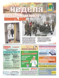12+ Городская информационноаналитическая газета Читайте нашу газету на сайте kovrov-gorod.ru реклама ÈÌÅÞÒÑß ÏÐÎÒÈÂÎÏÎÊÀÇÀÍÈß. ÏÐÎÊÎÍÑÓËÜÒÈÐÓÉÒÅÑÜ ÑÎ ÑÏÅÖÈÀËÈÑÒÎÌ реклама «КомпСлух» пр-т Ленина, 29 8-904-259-53-83 e-mail: KompSluh33@yandex.ru СЛУХОВЫЕ АППАРАТЫ ДИАГНОСТИКА СЛУХА, ПОДБОР, НАСТРОЙКА МИКРОАППАРАТЫ (НЕВИДИМКИ) ПРОДАЖА: батарейки ушные вкладыши тонкие трубочкифильтры вт, ср, чт, пт 11.00 –15.00 время работы АКУШЕРЫГИНЕКОЛОГИ ПЛЕТНЕВА СВЕТЛАНА ВЛАДИМИРОВНА ВОЛКОВА Рената Анатольевна прием, УЗИ, кольпоскопия, пренатальные скрининги. ВРАЧ УЛЬТРАЗВУКОВОЙ ДИАГНОСТИКИ ПОЛЯКОВА Виктория Сергеевна УЗИ брюшной полости, малого таза. Диагностика по беременности, молочные железы, лимфоузлы, щитовидная железа, артерии и вены, УЗИ сердца, сосуды головы и шеи. ПРИНИМАЕМ КОЛЛЕКТИВНЫЕ ЗАЯВКИ ВЫЕЗЖАЕМ НА ПРЕДПРИЯТИЕ ВНИМАНИЕ! ТЕСТ НА КОРОНАВИРУС за 1700 руб. срок – 1 день ГЕМОТЕСТ МЕДИЦИНСКАЯ ЛАБОРАТОРИЯ АНАЛИЗЫ УЗИ ВРАЧИ ВЫЕЗД МЕДСЕСТРЫ НА ДОМ ВНУТРИМЫШЕЧНЫЙ УКОЛ – 60 р. ВНУТРИВЕННЫЙ УКОЛ – 100 р. ВНУТРИВЕННОЕ КАПЕЛЬНОЕ ВЛИВАНИЕ – ОТ 207 р. ул. Строителей, д. 27/2, тел. 9-90-03, 8-961-254-98-00 ул. Чернышевского, д. 3, тел. 6-30-20, 8-961-254-98-00 Камешково, ул. Свердлова, д. 20, тел. 8-962-090-11-10 ИМЕЮТСЯ ПРОТИВОПОКАЗАНИЯ. НЕОБХОДИМА КОНСУЛЬТАЦИЯ СПЕЦИАЛИСТА *Акция действует до 30.09.2020г. Подробности о сроках, условиях и других действующих акциях уточняйте у администратора лабораторного отделения или на сайте. Акции и подарки предоставляет ООО «КОВРОВ-ТЕСТ». ОГРН 1163328051336, лицензия ЛО 33-01-002804 от 26.04.2019 г. Реклама НА АНТИТЕЛА G+M – 700 руб. ДОМ – 60 р ТВОЯ БИОХИМИЯ 8 главных показателей за 690 р. КЛЮЧ К ЗДОРОВЬЮ гормоны щитовидной железы ТТГ, Т4, Т3 за 690 р. Акция* ɇȺ ȾɈɆɍ ȻȿɁ ɋɇəɌɂə ȻȿɁ ɇȺɊɍɒȿɇɂə ɉɅɈɆȻ ɊȺȻɈɌȺȿɆ ɋ ȾɈ ȻȿɁ ɈȻȿȾȺ ɂ ȼɕɏɈȾɇɕɏ ɂɉ ɉȿɌɊɈȼȺ ɘ Ƚ ȺɌɌȿɋɌȺɌ ȺɄɄɊȿȾɂɌȺɐɂɂ 5$ 58 ȼɕȾȺɇ ɝ ȼ ɫɥɭɱɚɟ ɧɟɩɪɢɝɨɞɧɨɫɬɢ ɫɱɟɬɱɢɤɚ ɨɩɥɚɬɚ ɡɚ ɩɨɜɟɪɤɭ ɧɟ ɜɡɢɦɚɟɬɫɹ Патронажныесиделки на дому и в стационаре Тел. 8-910-678-06-34 заботящееся о нуждающихся ООО «АЗОН» реклама Агентство, Рег. №73 от 09.09.2016 г. Деп. соц. защиты Работает квалифицированный медперсонал Ковровская № 11 (650) 19 февраля 2021 г. реклама страницы 3, 14 В морозное утро 15 февраля люди собрались возле мемориального комплекса на улице Абельмана. В этот день в 1989 году советские войска были полностью выведены из Афганистана. Дата стала днем памяти и скорби обо всех солдатах и офицерах, не вернувшихся с полей сражений Афга нистана, Таджикистана, Абхазии, Чечни и других горячих точек ближнего и дальнего зарубежья. А прологом к этому мероприятию послужила историческая реконструкция «Афганская тропа», состоявшаяся в субботу. Ее сюжет был основан на реальных событиях... № 1 А в общем, надо просто ПОМНИТЬ ДОЛГ...