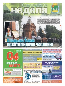 В Коврове 12 августа побывал митрополит Владимирский и Суздальский Тихон. Утром в храме Иоанна Воина он возглавил божественную литургию в честь престольного праздника этого храма. На службе присутствовали глава города Елена Фомина и председатель городского Совета народных депутатов Анатолий Зотов. Также в этот день прошла церемония освящения часовни в честь святого великомученика Георгия Победоносца, построенной на территории завода им. Дегтярёва. 12+ Городская информационноаналитическая газета Фото А.Соколова Патронажныесиделки на дому и в стационаре Тел. 8-910-678-06-34 заботящееся о нуждающихся ООО «АЗОН» реклама Агентство, Рег. №73 от 09.09.2016 г. Деп. соц. защиты Работает квалифицированный медперсонал Ковровская № 63 (702) 20 августа 2021 г. неделя реклама в киосках «Роспечати» «КОВРОВСКАЯ НЕДЕЛЯ» Þ Ñ Î Î Î Ç ÎÎÑÓË Ó Ñ ÑÎÑ Ö ËÑÎ ÈÌÅÞÒÑß ÏÐÎÒÈÂÎÏÎÊÀÇÀÍÈß. ÏÐÎÊÎÍÑÓËÜÒÈÐÓÉÒÅÑÜ ÑÎ ÑÏÅÖÈÀËÈÑÒÎÌ реклама «КомпСлух» пр-т Ленина, 29 8-904-259-53-83 e-mail: KompSluh33@yandex.ru СЛУХОВЫЕ АППАРАТЫ ДИАГНОСТИКА СЛУХА, ПОДБОР, НАСТРОЙКА МИКРОАППАРАТЫ (НЕВИДИМКИ) ПРОДАЖА: батарейки ушные вкладыши тонкие трубочкифильтры вт, ср, чт, пт 11.00 –15.00 время работы ɇȺ ȾɈɆɍ ȻȿɁ ɋɇəɌɂə ȻȿɁ ɇȺɊɍɒȿɇɂə ɉɅɈɆȻ ɊȺȻɈɌȺȿɆ ɋ ȾɈ ȻȿɁ ɈȻȿȾȺ ɂ ȼɕɏɈȾɇɕɏ ɂɉ ɉȿɌɊɈȼȺ ɘ Ƚ ȺɌɌȿɋɌȺɌ ȺɄɄɊȿȾɂɌȺɐɂɂ 5$ 58 ȼɕȾȺɇ ɝ ȼ ɫɥɭɱɚɟ ɧɟɩɪɢɝɨɞɧɨɫɬɢ ɫɱɟɬɱɢɤɚ ɨɩɥɚɬɚ ɡɚ ɩɨɜɟɪɤɭ ɧɟ ɜɡɢɦɚɟɬɫɹ Читайте нашу газету на сайте kovrov-gorod.ru реклама 8-904-037-81-77 8-920-945-72-73 8-915-765-65-73 8-903-648-87-44 СТУДИЯ ОКОН «ВЕНТАНА» Тепло и уют в вашем доме реклама Ул. Грибоедова, 50 www.oknaventana33.ru 43-9-53 ЗАБЕРЕМ СТАРЫЕ РАМЫ ÎÊÍÀ ÏÂÕ ÑÊÈÄÊÈ! äî 30% Мы гарантируем качество и надежность! СУШИЛКА ДЛЯ БЕЛЬЯ В ПОДАРОК!* Принимаем оплату картой. *Подробности узнавайте по телефонам БАЛКОНЫ ЛОДЖИИ КРЫШИ САЙДИНГ Демонтаж бесплатно ул. Лопатина, д. 7, 2 этаж Тел. 8-910-091-85-04 реклама НОВЫЙ СТИЛЬ Запись в коллектив 1-2 сентября с 16.00-19.00 с 4 лет и до... хип-хоп, брейк данс, восточные танцы, классический танец, денсхолл, зумба, аэробика, стрейчинг, эстрадный танец ЦЕНТР СОВРЕМЕННОЙ ХОРЕОГРАФИИ страница 14 Владыка Тихон ОСВЯТИЛ НОВУЮ ЧАСОВНЮ реклама