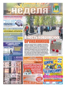 12+ Городская информационноаналитическая газета Фото А. Соколова Патронажныесиделки на дому и в стационаре Тел. 8-910-678-06-34 заботящееся о нуждающихся ООО «АЗОН» реклама Агентство, Рег. №73 от 09.09.2016 г. Деп. соц. защиты Работает квалифицированный медперсонал Ковровская ÈÌÅÞÒÑß ÏÐÎÒÈÂÎÏÎÊÀÇÀÍÈß. ÏÐÎÊÎÍÑÓËÜÒÈÐÓÉÒÅÑÜ ÑÎ ÑÏÅÖÈÀËÈÑÒÎÌ реклама «КомпСлух» пр-т Ленина, 29 8-904-259-53-83 e-mail: KompSluh33@yandex.ru СЛУХОВЫЕ АППАРАТЫ ДИАГНОСТИКА СЛУХА, ПОДБОР, НАСТРОЙКА МИКРОАППАРАТЫ (НЕВИДИМКИ) ПРОДАЖА: батарейки ушные вкладыши тонкие трубочкифильтры вт, ср, чт, пт 11.00 –15.00 время работы ɇȺ ȾɈɆɍ ȻȿɁ ɋɇəɌɂə ȻȿɁ ɇȺɊɍɒȿɇɂə ɉɅɈɆȻ ɊȺȻɈɌȺȿɆ ɋ ȾɈ ȻȿɁ ɈȻȿȾȺ ɂ ȼɕɏɈȾɇɕɏ ɂɉ ɉȿɌɊɈȼȺ ɘ Ƚ ȺɌɌȿɋɌȺɌ ȺɄɄɊȿȾɂɌȺɐɂɂ 5$ 58 ȼɕȾȺɇ ɝ ȼ ɫɥɭɱɚɟ ɧɟɩɪɢɝɨɞɧɨɫɬɢ ɫɱɟɬɱɢɤɚ ɨɩɥɚɬɚ ɡɚ ɩɨɜɟɪɤɭ ɧɟ ɜɡɢɦɚɟɬɫɹ 8-904-037-81-77 8-920-945-72-73 8-915-765-65-73 8-903-648-87-44 СТУДИЯ ОКОН «ВЕНТАНА» Тепло и уют в вашем доме реклама Ул. Грибоедова, 50 www.oknaventana33.ru 43-9-53 ЗАБЕРЕМ СТАРЫЕ РАМЫ ÎÊÍÀ ÏÂÕ ÑÊÈÄÊÈ! äî 30% Мы гарантируем качество и надежность! СУШИЛКА ДЛЯ БЕЛЬЯ В ПОДАРОК!* Принимаем оплату картой. *Подробности узнавайте по телефонам БАЛКОНЫ ЛОДЖИИ КРЫШИ САЙДИНГ Демонтаж бесплатно страница 3 ÍÈÇÊÈÅ ÖÅÍÛ. ÏÅÍÑÈÎÍÅÐÀÌ ÑÊÈÄÊÈ ÎÊÍÎ Â ÅÂÐÎÏÓ . ÏËÀÑÒÈÊÎÂÛÅ ÎÊÍÀ . ÎÑÒÅÊËÅÍÈÅ ÁÀËÊÎÍÎÂ È ËÎÄÆÈÉ . ÂÍÓÒÐÅÍÍßß ÎÒÄÅËÊÀ . ÑÀÉÄÈÍÃ . ÂÛÍÎÑ . ÊÐÛØÈ 8-920-931-22-24 ðåêëàìà № 73 (712) 24 сентября 2021 г. реклама Торжества, приуроченные к «профессиональному» празднику Коврова – Дню оружейника, состоялись в Коврове 17 сентября. В этот день руководители города, представители предприятий, общественности, военнослужащие возложили цветы к памятникам и мемориальным доскам в честь плеяды знаменитых ковровчан, вносивших свою лепту в укрепление обороны страны. В сквере Оружейников вручены награды лучшим сотрудникам оборонных предприятий и КГТА. Здесь же состоялась торжественная церемония присвоения школе №21 имени основоположника отечественной школы автоматического стрелкового оружия Владимира Григорьевича Фёдорова. В честь ковровских ОРУЖЕЙНИКОВ
