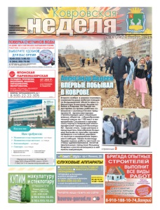 12+ Городская информационноаналитическая газета Ковровская Читайте нашу газету на сайте kovrov-gorod.ru реклама ÈÌÅÞÒÑß ÏÐÎÒÈÂÎÏÎÊÀÇÀÍÈß. ÏÐÎÊÎÍÑÓËÜÒÈÐÓÉÒÅÑÜ ÑÎ ÑÏÅÖÈÀËÈÑÒÎÌ реклама «КомпСлух» пр-т Ленина, 29 8-904-259-53-83 e-mail: KompSluh33@yandex.ru СЛУХОВЫЕ АППАРАТЫ ДИАГНОСТИКА СЛУХА, ПОДБОР, НАСТРОЙКА МИКРОАППАРАТЫ (НЕВИДИМКИ) ПРОДАЖА: батарейки ушные вкладыши тонкие трубочкифильтры вт, ср, чт, пт 11.00 –15.00 время работы ɇȺ ȾɈɆɍ ȻȿɁ ɋɇəɌɂə ȻȿɁ ɇȺɊɍɒȿɇɂə ɉɅɈɆȻ ɊȺȻɈɌȺȿɆ ɋ ȾɈ ȻȿɁ ɈȻȿȾȺ ɂ ȼɕɏɈȾɇɕɏ ɂɉ ɉȿɌɊɈȼȺ ɘ Ƚ ȺɌɌȿɋɌȺɌ ȺɄɄɊȿȾɂɌȺɐɂɂ 5$ 58 ȼɕȾȺɇ ɝ ȼ ɫɥɭɱɚɟ ɧɟɩɪɢɝɨɞɧɨɫɬɢ ɫɱɟɬɱɢɤɚ ɨɩɥɚɬɚ ɡɚ ɩɨɜɟɪɤɭ ɧɟ ɜɡɢɦɚɟɬɫɹ реклама КУПИМ макулатуру и стеклотару Ул. Свердлова, д. 91 Режим работы: пн-пт – 7.00-17.00, сб – 8.00-14.00 8-904-955-55-01, 8-904-955-55-81 № 85 (724) 5 ноября 2021 г. реклама страница3 УКЛАДКИ, ПРИЧЕСКИ, БИОХИМИЯ, МАКИЯЖ, ОКРАШИВАНИЕ, МЕЛИРОВАНИЕ, БРОВИ, РЕСНИЦЫ, МАНИКЮР И ПЕДИКЮР от 500 р. ЯПОНСКАЯ ПАРИКМАХЕРСКАЯ реклама КОВРОВ, ЧЕРНЫШЕВСКОГО, Д. 1 8-930-22-22-305 6-Я СТРИЖКА В ПОДАРОК ОТ 250 Р. ВСЕ СТИРИЖКИ Второго ноября в рамках плановых ознакомительных рабочих поездок по Владимирской области врио губернатора Александр Авдеев побывал в Коврове. На заводе им. Дегтярёва он провел рабочее совещание с руководителями предприятитй, проинспектировал стройплощадки двух социально важных объектов – общеобразовательной школы на 1100 мест в микрорайоне Салтаниха и акушерского корпуса Ковровской многопрофильной городской больницы №1. Кроме этого, глава региона и председатель Заксобрания Владимир Киселёв по просьбе горожан проверили состояние дорожного полотна в микрорайоне Заречная Слободка. Также Александр Авдеев оценил работу местной системы здравоохранения, посетив Центральную городскую больницу Коврова и располагающиеся в ней пункты вакцинации. Александр Авдеев ВПЕРВЫЕ ПОБЫВАЛ В ВКОВРОВЕ КОВРОВЕ