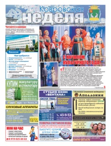 Городская информационноаналитическая газета 12+ Ковровская № 1 (843) 6 января 2023 г. С СНАЧАЛОМ НАЧАЛОМ КУЛЬТУРНОГО ГОД ГОДА! страница 5 «Творческий Ковров. Лучшее». Вот уже шестой год этот фестиваль проходит как настоящий праздник искусства для сотен горожан. Первое и одно из главных событий в календаре культурных мероприятий года состоялось в ДКиТ «Родина» пятого января. Гала-концерт предваряла выставка декоративноприкладного творчества в фойе Дворца культуры. А на сцене блистали действительно лучшие и любимые зрителями юные и взрослые артисты. Разумеется, такой праздник не могли пропустить и первые лица города, поздравившие с Новым годом всех присутствовавших в зале и на сцене. В представлении же были показаны 25 номеров творческих объединений, названия которых хорошо всем знакомы: народный цирк «Арена смелых», театр «Поиск», хореографические ансамбли «Элодея», «Настасья», «Арсенал» и много, много не менее талантливых коллективов и солистов. А подробнее об этом – в следующем номере «КН». ɇȺ ȾɈɆɍ ȻȿɁ ɋɇəɌɂə ȻȿɁ ɇȺɊɍɒȿɇɂə ɉɅɈɆȻ ɊȺȻɈɌȺȿɆ ɋ ȾɈ ȻȿɁ ɈȻȿȾȺ ɂ ȼɕɏɈȾɇɕɏ ɂɉ ɉȿɌɊɈȼȺ ɘ Ƚ ȺɌɌȿɋɌȺɌ ȺɄɄɊȿȾɂɌȺɐɂɂ 5$ 58 ȼɕȾȺɇ ɝ ȼ ɫɥɭɱɚɟ ɧɟɩɪɢɝɨɞɧɨɫɬɢ ɫɱɟɬɱɢɤɚ ɨɩɥɚɬɚ ɡɚ ɩɨɜɟɪɤɭ ɧɟ ɜɡɢɦɚɟɬɫɹ 8-904-037-81-77 8-920-945-72-73 8-915-751-50-50 8-903-648-87-44 СТУДИЯ ОКОН «ВЕНТАНА» Тепло и уют в вашем доме реклама Ул. Грибоедова, 50 www.oknaventana33.ru 43-9-53 ЗАБЕРЕМ СТАРЫЕ РАМЫ ÎÊÍÀ ÏÂÕ ÑÊÈÄÊÈ! äî 30% Мы гарантируем качество и надежность! СУШИЛКА ДЛЯ БЕЛЬЯ В ПОДАРОК!* Принимаем оплату картой. *Подробности узнавайте по телефонам БАЛКОНЫ ЛОДЖИИ КРЫШИ САЙДИНГ Демонтаж бесплатно kovrov-gorod.ru РЕКЛАМА kovrov gorod ru Читайте нашу газету на сайте реклама КУПИМ макулатуру и стеклотару Ул. Свердлова, д. 91 Режим работы: пн-пт – 7.00-17.00, сб – 8.00-14.00 ™ 8-904-955-55-01, 8-904-955-55-81 реклама ЛО 33-01-001784 от 13.02.2015 г. Деп. здравоохранения ВО. Подробности о скидках по телефону. ÈÌÅÞÒÑß ÏÐÎÒÈÂÎÏÎÊÀÇÀÍÈß. ÏÐÎÊÎÍÑÓËÜÒÈÐÓÉÒÅÑÜ ÑÎ ÑÏÅÖÈÀËÈÑÒÎÌ реклама «КомпСлух» пр-т Ленина, 29 8-904-259-53-83 www.korrekcia-sluha.ru СЛУХОВЫЕ АППАРАТЫ ДИАГНОСТИКА СЛУХА, ПОДБОР, НАСТРОЙКА МИКРОАППАРАТЫ (НЕВИДИМКИ) ПРОДАЖА: батарейки ушные вкладыши тонкие трубочкифильтры вт, ср, чт, пт 11.00 –15.00 время работы Св. ИФНС РФ №8 по Влад.обл. 33 №001587735 Оториноларинголог – з/п от 60000 руб. Уролог – з/п от 60000 руб. Детский хирург (совмещение) – з/п от 20000 руб. Стоматолог – з/п от 60000 руб. Детский стоматолог – з/п от 40000 руб. Массажист – з/п 34000 руб. Уборщица – з/п от 18000 руб. Нам требуются: y Трудоустройство по ТК РФ y Официальный доход y Социальный пакет y Сменный график Обращаться по адресу: ул. Ватутина, 88 (офис ООО «Первый КМЦ», рядом с OZON) +7 (960) 730-57-37 t.chernykh@askona.ru, Татьяна Вакансии: реклама МУЖ НА ЧАС yРЕМОНТ ЭЛЕКТРИКИ yРЕМОНТ САНТЕХНИКИ yМЕЛКИЙ БЫТОВОЙ РЕМОНТ yМУЖСКАЯ ПОМОЩЬ ПО ДОМУ 8-919-025-60-63 реклама Фото А.Соколова свежие новости, рассказы о земляках, актуальные темы, культурная и спортивная жизнь, афиша, объявления, сканворд и немного юмора. Читайте в номере: