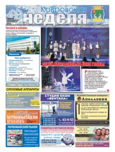 Городская информационноаналитическая газета 12+ Ковровская № 2 (844) 13 января 2023 г. ДЕТЕЙ НАГРАДИЛИ НА ЁЛКЕ ГЛАВЫ страница 15 Рождественская ёлка главы Коврова – одна из многочисленных добрых традиций нашего города. Это чудесное представление предназначено для ребят, которые добились особых успехов в учебе, творчестве, спорте, волонтерстве. Приглашение на такой праздник – большая радость и особая честь, этот волшебный день запомнится детям на всю жизнь. Рождественская ёлка главы состоялась 8 января в ДК «Современник». ɇȺ ȾɈɆɍ ȻȿɁ ɋɇəɌɂə ȻȿɁ ɇȺɊɍɒȿɇɂə ɉɅɈɆȻ ɊȺȻɈɌȺȿɆ ɋ ȾɈ ȻȿɁ ɈȻȿȾȺ ɂ ȼɕɏɈȾɇɕɏ ɂɉ ɉȿɌɊɈȼȺ ɘ Ƚ ȺɌɌȿɋɌȺɌ ȺɄɄɊȿȾɂɌȺɐɂɂ 5$ 58 ȼɕȾȺɇ ɝ ȼ ɫɥɭɱɚɟ ɧɟɩɪɢɝɨɞɧɨɫɬɢ ɫɱɟɬɱɢɤɚ ɨɩɥɚɬɚ ɡɚ ɩɨɜɟɪɤɭ ɧɟ ɜɡɢɦɚɟɬɫɹ 8-904-037-81-77 8-920-945-72-73 8-915-751-50-50 8-903-648-87-44 СТУДИЯ ОКОН «ВЕНТАНА» Тепло и уют в вашем доме реклама Ул. Грибоедова, 50 www.oknaventana33.ru 43-9-53 ЗАБЕРЕМ СТАРЫЕ РАМЫ ÎÊÍÀ ÏÂÕ ÑÊÈÄÊÈ! äî 30% Мы гарантируем качество и надежность! СУШИЛКА ДЛЯ БЕЛЬЯ В ПОДАРОК!* Принимаем оплату картой. *Подробности узнавайте по телефонам БАЛКОНЫ ЛОДЖИИ КРЫШИ САЙДИНГ Демонтаж бесплатно kovrov-gorod.ru РЕКЛАМА kovrov gorod ru Читайте нашу газету на сайте реклама ЛО 33-01-001784 от 13.02.2015 г. Деп. здравоохранения ВО. Подробности о скидках по телефону. Þ Ñ Î Î Î Ç ÎÎÑÓË Ó Ñ ÑÎÑ Ö ËÑÎ ÈÌÅÞÒÑß ÏÐÎÒÈÂÎÏÎÊÀÇÀÍÈß. ÏÐÎÊÎÍÑÓËÜÒÈÐÓÉÒÅÑÜ ÑÎ ÑÏÅÖÈÀËÈÑÒÎÌ реклама «КомпСлух» пр-т Ленина, 29 8-904-259-53-83 www.korrekcia-sluha.ru СЛУХОВЫЕ АППАРАТЫ ДИАГНОСТИКА СЛУХА, ПОДБОР, НАСТРОЙКА МИКРОАППАРАТЫ (НЕВИДИМКИ) ПРОДАЖА: батарейки ушные вкладыши тонкие трубочкифильтры вт, ср, чт, пт 11.00 –15.00 время работы Св. ИФНС РФ №8 по Влад.обл. 33 №001587735 Оториноларинголог – з/п от 60000 руб. Уролог – з/п от 60000 руб. Детский хирург (совмещение) – з/п от 20000 руб. Стоматолог – з/п от 60000 руб. Детский стоматолог – з/п от 40000 руб. Санитарка – з/п 19000 руб. Уборщица – з/п от 18000 руб. Нам требуются: y Трудоустройство по ТК РФ y Официальный доход y Социальный пакет y Сменный график Обращаться по адресу: ул. Ватутина, 88 (офис ООО «Первый КМЦ», рядом с OZON) +7 (960) 730-57-37 t.chernykh@askona.ru, Татьяна Вакансии: реклама Фото А.Соколова свежие новости, рассказы о земляках, актуальные темы, культурная и спортивная жизнь, афиша, объявления, сканворд и немного юмора. Читайте в номере: Патронажныесиделки на дому и в стационаре Тел. 8-910-678-06-34 заботящееся о нуждающихся ООО «АЗОН» реклама Агентство, Рег. №73 от 09.09.2016 г. Деп. соц. защиты Работает квалифицированный медперсонал ПЕРВОМАЙСКИЙ РЫНОК ПРИГЛАШАЕТ ПОКУПАТЕЛЕЙ! Вас ждет широкий выбор продуктов и промтоваров по умеренным ценам. реклама