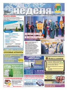 Городская информационноаналитическая газета 12+ Ковровская № 4 (846) 20 января 2023 г. НЕПОБЕДИМАЯ И И ЛЕГЕНДАРНАЯ ЛЕГЕНДАРНАЯ страница 15 ВДК «Современник» 14 января состоялось торжество, посвященное 81-й годовщине со дня создания 130-й стрелковой дивизии, на базе которой впоследствии был сформирован 467-й гвардейский Краснознаменный МосковскоТартуский окружной учебный центр подготовки младших специалистов Западного военного округа. На мероприятии напомнили славный боевой путь воинского формирования, отметили его роль в патриотическом воспитании молодежи и наградили лучших военнослужащих. ɇȺ ȾɈɆɍ ȻȿɁ ɋɇəɌɂə ȻȿɁ ɇȺɊɍɒȿɇɂə ɉɅɈɆȻ ɊȺȻɈɌȺȿɆ ɋ ȾɈ ȻȿɁ ɈȻȿȾȺ ɂ ȼɕɏɈȾɇɕɏ ɂɉ ɉȿɌɊɈȼȺ ɘ Ƚ ȺɌɌȿɋɌȺɌ ȺɄɄɊȿȾɂɌȺɐɂɂ 5$ 58 ȼɕȾȺɇ ɝ ȼ ɫɥɭɱɚɟ ɧɟɩɪɢɝɨɞɧɨɫɬɢ ɫɱɟɬɱɢɤɚ ɨɩɥɚɬɚ ɡɚ ɩɨɜɟɪɤɭ ɧɟ ɜɡɢɦɚɟɬɫɹ 8-904-037-81-77 8-920-945-72-73 8-915-751-50-50 8-903-648-87-44 СТУДИЯ ОКОН «ВЕНТАНА» Тепло и уют в вашем доме реклама Ул. Грибоедова, 50 www.oknaventana33.ru 43-9-53 ЗАБЕРЕМ СТАРЫЕ РАМЫ ÎÊÍÀ ÏÂÕ ÑÊÈÄÊÈ! äî 30% Мы гарантируем качество и надежность! СУШИЛКА ДЛЯ БЕЛЬЯ В ПОДАРОК!* Принимаем оплату картой. *Подробности узнавайте по телефонам БАЛКОНЫ ЛОДЖИИ КРЫШИ САЙДИНГ Демонтаж бесплатно kovrov-gorod.ru РЕКЛАМА kovrov gorod ru Читайте нашу газету на сайте реклама КУПИМ макулатуру и стеклотару Ул. Свердлова, д. 91 Режим работы: пн-пт – 7.00-17.00, сб – 8.00-14.00 8-904-955-55-01, 8-904-955-55-81 реклама ЛО 33-01-001784 от 13.02.2015 г. Деп. здравоохранения ВО. Подробности о скидках по телефону. Þ Ñ Î Î Î Ç ÎÎÑÓË Ó Ñ ÑÎÑ Ö ËÑÎ ÈÌÅÞÒÑß ÏÐÎÒÈÂÎÏÎÊÀÇÀÍÈß. ÏÐÎÊÎÍÑÓËÜÒÈÐÓÉÒÅÑÜ ÑÎ ÑÏÅÖÈÀËÈÑÒÎÌ реклама «КомпСлух» пр-т Ленина, 29 8-904-259-53-83 www.korrekcia-sluha.ru СЛУХОВЫЕ АППАРАТЫ ДИАГНОСТИКА СЛУХА, ПОДБОР, НАСТРОЙКА МИКРОАППАРАТЫ (НЕВИДИМКИ) ПРОДАЖА: батарейки ушные вкладыши тонкие трубочкифильтры вт, ср, чт, пт 11.00 –15.00 время работы Св. ИФНС РФ №8 по Влад.обл. 33 №001587735 Оториноларинголог – з/п от 70000 руб. Маммолог – з/п от 70000 руб. Детский хирург (совмещение) – з/п от 20000 руб. Рентгенолог – з/п от 70000 руб. Медицинская сестра – з/п от 37000 руб. Санитарка – з/п 20000 руб. Уборщица – з/п от 19000 руб. Нам требуются: y Трудоустройство по ТК РФ y Официальный доход y Социальный пакет y Сменный график Обращаться по адресу: ул. Ватутина, 88 (офис ООО «Первый КМЦ», рядом с OZON) +7 (960) 730-57-37 t.chernykh@askona.ru, Татьяна Вакансии: реклама Фото А. Фото Соколова Соколова свежие новости, рассказы о земляках, актуальные темы, культурная и спортивная жизнь, афиша, объявления, сканворд и немного юмора. Читайте в номере: СТРОИТЕЛЬНАЯ БРИГАДА Пенсионерам – скидка 25% Выполнит все виды строительных работ: Фундаменты, реставрация домов, обшивка сайдингом, заборы, хозблоки. Внутренний ремонт и отделка квартир. Работаем с материалом заказчика и своим. 8-919-006-49-98 реклама