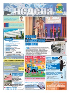 Кредит и рассрочку предоставляет ОТП Банк (Лиц. №2766 от 27.11.2014 г.) г. Ковров, ДКиТ «РОДИНА» ул. Волго-Донская, д.1а С 9.00 до 18.00 Внимание! Только 12 ФЕВРАЛЯ Норковые шубы – от 50 000 рруб. уб Шубы из мутона – от 10 000руб. Дубленки – от 8 000 руб. Успейте до подорожания! Рассрочка без переплат до 24-х месяцев Обмен старых шуб на новые реклама 0+ Распродажа ШУБ и ДУБЛЕНОК по ценам от производителя Пятигорская фабрика Подробную информацию об условиях проведения акции, предоставлении скидок и организаторе узнавайте у продавцов-консультантов на выставке Городская информационноаналитическая газета 12+ Ковровская № 9 (851) 10 февраля 2023 г. ПОДВИГ СТАЛИНГРАДА ПОМНИМ 80-летие разгрома советскими войсками немецкофашистских войск в Сталинградской битве широко отмечено в Коврове: памятные мероприятия прошли в библиотеках, школах, Домах культуры. Центральное из них состоялось 2 февраля в ДК имени В.И. Ленина, где разместилась экспозиция «В окопах Сталинграда». Это проект Фонда сохранения исторической памяти имени маршала В.И. Чуйкова. 62-я армия под командованием этого выдающегося военачальника прославилась именно в битве на Волге. ɇȺ ȾɈɆɍ ȻȿɁ ɋɇəɌɂə ȻȿɁ ɇȺɊɍɒȿɇɂə ɉɅɈɆȻ ɊȺȻɈɌȺȿɆ ɋ ȾɈ ȻȿɁ ɈȻȿȾȺ ɂ ȼɕɏɈȾɇɕɏ ɂɉ ɉȿɌɊɈȼȺ ɘ Ƚ ȺɌɌȿɋɌȺɌ ȺɄɄɊȿȾɂɌȺɐɂɂ 5$ 58 ȼɕȾȺɇ ɝ ȼ ɫɥɭɱɚɟ ɧɟɩɪɢɝɨɞɧɨɫɬɢ ɫɱɟɬɱɢɤɚ ɨɩɥɚɬɚ ɡɚ ɩɨɜɟɪɤɭ ɧɟ ɜɡɢɦɚɟɬɫɹ Þ Ñ Î Î Î Ç ÎÎÑÓË Ó Ñ ÑÎÑ Ö ËÑÎ ÈÌÅÞÒÑß ÏÐÎÒÈÂÎÏÎÊÀÇÀÍÈß. ÏÐÎÊÎÍÑÓËÜÒÈÐÓÉÒÅÑÜ ÑÎ ÑÏÅÖÈÀËÈÑÒÎÌ реклама «КомпСлух» пр-т Ленина, 29 8-904-259-53-83 www.korrekcia-sluha.ru СЛУХОВЫЕ АППАРАТЫ ДИАГНОСТИКА СЛУХА, ПОДБОР, НАСТРОЙКА МИКРОАППАРАТЫ (НЕВИДИМКИ) ПРОДАЖА: батарейки ушные вкладыши тонкие трубочкифильтры вт, ср, чт, пт 11.00 –15.00 время работы Св. ИФНС РФ №8 по Влад.обл. 33 №001587735 Оториноларинголог – з/п от 70000 руб. Маммолог – з/п от 70000 руб. Детский хирург (совмещение) – з/п от 20000 руб. Рентгенолог – з/п от 70000 руб. Медицинская сестра – з/п от 37000 руб. Санитарка – з/п 20000 руб. Уборщица – з/п от 19000 руб. Нам требуются: y Трудоустройство по ТК РФ y Официальный доход y Социальный пакет y Сменный график Обращаться по адресу: ул. Ватутина, 88 (офис ООО «Первый КМЦ», рядом с OZON) +7 (960) 730-57-37 t.chernykh@askona.ru, Татьяна Вакансии: реклама Фото А. Соколова Патронажныесиделки на дому и в стационаре Тел. 8-910-678-06-34 заботящееся о нуждающихся ООО «АЗОН» реклама Агентство, Рег. №73 от 09.09.2016 г. Деп. соц. защиты Работает квалифицированный медперсонал реклама ИНЖЕНЕР-СТРОИТЕЛЬ СО СВОЕЙ БРИГАДОЙ Выполнит все виды работ из своих материалов: крыши всех видов, фундаменты, отмостки, дома с нуля, внутренняя отделка, сайдинги, хозблоки. Поднимаем дома домкратами. Внутренняя отделка и ремонт квартир ПЕНСИОНЕРАМ СКИДКА30% Выезд мастера и консультации бесплатно. 8-909-247-04-70–Андрей 8-962-168-89-99– Александр реклама страница 5 реклама