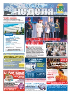 ПЕРВОМАЙСКИЙ РЫНОК ПРИГЛАШАЕТ ПОКУПАТЕЛЕЙ! Вас ждет широкий выбор продуктов и промтоваров по умеренным ценам. реклама Городская информационноаналитическая газета 12+ Ковровская № 15 (857) 3 марта 2023 г. Вканун празднования Дня защитника Отечества в ДКиТ «Родина» состоялось торжественное мероприятие «На страже мира и добра». Официальные лица адресовали вчерашним и нынешним воинам слова уважения и признательности. В этот день награды были вручены как образцовым военнослужащим, так и тем ковровчанам, которые активно занимаются патриотическим воспитанием. На торжественном мероприятии вспоминали о героических страницах военной истории нашей страны, не остались без внимания и воины-интернационалисты. ɇȺ ȾɈɆɍ ȻȿɁ ɋɇəɌɂə ȻȿɁ ɇȺɊɍɒȿɇɂə ɉɅɈɆȻ ɊȺȻɈɌȺȿɆ ɋ ȾɈ ȻȿɁ ɈȻȿȾȺ ɂ ȼɕɏɈȾɇɕɏ ɂɉ ɉȿɌɊɈȼȺ ɘ Ƚ ȺɌɌȿɋɌȺɌ ȺɄɄɊȿȾɂɌȺɐɂɂ 5$ 58 ȼɕȾȺɇ ɝ ȼ ɫɥɭɱɚɟ ɧɟɩɪɢɝɨɞɧɨɫɬɢ ɫɱɟɬɱɢɤɚ ɨɩɥɚɬɚ ɡɚ ɩɨɜɟɪɤɭ ɧɟ ɜɡɢɦɚɟɬɫɹ 8-904-037-81-77 8-920-945-72-73 8-915-751-50-50 8-903-648-87-44 СТУДИЯ ОКОН «ВЕНТАНА» Тепло и уют в вашем доме реклама Ул. Грибоедова, 50 www.oknaventana33.ru 43-9-53 ЗАБЕРЕМ СТАРЫЕ РАМЫ ÎÊÍÀ ÏÂÕ ÑÊÈÄÊÈ! äî 30% Мы гарантируем качество и надежность! СУШИЛКА ДЛЯ БЕЛЬЯ В ПОДАРОК!* Принимаем оплату картой. *Подробности узнавайте по телефонам БАЛКОНЫ ЛОДЖИИ КРЫШИ САЙДИНГ Демонтаж бесплатно ÈÌÅÞÒÑß ÏÐÎÒÈÂÎÏÎÊÀÇÀÍÈß. ÏÐÎÊÎÍÑÓËÜÒÈÐÓÉÒÅÑÜ ÑÎ ÑÏÅÖÈÀËÈÑÒÎÌ реклама «КомпСлух» пр-т Ленина, 29 8-904-259-53-83 www.korrekcia-sluha.ru СЛУХОВЫЕ АППАРАТЫ ДИАГНОСТИКА СЛУХА, ПОДБОР, НАСТРОЙКА МИКРОАППАРАТЫ (НЕВИДИМКИ) ПРОДАЖА: батарейки ушные вкладыши тонкие трубочкифильтры вт, ср, чт, пт 11.00 –15.00 время работы Св. ИФНС РФ №8 по Влад.обл. 33 №001587735 Оториноларинголог – з/п от 70000 руб. Маммолог – з/п от 70000 руб. Детский хирург (совмещение) – з/п от 20000 руб. Рентгенолог – з/п от 70000 руб. Медицинская сестра – з/п от 37000 руб. Санитарка – з/п 20000 руб. Уборщица – з/п от 19000 руб. Нам требуются: y Трудоустройство по ТК РФ y Официальный доход y Социальный пакет y Сменный график Обращаться по адресу: ул. Ватутина, 88 (офис ООО «Первый КМЦ», рядом с OZON) +7 (960) 730-57-37 t.chernykh@askona.ru, Татьяна Вакансии: реклама Фото А. Соколова свежие новости, рассказы о земляках, актуальные темы, культурная и спортивная жизнь, афиша, объявления, сканворд и немного юмора. Читайте в номере: ПОЗДРАВИЛИ ЗАЩИТНИКОВ ОТЕЧЕСТВА страница 5 АДРЕС: ДКиТ «Родина», ул. Волго-Донская, 1а Время работы: с 9.00 до 19.00 Рыба с Камчатки: yБЕЛОРЫБИЦА yПАЛТУС yЧАВЫЧА yКРАСНАЯ ИКРА реклама 0+ КАМЧАТСКИЕ ДЕЛИКАТЕСЫ в Коврове С 7 по 12 МАРТА реклама 8-919-016-17-34 8-910-093-55-51 Сергей 25 Внутренний ремонт и отделка квартир