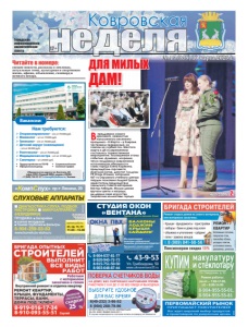 ПЕРВОМАЙСКИЙ РЫНОК ПРИГЛАШАЕТ ПОКУПАТЕЛЕЙ! Вас ждет широкий выбор продуктов и промтоваров по умеренным ценам. реклама Городская информационноаналитическая газета 12+ Ковровская № 17 (859) 10 марта 2023 г. Впреддверии самого красивого, нежностью наполненного весеннего праздника – 8 Марта – в Коврове чествовали прекрасный, но совсем не слабый пол. Шестого марта в ДК «Современник» состоялось торжественное мероприятие, посвященное этому событию. Душевно, искренне, тепло поздравили ковровчанок исполняющая обязанности главы города Елена Корякина, председатель горсовета Анатолий Зотов, депутат Госдумы РФ Игорь Игошин, начальник 467-го Окружного учебного центра гвардии полковник Андрей Трахов, заместитель председателя городского Совета ветеранов Виктор Лебедев. Милым дамам вручали цветы и награды, им дарили свое искусство творческие коллективы города. ɇȺ ȾɈɆɍ ȻȿɁ ɋɇəɌɂə ȻȿɁ ɇȺɊɍɒȿɇɂə ɉɅɈɆȻ ɊȺȻɈɌȺȿɆ ɋ ȾɈ ȻȿɁ ɈȻȿȾȺ ɂ ȼɕɏɈȾɇɕɏ ɂɉ ɉȿɌɊɈȼȺ ɘ Ƚ ȺɌɌȿɋɌȺɌ ȺɄɄɊȿȾɂɌȺɐɂɂ 5$ 58 ȼɕȾȺɇ ɝ ȼ ɫɥɭɱɚɟ ɧɟɩɪɢɝɨɞɧɨɫɬɢ ɫɱɟɬɱɢɤɚ ɨɩɥɚɬɚ ɡɚ ɩɨɜɟɪɤɭ ɧɟ ɜɡɢɦɚɟɬɫɹ 8-904-037-81-77 8-920-945-72-73 8-915-751-50-50 8-903-648-87-44 СТУДИЯ ОКОН «ВЕНТАНА» Тепло и уют в вашем доме реклама Ул. Грибоедова, 50 www.oknaventana33.ru 43-9-53 ЗАБЕРЕМ СТАРЫЕ РАМЫ ÎÊÍÀ ÏÂÕ ÑÊÈÄÊÈ! äî 30% Мы гарантируем качество и надежность! СУШИЛКА ДЛЯ БЕЛЬЯ В ПОДАРОК!* Принимаем оплату картой. *Подробности узнавайте по телефонам БАЛКОНЫ ЛОДЖИИ КРЫШИ САЙДИНГ Демонтаж бесплатно реклама КУПИМ макулатуру и стеклотару Ул. Свердлова, д. 91 Режим работы: пн-пт – 7.00-17.00, сб – 8.00-14.00 8-904-955-55-01, 8-904-955-55-81 Þ Ñ Î Î Î Ç ÎÎÑÓË Ó Ñ ÑÎÑ Ö ËÑÎ ÈÌÅÞÒÑß ÏÐÎÒÈÂÎÏÎÊÀÇÀÍÈß. ÏÐÎÊÎÍÑÓËÜÒÈÐÓÉÒÅÑÜ ÑÎ ÑÏÅÖÈÀËÈÑÒÎÌ реклама «КомпСлух» пр-т Ленина, 29 8-904-259-53-83 www.korrekcia-sluha.ru СЛУХОВЫЕ АППАРАТЫ ДИАГНОСТИКА СЛУХА, ПОДБОР, НАСТРОЙКА МИКРОАППАРАТЫ (НЕВИДИМКИ) ПРОДАЖА: батарейки ушные вкладыши тонкие трубочкифильтры вт, ср, чт, пт 11.00 –15.00 время работы Св. ИФНС РФ №8 по Влад.обл. 33 №001587735 Оториноларинголог – з/п от 70000 руб. Маммолог – з/п от 70000 руб. Гинеколог – з/п от 70000 руб. Детский хирург (совмещение) – з/п от 20000 руб. Рентгенолог – з/п от 70000 руб. Медицинская сестра – з/п от 37000 руб. Санитарка – з/п 20000 руб. Нам требуются: y Трудоустройство по ТК РФ y Официальный доход y Социальный пакет y Сменный график Обращаться по адресу: ул. Ватутина, 88 (офис ООО «Первый КМЦ», рядом с OZON) +7 (960) 730-57-37 t.chernykh@askona.ru, Татьяна Вакансии: реклама Фото А. Соколова свежие новости, рассказы о земляках, актуальные темы, культурная и спортивная жизнь, афиша, объявления, сканворд и немного юмора. Читайте в номере: ДЛЯ ДЛЯМИЛЫХ МИЛЫХ ДАМ! страница 2 реклама 8-919-016-17-34 8-910-093-55-51 Сергей 25 Внутренний ремонт и отделка квартир реклама