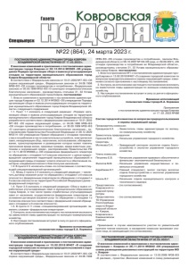 2 №22 24 марта 2023 г. рекламных конструкций на территории МО г. Ковров», согласованным Департаментом строительства и архитектуры администрации Владимирской области от 17.10.2022 №ДАС-4069-06-18, руководствуясь ст. 31,32 Устава муниципального образования г. Ковров, постановляю: 1.Внести изменения в приложение к постановлению администрации г. Коврова Владимирской области от 26.11.2014 №2842 «Об утверждении схемы размещения рекламных конструкций на территории МО г Ковров», согласно приложению к настоящему постановлению. 2. Управлению делами и кадрами администрации города Коврова внести в оригинал постановления администрации г. Коврова Владимирской области от 26.11.2014 №2842 соответствующую запись об изменении. 3. Контроль за исполнением постановления возложить на заместителя главы администрации по жилищно-коммунальному хозяйству. 4. Настоящее постановление вступает в силу со дня его официального опубликования. Временно исполняющий полномочия главы города Е.А. Корякина Приложение к постановлению администрации города Коврова от 20. 03. 2023 №496 ПРОЕКТ «Внесения изменений в схему размещения рекламных конструкций на территории МО г. Ковров» 1. Включить в схему: Места расположения объектов рекламы №№259, 260,261,262,263 ,264,265,266,267,268. Основание: Заявление А.М. Миханюка от 26.10.2021г., вх. №1818/01-300-17 о включении в Схему размещения рекламных конструкций на территории МО г. Ковров.