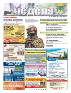 свежие новости, рассказы о земляках, актуальные темы, культурная и спортивная жизнь, официальная информация, афиша, объявления, сканворд и немного юмора. Читайте в номере: Ч й Городская информационноаналитическая газета 12+ Ковровская неделя ɇȺ ȾɈɆɍ ȻȿɁ ɋɇəɌɂə ȻȿɁ ɇȺɊɍɒȿɇɂə ɉɅɈɆȻ ɊȺȻɈɌȺȿɆ ɋ ȾɈ ȻȿɁ ɈȻȿȾȺ ɂ ȼɕɏɈȾɇɕɏ ɂɉ ɉȿɌɊɈȼȺ ɘ Ƚ ȺɌɌȿɋɌȺɌ ȺɄɄɊȿȾɂɌȺɐɂɂ 5$ 58 ȼɕȾȺɇ ɝ ȼ ɫɥɭɱɚɟ ɧɟɩɪɢɝɨɞɧɨɫɬɢ ɫɱɟɬɱɢɤɚ ɨɩɥɚɬɚ ɡɚ ɩɨɜɟɪɤɭ ɧɟ ɜɡɢɦɚɟɬɫɹ 8-904-037-81-77 8-920-945-72-73 8-915-751-50-50 8-903-648-87-44 СТУДИЯ ОКОН «ВЕНТАНА» Тепло и уют в вашем доме реклама Ул. Грибоедова, 50 www.oknaventana33.ru 43-9-53 ЗАБЕРЕМ СТАРЫЕ РАМЫ ÎÊÍÀ ÏÂÕ ÑÊÈÄÊÈ! äî 30% Мы гарантируем качество и надежность! СУШИЛКА ДЛЯ БЕЛЬЯ В ПОДАРОК!* Принимаем оплату картой. *Подробности узнавайте по телефонам БАЛКОНЫ ЛОДЖИИ КРЫШИ САЙДИНГ Демонтаж бесплатно ÈÌÅÞÒÑß ÏÐÎÒÈÂÎÏÎÊÀÇÀÍÈß. ÏÐÎÊÎÍÑÓËÜÒÈÐÓÉÒÅÑÜ ÑÎ ÑÏÅÖÈÀËÈÑÒÎÌ реклама «КомпСлух» пр-т Ленина, 29 8-904-259-53-83 www.korrekcia-sluha.ru СЛУХОВЫЕ АППАРАТЫ ДИАГНОСТИКА СЛУХА, ПОДБОР, НАСТРОЙКА МИКРОАППАРАТЫ (НЕВИДИМКИ) ПРОДАЖА: батарейки ушные вкладыши тонкие трубочкифильтры вт, ср, чт, пт 11.00 –15.00 время работы Св. ИФНС РФ №8 по Влад.обл. 33 №001587735 Оториноларинголог – з/п от 70000 руб. Стоматолог – з/п от 70000 руб. Гинеколог – з/п от 70000 руб. Детский хирург (совмещение) – з/п от 30000 руб. Медсестра в д/с «МИР» – з/п 38500 руб. Диспетчер по приему вызовов скорой – з/п 28000 руб. Дворник – з/п от 26000 руб. Нам требуются: y Трудоустройство по ТК РФ y Официальный доход y Социальный пакет y Сменный график Обращаться по адресу: ул. Ватутина, 88 (офис ООО «Первый КМЦ», рядом с OZON) +7 (960) 730-57-37, Татьяна Вакансии: реклама Патронажныесиделки на дому и в стационаре Тел. 8-910-678-06-34 заботящееся о нуждающихся ООО «АЗОН» реклама Агентство, Рег. №73 от 09.09.2016 г. Деп. соц. защиты Работает квалифицированный медперсонал АКЦИОНЕРНОМУ ОБЩЕСТВУ «ВСЕРОССИЙСКИЙ НАУЧНО-ИССЛЕДОВАТЕЛЬСКИЙ ИНСТИТУТ «СИГНАЛ» в связи с увеличением объемов производства на постоянную работу ТРЕБУЮТСЯ работники следующих специальностей: ○ЗАВЕДУЮЩИЙ ЦЕХОМ ОБЩЕСТВЕННОГО ПИТАНИЯ ○УБОРЩИК ПРОИЗВОДСТВЕННЫХ И СЛУЖЕБНЫХ ПОМЕЩЕНИЙ ○САДОВНИК ○ПОДСОБНЫЙ РАБОЧИЙ ○КОНДИТЕР y Трудоустройство по TK РФ y Полный социальный пакет Обращаться: г. Ковров, ул. Крупской, д. 57 E-mail: mail@vniisignal.ru 90-330, 3-18-66 реклама МУП «Первомайский рынок» на постоянную работу требуются: y СПЕЦИАЛИСТ ПО ОХРАНЕ ТРУДА y ЭЛЕКТРОМОНТЕР по ремонту и обслуживанию электрооборудования (раб. 5/2) y УБОРЩИЦА на Первомайский рынок y БАНЩИК (на ул. Сосновая в муж. отделение) 8 (49232) 2-20-71 реклама Более подробную информацию о заключении контракта можно получить в военном комиссариате города Коврова и Ковровского района по адресу: г. Ковров, ул. Советская, д. 32, и по телефону 8 (49232) 4-89-97. ДЕНЕЖНОЕ ДОВОЛЬСТВИЕ ВОЕННОСЛУЖАЩИХ, ПРОХОДЯЩИХ ВОЕННУЮ СЛУЖБУ ПО КОНТРАКТУ В УЧЕБНОМ ЦЕНТРЕ от 40 тыс. рублей в месяц (в зависимости от воинского звания, должности и выслуги лет) 195 тыс. рублей единовременно (при заключении контракта на срок от года и более) 100 тыс. рублей единовременно (региональная денежная выплата) В ЗОНЕ СПЕЦИАЛЬНОЙ ВОЕННОЙ ОПЕРАЦИИ от 170 тыс. до 200 тыс. рублей в месяц (в зависимости от воинского звания, должности и выслуги лет) от 50 тыс. до 1 млн рублей в месяц (за уничтожение или захват вооружения и военной техники противника) 8 тыс. рублей ежедневно (за участие в активных наступательных действиях) 50 тыс. рублей (за каждый километр продвиже