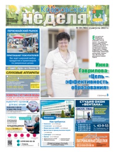 Городская информационноаналитическая газета 12+ Ковровская неделя ɇȺ ȾɈɆɍ ȻȿɁ ɋɇəɌɂə ȻȿɁ ɇȺɊɍɒȿɇɂə ɉɅɈɆȻ ɊȺȻɈɌȺȿɆ ɋ ȾɈ ȻȿɁ ɈȻȿȾȺ ɂ ȼɕɏɈȾɇɕɏ ɂɉ ɉȿɌɊɈȼȺ ɘ Ƚ ȺɌɌȿɋɌȺɌ ȺɄɄɊȿȾɂɌȺɐɂɂ 5$ 58 ȼɕȾȺɇ ɝ ȼ ɫɥɭɱɚɟ ɧɟɩɪɢɝɨɞɧɨɫɬɢ ɫɱɟɬɱɢɤɚ ɨɩɥɚɬɚ ɡɚ ɩɨɜɟɪɤɭ ɧɟ ɜɡɢɦɚɟɬɫɹ 8-904-037-81-77 8-920-945-72-73 8-915-751-50-50 8-903-648-87-44 СТУДИЯ ОКОН «ВЕНТАНА» Тепло и уют в вашем доме реклама Ул. Грибоедова, 50 www.oknaventana33.ru 43-9-53 ЗАБЕРЕМ СТАРЫЕ РАМЫ ÎÊÍÀ ÏÂÕ ÑÊÈÄÊÈ! äî 30% Мы гарантируем качество и надежность! СУШИЛКА ДЛЯ БЕЛЬЯ В ПОДАРОК!* Принимаем оплату картой. *Подробности узнавайте по телефонам БАЛКОНЫ ЛОДЖИИ КРЫШИ САЙДИНГ Демонтаж бесплатно ÈÌÅÞÒÑß ÏÐÎÒÈÂÎÏÎÊÀÇÀÍÈß. ÏÐÎÊÎÍÑÓËÜÒÈÐÓÉÒÅÑÜ ÑÎ ÑÏÅÖÈÀËÈÑÒÎÌ реклама «КомпСлух» пр-т Ленина, 29 8-904-259-53-83 www.korrekcia-sluha.ru СЛУХОВЫЕ АППАРАТЫ ДИАГНОСТИКА СЛУХА, ПОДБОР, НАСТРОЙКА МИКРОАППАРАТЫ (НЕВИДИМКИ) ПРОДАЖА: батарейки ушные вкладыши тонкие трубочкифильтры вт, ср, чт, пт 11.00 –15.00 время работы Св. ИФНС РФ №8 по Влад.обл. 33 №001587735 Гинеколог – з/п от 70000 руб. Стоматолог – з/п от 70000 руб. Медсестра в д/с «МИР» – з/п 43000 руб. Диспетчер по приему вызовов скорой – з/п 28000 руб. Санитарка – з/п от 20000 руб. Прачка – з/п от 19000 руб. Нам требуются: y Трудоустройство по ТК РФ y Официальный доход y Социальный пакет y Сменный график Обращаться по адресу: ул. Ватутина, 88 (офис ООО «Первый КМЦ», рядом с OZON) +7 (915) 760-89-37, Татьяна Вакансии: реклама Патронажныесиделки на дому и в стационаре Тел. 8-910-678-06-34 заботящееся о нуждающихся ООО «АЗОН» реклама Агентство, Рег. №73 от 09.09.2016 г. Деп. соц. защиты Работает квалифицированный медперсонал ПЕРВОМАЙСКИЙ РЫНОК реклама ПРИГЛАШАЕТ ПОКУПАТЕЛЕЙ! Вас ждет широкий выбор продуктов и промтоваров по умеренным ценам. страница 5 Инна Гаврилова: ˭Цель – Цель эффективность образования» Если дети на каникулах, а педагоги в отпусках, это не значит, что директор школы тоже только отдыхает. Всегда есть необходимые дела, интересные проекты, подготовка к новому учебному году. У Инны Гавриловой, директора школы №22, именно так. Об этом она рассказала нашей газете. № 59 (901) 4 августа 2023 г. реклама