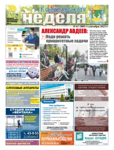 2 1 сентября 2023 г. Ковровская неделя № 67 события недели 2 СЕНТЯБРЯ – ДЕНЬ ГОРОДА КОВРОВА С юбилеем! С 24 по 30 августа отделом ЗАГС города Коврова зарегистрированы новорожденные: Дарья Петрова, Алина Салимбаева. Поздравляем счастливые ковровские семьи с рождением малышей. Нет для родителей важнее события, чем рождение ребенка! С появлением малыша в семье воцаряются любовь, счастье и радость! Пусть же ваши дети растут здоровыми, умными, красивыми, послушными и бесконечно радуют вас своими успехами! Глава города Елена Фомина Председатель Совета народных депутатов Анатолий Зотов В эти дни отмечают юбилей ветераны Великой Отечественной войны, труженики тыла Валентина Яковлевна Никулина, Нина Гавриловна Горынина. Уважаемые ветераны! От души поздравляем вас с юбилеем! На долю поколения, к которому вы принадлежите, выпало немало горя и лишений. Вы с честью прошли через тяжелейшие испытания Великой Отечественной войны, проявили стойкость и мужество, сохранили искренность и оптимизм. Желаем, чтобы здоровье не подводило, жизнелюбие и оптимизм никогда не иссякали, а близкие люди радовали своей заботой и вниманием. Пусть каждый день дарит радость и положительные эмоции, ведь это и есть залог долгожительства. Спасибо за трудовой и ратный подвиг. Счастья вам, здоровья и долгих лет жизни! Глава города Елена Фомина Председатель Совета народных депутатов Анатолий Зотов ПОЗДРАВЛЯЕМ С РОЖДЕНИЕМ МАЛЫШЕЙ! реклама Уважаемые ковровчане! Примите самые искренние и теплые поздравления с Днем города. В этом году Коврову исполняется 245 лет со дня образования города и 490 лет с момента первого упоминания! Между далекими временами, когда был основан наш город, и сегодняшним днем лежат вехи долгой летописи города оружейников. За эти годы здесь слагались тысячи судеб, созидали и строили город десятки поколений – Ковров обретал силу и стать. Наш город по праву гордится богатой и славной историей. Во все времена город оружейников ковал щит нашего государства. Ковров единственный в регионе город, который удостоен звания города воинской славы – за вклад ковровских оружейников в Победу в Великой Отечественной войне. По праву считаясь третьей оружейной столицей России, Ковров и сегодня славится далеко за пределами нашей страны. Город также известен революционными, боевыми и трудовыми традициями. Нынешние наследники прославленных мастероворужейников в тяжелое для страны время сумели сохранить научно-производственный потенциал своих предприятий, удержать технологию производства на высочайшем уровне. Сегодня Ковров – динамично растущий индустриальный, культурный, интеллектуальный центр, где созданы условия для развития бизнеса, науки, образования, где есть богатые перспективы для решения хозяйственных, социальных, промышленных и других задач в интересах каждого жителя города. Все вместе мы прикладываем большие усилия для процветания Коврова, и в наших с вами возможностях сделать его более крепким, экономически стабильным городом с достойными условиями жизни. От всей души желаем всем ковровчанам праздничного настроения, благополучия, счастья, успехов в любых делах. Пусть в жизнь каждого горожанина время приносит только благоприятные перемены! Пусть дети растут здоровыми и счастливыми! Искренне желаем всем крепкого здоровья, оптимизма и успеха в л