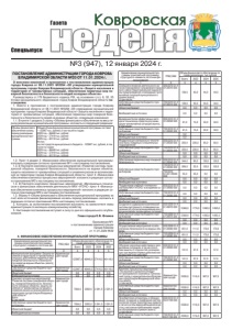 3 №3 12 января 2023 г. техногенного характера», руководствуясь ст.ст. 6, 32, 35 Устава муниципального образования город Ковров Владимирской области, постановляю: 1. Внести в приложение №1 к постановлению администрации города Коврова Владимирской области от 20.09.2022 №2225 «О порядке сбора и обмена на территории муниципального образования город Ковров информацией в области защиты населения и территорий от чрезвычайных ситуаций природного и техногенного характера» следующие изменения: – п.п. 2.1. п. 2 приложения №1 изложить в следующей редакции: «Сбор и обмен информацией осуществляются территориальными органами федеральных органов исполнительной власти, органами местного самоуправления и организациями в целях принятия мер по предупреждению и ликвидации чрезвычайных ситуаций, оценки их последствий, информирования и своевременного оповещения населения о прогнозируемых и возникших чрезвычайных ситуациях, в том числе с использованием автоматизированной управляющей системы единой государственной системы предупреждения и ликвидации чрезвычайных ситуаций (далее – АИУС РСЧС)»; – п. 3 приложения №1 дополнить п.п. 3.5. следующего содержания: «ТО ФОИВ представляют на безвозмездной основе МКУ «УГОЧС» через ЕДДС города постоянный доступ к информационным системам, содержащим информацию, в соответствии с заключенными соглашениями между соответствующими ТО ФОИВ и МКУ «УГОЧС». 2. Контроль за исполнением настоящего постановления возложить на заместителя главы администрации города по жилищно-коммунальному хозяйству. 3. Настоящее постановление вступает в силу со дня его официального опубликования. Глава города Е.В. Фомина ПОСТАНОВЛЕНИЕ АДМИНИСТРАЦИИ ГОРОДА КОВРОВА ВЛАДИМИРСКОЙ ОБЛАСТИ №22 ОТ 11.01.2024 г. О внесении изменений в постановление администрации города Коврова Владимирской области от 13.08.2015 №1979 «Об утверждении требований к порядку разработки и принятия правовых актов о нормировании в сфере закупок для обеспечения муниципальных нужд, содержанию указанных актов и обеспечению их исполнения». В соответствии со статьей 19 Федерального законаРФ от 05.04.2013 №44-ФЗ «О контрактной системе в сфере закупок товаров, работ, услуг для обеспечения государственных и муниципальных нужд», Постановлением Правительства РФ от 18.05.2015 №476 «Об утверждении общих требований к порядку разработки и принятия правовых актов о нормировании в сфере закупок, содержанию указанных актов и обеспечению их исполнения», руководствуясь статями 31, 32 Устава муниципального образования город Ковров Владимирской области, постановляю: 1. Внести в постановление администрации города Коврова Владимирской области от 13.08.2015 №1979 «Об утверждении требований к порядку разработки и принятия правовых актов о нормировании в сфере закупок для обеспечения муниципальных нужд, содержанию указанных актов и обеспечению их исполнения» следующие изменения: 1.1. В пункте 2 слово «отделом» заменить на слово «управлением». 1.2. Включить пункт 9.1 следующего содержания: «9.1. Муниципальные органы вправе предварительно обсудить проекты правовых актов, указанных в абзаце третьем подпункта «а» и абзацем третьем подпункта «б» пункта 1 настоящего документа, на заседании общественного совета при администрации». 1.3. Пункт 12 исключить. 1.4. Приложение к требованиям к порядку разработки и принятия правовых а