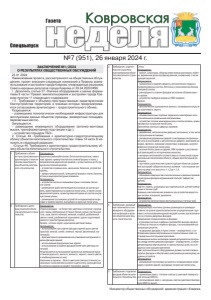№7 (951), 26 января 2024 г. ǺDzDZDzǸȌ ǸȜȐȞȜȐȟȘȎȭ Спецвыпуск Газета ЗАКЛЮЧЕНИЕ №1/2024 О РЕЗУЛЬТАТАХ ОБЩЕСТВЕННЫХ ОБСУЖДЕНИЙ 23.01.2024 Наименование проекта, рассмотренного на общественных обсуждениях: проект внесения следующих изменений в Правила землепользования и застройки города Коврова, утвержденные решением Совета народных депутатов города Коврова от 29.04.2020 №90: 1. Дополнить статью 27 «Уличное оборудование и малые формы» главы 8 части I Правил землепользования и застройки города Коврова пунктом 11 следующего содержания: «11. Требования к объемно-пространственным характеристикам благоустройства территорий, в границах которых предусматривается согласование архитектурно – градостроительного облика. Разрешается: – размещение технологически необходимой инфраструктуры для эксплуатации данных объектов (проезды, разворотные площадки, парковочные места). Запрещается: – размещение инженерного оборудования (антенно-мачтовые вышки, трансформаторные подстанции и др.); – устройство площадок ТБО». 2. Статью 44 «Требования к архитектурно-градостроительному облику объектов капитального строительства» главы 14 части III изложить в следующей редакции: «Статья 44. Требования к архитектурно-градостроительному облику объектов капитального строительства. 1 Требования к объемно-пространственным и архитектурно-стилистическим характеристикам объектов капитального строительства Разрешается: Кирпичные (железобетонные, бетонные монолитные, каменные) здания, прямоугольной или сложной формы в плане, с вальмовой или двухскатной кровлей, с углом наклона до 25 градусов или плоской кровлей. – устройство слуховых окон, мезонинов, балконов, устройство крылец; – эркеры прямоугольной, трехгранной формы в плане, балконы, аттики и иные архитектурные элементы. Запрещается: – устройство скатных и вальмовых крыш с изломом плоскости скатов; – размещение труб и вентиляционных каналов на скатах кровель, ориентированных на красные линии улиц, а также в конек двухскатной кровли, ориентированной одним из скатов на красную линию улицы; – размещение спутниковых устройств и кондиционеров на фасадах и кровлях зданий, выходящих на красные линии улиц. 2 Требования к цветовым решениям объектов капитального строительства Разрешается: Отделка фасадов – не более трех цветовых сочетаний «природной» гаммы (нейтральные оттенки): белый, серый, пастельные тона, охра, светло-зеленый, зеленый, голубой, разбеленный светло-синий, разбеленный коричневый, красно-коричневый (вместе с архитектурным декором). Кровля –оттенки серой, коричневой цветовой гаммы. Запрещается: – использование при отделке фасадов зданий ярких цветов (красный, желтый, синий, зеленый, черный, фиолетовый, малиновый); – фрагментарное окрашивание или изменение материалов отделки фасадов зданий; – использование флуоресцентных красок; – использование в отделке фасадов более трех цветовых сочетаний. Не допускается использование кровельных материалов ярких оттенков (красного, желтого, зеленого, черного, синего цветов и комбинированные из них). Наличники и карнизы – белого цвета или светлых оттенков (на несколько тонов светлее основного цвета стен), разноцветные (в случае их окраски на момент постройки здания). 3 Требования к отделочным или строительным материалам объектов капитального строительства Стены Разр