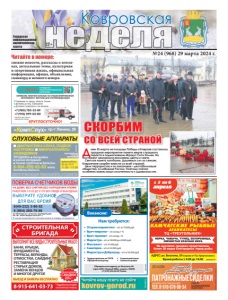 Оториноларинголог – з/п от 70000 руб. Врач-невролог – з/п оклад + % Врач-терапевт – з/п оклад + % Медсестра – з/п от 38000 до 42000 руб. Массажист – з/п 41000 руб. Санитарка – з/п от 22000 руб. Медсестра в Доброград – з/п от 45000 руб. Нам требуются: Трудоустройство по ТК РФ Официальный доход Социальный пакет Сменный график Обращаться по адресу: ул. Ватутина, 88 (офис ООО «Первый КМЦ», рядом с OZON) +7 (919) 256-40-87, Елена Вакансии: реклама kovrov-gorod.ru РЕКЛАМА Читайте нашу газету на сайте свежие новости, рассказы о земляках, актуальные темы, культурная и спортивная жизнь, официальная информация, афиша, объявления, сканворд и немного юмора. Читайте в номере: Ч й Городская информационноаналитическая газета 12+ Ковровская ɇȺ ȾɈɆɍ ȻȿɁ ɋɇəɌɂə ȻȿɁ ɇȺɊɍɒȿɇɂə ɉɅɈɆȻ ɊȺȻɈɌȺȿɆ ɋ ȾɈ ȻȿɁ ɈȻȿȾȺ ɂ ȼɕɏɈȾɇɕɏ ɂɉ ɉȿɌɊɈȼȺ ɘ Ƚ ȺɌɌȿɋɌȺɌ ȺɄɄɊȿȾɂɌȺɐɂɂ 5$ 58 ȼɕȾȺɇ ɝ ȼ ɫɥɭɱɚɟ ɧɟɩɪɢɝɨɞɧɨɫɬɢ ɫɱɟɬɱɢɤɚ ɨɩɥɚɬɚ ɡɚ ɩɨɜɟɪɤɭ ɧɟ ɜɡɢɦɚɟɬɫɹ Днем 23 марта на площади Победы в Коврове состоялось траурное мероприятие памяти жертв страшного теракта в подмосковном «Крокус Сити Холле». На постамент мемориала возложены цветы и свечи. Светлая память погибшим. Душевных сил их семьям. Ковровчане скорбят вместе со всей страной. Цель террористов и их заказчиков – дестабилизация общества, ослабление России. Поэтому сейчас особенно важны наши сплоченность и здравомыслие. СКОРБИМ СО ВСЕЙ СТРАНОЙ №24 (968) 29 марта 2024 г. ÈÌÅÞÒÑß ÏÐÎÒÈÂÎÏÎÊÀÇÀÍÈß. ÏÐÎÊÎÍÑÓËÜÒÈÐÓÉÒÅÑÜ ÑÎ ÑÏÅÖÈÀËÈÑÒÎÌ реклама «КомпСлух» пр-т Ленина, 29 8-904-259-53-83 www. korrekcia-sluha.ru СЛУХОВЫЕ АППАРАТЫ ДИАГНОСТИКА СЛУХА, ПОДБОР, НАСТРОЙКА МИКРОАППАРАТЫ (НЕВИДИМКИ) ПРОДАЖА: батарейки ушные вкладыши тонкие трубочкифильтры вт, ср, чт, пт 11.00 –15.00 время работы Св. ИФНС РФ №8 по Влад.обл. 33 №001587735 Патронажныесиделки на дому и в стационаре Тел. 8-910-678-06-34 заботящееся о нуждающихся ООО «АЗОН» реклама Агентство, Рег. №73 от 09.09.2016 г. Деп. соц. защиты Работает квалифицированный медперсонал АДРЕС: ул. Ватутина, 59 (справа от ТЦ «Треугольник») Время работы: с 9.00 до 18.00 ÍÅÐÊÀ, ×ÀÂÛ×À, ÒÓÍÅÖ, ÁÅËÎÐÛÁÈÖÀ, ÇÅÐÍÈÑÒÀß ÊÐÀÑÍÀß ÈÊÐÀ Íà âûñòàâêå-ïðîäàæå ïðåäñòàâëåíû áîëåå 20 âèäîâ áëàãîðîäíûõ ïîðîä ðûáû реклама 0+ ÊÀÌ×ÀÒÑÊÈÅ ÐÛÁÍÛÅ ÄÅËÈÊÀÒÅÑÛ ТЦ «ТРЕУГОЛЬНИК» ñ 2 ïî 6 àïðåëÿ реклама 8-915-641-03-73 реклама СТРОИТЕЛЬНАЯ БРИГАДА * Подробности уточняйте по указанному телефону ВЫПОЛНИТ ВСЕ ВИДЫ СТРОИТЕЛЬНЫХ РАБОТ: БАНИ, КРЫШИ, ФУНДАМЕНТЫ, ТЕРРАСЫ, ВЕРАНДЫ, ОТМОСТКИ, САЙДИНГ, ДИНГ, РЕСТАВРАЦИЯ СТАРЫХ ДОМОВ, ЗАМЕНА ВЕНЦОВ И МНОГОЕ ДРУГОЕ ВЫЕЗД И ЗАМЕРЫ БЕСПЛАТНО ПЕНСИОНЕРАМ СКИДКИ 20% *