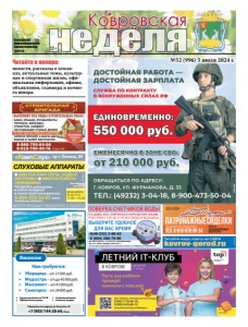 реклама ¾ Уборщица – з/п 21000 руб. ¾ Медсестра – з/п до 45000 руб. ¾ Массажист – з/п 41000 руб. ¾ Санитарка – з/п 24000 руб. Нам требуются: y Трудоустройство по ТК РФ y Официальный доход y Социальный пакет y Сменный график Обращаться по адресу: ул. Ватутина, 90 +7 (905) 144-38-64, Нина Вакансии: реклама новости, рассказы о земляках, актуальные темы, культурная и спортивная жизнь, официальная информация, афиша, объявления, сканворд и немного юмора. Читайте в номере: Городская информационноаналитическая газета неделя 12+ Ковровская НА ДОМУ, БЕЗ СНЯТИЯ,БЕЗ НАРУШЕНИЯ ПЛОМБ РАБОТАЕМ С 8.00 ДО 21.00 БЕЗ ОБЕДА И ВЫХОДНЫХ ИП ПЕТРОВА Ю.Г. АТТЕСТАТ АККРЕДИТАЦИИ RA. RU. 320031 ВЫДАН 28.04.2017 г. В случае непригодности счетчика оплата за поверку не взимается 8(49-232) 3-86-52 8 (904) 260-79-96 Патронажныесиделки на дому и в стационаре Тел. 8-910-678-06-34 заботящееся о нуждающихся ООО «АЗОН» реклама Агентство, Рег. №73 от 09.09.2016 г. Деп. соц. защиты Работает квалифицированный медперсонал kovrov-gorod.ru РЕКЛАМА Читайте нашу газету на сайте №52 (996) 5 июля 2024 г. ИМЕЮТСЯ ПРОТИВОПОКАЗАНИЯ. ПРОКОНСУЛЬТИРУЙТЕСЬ СО СПЕЦИАЛИСТОМ реклама «КомпСлух» пр-т Ленина, 29 8-904-259-53-83 www. korrekcia-sluha.ru СЛУХОВЫЕ АППАРАТЫ ДИАГНОСТИКА СЛУХА, ПОДБОР, НАСТРОЙКА МИКРОАППАРАТЫ (НЕВИДИМКИ) ПРОДАЖА: батарейки ушные вкладыши тонкие трубочки фильтры вт, ср, чт, пт 11.00 –15.00 время работы Св. ИФНС РФ №8 по Влад.обл. 33 №001587735 реклама