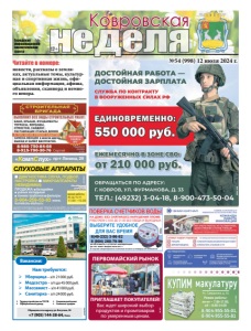 реклама ¾ Уборщица – з/п 21000 руб. ¾ Медсестра – з/п до 45000 руб. ¾ Массажист – з/п 41000 руб. ¾ Санитарка – з/п 24000 руб. Нам требуются: y Трудоустройство по ТК РФ y Официальный доход y Социальный пакет y Сменный график Обращаться по адресу: ул. Ватутина, 90 +7 (905) 144-38-64, Нина Вакансии: реклама новости, рассказы о земляках, актуальные темы, культурная и спортивная жизнь, официальная информация, афиша, объявления, сканворд и немного юмора. Читайте в номере: Городская информационноаналитическая газета неделя 12+ Ковровская НА ДОМУ, БЕЗ СНЯТИЯ,БЕЗ НАРУШЕНИЯ ПЛОМБ РАБОТАЕМ С 8.00 ДО 21.00 БЕЗ ОБЕДА И ВЫХОДНЫХ ИП ПЕТРОВА Ю.Г. АТТЕСТАТ АККРЕДИТАЦИИ RA. RU. 320031 ВЫДАН 28.04.2017 г. В случае непригодности счетчика оплата за поверку не взимается 8(49-232) 3-86-52 8 (904) 260-79-96 ПЕРВОМАЙСКИЙ РЫНОК реклама ПРИГЛАШАЕТ ПОКУПАТЕЛЕЙ! Вас ждет широкий выбор продуктов и промтоваров по умеренным ценам. реклама №54 (998) 12 июля 2024 г. ИМЕЮТСЯ ПРОТИВОПОКАЗАНИЯ. ПРОКОНСУЛЬТИРУЙТЕСЬ СО СПЕЦИАЛИСТОМ реклама «КомпСлух» пр-т Ленина, 29 8-904-259-53-83 www. korrekcia-sluha.ru СЛУХОВЫЕ АППАРАТЫ ДИАГНОСТИКА СЛУХА, ПОДБОР, НАСТРОЙКА МИКРОАППАРАТЫ (НЕВИДИМКИ) ПРОДАЖА: батарейки ушные вкладыши тонкие трубочки фильтры вт, ср, чт, пт 11.00 –15.00 время работы Св. ИФНС РФ №8 по Влад.обл. 33 №001587735 реклама КУПИМ макулатуру Ул. Свердлова, д. 91 Режим работы: пн-пт – 7.00-17.00, сб – 8.00-14.00 ™ 8-904-955-55-01, 8-904-955-55-81 реклама
