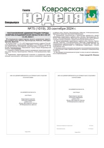 №75 (1019), 20 сентября 2024 г. ǺDzDZDzǸȌ ǸȜȐȞȜȐȟȘȎȭ Спецвыпуск Газета ПОСТАНОВЛЕНИЕ АДМИНИСТРАЦИИ ГОРОДА КОВРОВА ВЛАДИМИРСКОЙ ОБЛАСТИ №2199 ОТ 13.09.2024 Г. Об утверждении корректировки проекта межевания территории в районе улиц: Ногина, Пролетарская, Рабочая, 3 Интернационала, Брюсова В соответствии с ч.13 ст.46 Градостроительного кодекса Российской Федерации, заключением №8/2024 от 27.08.2024 о результатах общественных обсуждений, руководствуясь статьями 6, 31, 32 Устава муниципального образования город Ковров Владимирской области, постановляю: 1. Утвердить корректировку проекта межевания территории в районе улиц: Ногина, Пролетарская, Рабочая, 3 Интернационала, Брюсова. 2. Управлению территориальной политики и социальных коммуникаций организовать публикацию проекта межевания территории в районе улиц: Ногина, Пролетарская, Рабочая, 3 Интернационала, Брюсова в средствах массовой информации. 3. Управлению строительства и архитектуры разместить проект межевания территории в районе улиц: Ногина, Пролетарская, Рабочая, 3 Интернационала, Брюсова на официальном сайте администрации города в разделе «градостроительная деятельность». 4. Проект межевания территории в районе улиц: Ногина, Пролетарская, Рабочая, 3 Интернационала, Брюсова, утвержденный постановлением администрации г.Коврова от 06.09.2021 №1799 «Об утверждении документации по планировке территории», считать утратившим силу. 5. Контроль за исполнением настоящего постановления возложить на заместителя главы администрации по жилищно-коммунальному хозяйству. 6. Настоящее постановление вступает в силу со дня его официального опубликования. Глава города Е.В. Фомина