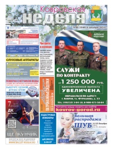 свежие новости, рассказы о земляках, актуальные темы, культурная и спортивная жизнь, официальная информация, афиша, объявления, сканворд и немного юмора. Читайте в номере: 12+ kovrov-gorod.ru РЕКЛАМА Читайте нашу газету на сайте реклама Городская информационноаналитическая газета ɇȺ ȾɈɆɍ ȻȿɁ ɋɇəɌɂə ȻȿɁ ɇȺɊɍɒȿɇɂə ɉɅɈɆȻ ɊȺȻɈɌȺȿɆ ɋ ȾɈ ȻȿɁ ɈȻȿȾȺ ɂ ȼɕɏɈȾɇɕɏ ɂɉ ɉȿɌɊɈȼȺ ɘ Ƚ ȺɌɌȿɋɌȺɌ ȺɄɄɊȿȾɂɌȺɐɂɂ 5$ 58 ȼɕȾȺɇ ɝ ȼ ɫɥɭɱɚɟ ɧɟɩɪɢɝɨɞɧɨɫɬɢ ɫɱɟɬɱɢɤɚ ɨɩɥɚɬɚ ɡɚ ɩɨɜɟɪɤɭ ɧɟ ɜɡɢɦɚɟɬɫɹ Ковровская др №96 (1040) 6 декабря 2024 г. Þ Ñ Î Î Î Ç ÎÎÑÓË Ó Ñ ÑÎÑ Ö ËÑÎ ÈÌÅÞÒÑß ÏÐÎÒÈÂÎÏÎÊÀÇÀÍÈß. ÏÐÎÊÎÍÑÓËÜÒÈÐÓÉÒÅÑÜ ÑÎ ÑÏÅÖÈÀËÈÑÒÎÌ реклама «КомпСлух» пр-т Ленина, 29 8-904-259-53-83 www. korrekcia-sluha.ru СЛУХОВЫЕ АППАРАТЫ ДИАГНОСТИКА СЛУХА, ПОДБОР, НАСТРОЙКА МИКРОАППАРАТЫ (НЕВИДИМКИ) ПРОДАЖА: батарейки ушные вкладыши тонкие трубочкифильтры вт, ср, чт, пт 11.00 –15.00 время работы Св. ИФНС РФ №8 по Влад.обл. 33 №001587735 ШУБ Цены от 10 000 рублей размеры от 38 до 72 реклама 0+ 6-10 декабря ДКиО им. В.А. Дегтярёва Большая распродажа Мутон – до 30 000 рублей Норка – до 90 000 рублей Большой выбор шапок Ждём вас с 9 до 19 часов Принесите старое изделие и получите скидку на новое на новое Подробную информацию об условиях проведения акции, предоставлении скидок и организаторе узнавайте у продавцов-консультантов на выставке реклама Патронажныесиделки на дому и в стационаре Тел. 8-910-678-06-34 заботящееся о нуждающихся ООО «АЗОН» реклама Агентство, Рег. №73 от 09.09.2016 г. Деп. соц. защиты Работает квалифицированный медперсонал КАДАСТРОВЫЕ ИНЖЕНЕРЫ! В газете «Ковровская неделя» вы можете разместить извещения о проведении кадастровых работ. 8 (49232) 6-44-07 реклама реклама