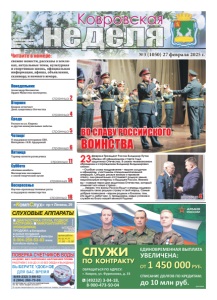 свежие новости, рассказы о земляках, актуальные темы, культурная и спортивная жизнь, официальная информация, афиша, объявления, сканворд и немного юмора. Читайте в номере: 12+ 23февраля Президент России Владимир Путин объявил об официальном старте Года защитника Отечества. В своем телевизионном обращении к согражданам Владимир Владимирович сказал: – Особые слова поздравления – нашим солдатам и офицерам, участникам специальной военной операции. Сегодня, рискуя жизнью и проявляя отвагу, они решительно отстаивают родную землю, национальные интересы и будущее России. Именно вы – главные герои Дня защитника Отечества, который отмечает вся наша страна... ... Уверен, что воины России будут и впредь надежно защищать свою родную страну и свой народ. Самые добрые пожелания – вашим родным и близким, тем, кто ждет и любит вас. С праздником, новых успехов в службе на благо нашей великой Родины! Городская информационноаналитическая газета ɇȺ ȾɈɆɍ ȻȿɁ ɋɇəɌɂə ȻȿɁ ɇȺɊɍɒȿɇɂə ɉɅɈɆȻ ɊȺȻɈɌȺȿɆ ɋ ȾɈ ȻȿɁ ɈȻȿȾȺ ɂ ȼɕɏɈȾɇɕɏ ɂɉ ɉȿɌɊɈȼȺ ɘ Ƚ ȺɌɌȿɋɌȺɌ ȺɄɄɊȿȾɂɌȺɐɂɂ 5$ 58 ȼɕȾȺɇ ɝ ȼ ɫɥɭɱɚɟ ɧɟɩɪɢɝɨɞɧɨɫɬɢ ɫɱɟɬɱɢɤɚ ɨɩɥɚɬɚ ɡɚ ɩɨɜɟɪɤɭ ɧɟ ɜɡɢɦɚɟɬɫɹ Ковровская др №3 (1050) 27 февраля 2025 г. Þ Ñ Î Î Î Ç ÎÎÑÓË Ó Ñ ÑÎÑ Ö ËÑÎ ÈÌÅÞÒÑß ÏÐÎÒÈÂÎÏÎÊÀÇÀÍÈß. ÏÐÎÊÎÍÑÓËÜÒÈÐÓÉÒÅÑÜ ÑÎ ÑÏÅÖÈÀËÈÑÒÎÌ реклама «КомпСлух» пр-т Ленина, 29 8-904-259-53-83 www. korrekcia-sluha.ru СЛУХОВЫЕ АППАРАТЫ ДИАГНОСТИКА СЛУХА, ПОДБОР, НАСТРОЙКА МИКРОАППАРАТЫ (НЕВИДИМКИ) ПРОДАЖА: батарейки ушные вкладыши тонкие трубочкифильтры вт, ср, чт, пт 11.00 –15.00 время работы Св. ИФНС РФ №8 по Влад.обл. 33 №001587735 ВО СЛАВУ РОССИЙСКОГО ВОИНСТВА страница 4 Понедельник Александр Косоногов. Орден Мужества посмертно. страница 2 Вторник Ковров отмечает День защитника Отечества страница 4 Среда Раскоп на ул. Кирова и другие коммунальные заботы. страница 5 Четверг О поддержке ветеранов СВО. Интервью с Н.В. Ардаровой страница 6 Пятница Турнир памяти разведчика страница 11 Суббота «Батяня-комбат». Московские песенники о своей творческой кухне страница 14 Воскресенье Научно-производственные роты и поддержка министерства страница 18