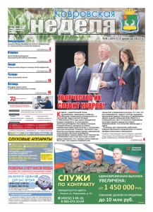12+ Городская информационноаналитическая газета Ковровская др №8 (1055) 3 апреля 2025 г. ) р ( ɇȺ ȾɈɆɍ ȻȿɁ ɋɇəɌɂə ȻȿɁ ɇȺɊɍɒȿɇɂə ɉɅɈɆȻ ɊȺȻɈɌȺȿɆ ɋ ȾɈ ȻȿɁ ɈȻȿȾȺ ɂ ȼɕɏɈȾɇɕɏ ɂɉ ɉȿɌɊɈȼȺ ɘ Ƚ ȺɌɌȿɋɌȺɌ ȺɄɄɊȿȾɂɌȺɐɂɂ 5$ 58 ȼɕȾȺɇ ɝ ȼ ɫɥɭɱɚɟ ɧɟɩɪɢɝɨɞɧɨɫɬɢ ɫɱɟɬɱɢɤɚ ɨɩɥɚɬɚ ɡɚ ɩɨɜɟɪɤɭ ɧɟ ɜɡɢɦɚɟɬɫɹ ÈÌÅÞÒÑß ÏÐÎÒÈÂÎÏÎÊÀÇÀÍÈß. ÏÐÎÊÎÍÑÓËÜÒÈÐÓÉÒÅÑÜ ÑÎ ÑÏÅÖÈÀËÈÑÒÎÌ реклама «КомпСлух» пр-т Ленина, 29 8-904-259-53-83 www. korrekcia-sluha.ru СЛУХОВЫЕ АППАРАТЫ ДИАГНОСТИКА СЛУХА, ПОДБОР, НАСТРОЙКА МИКРОАППАРАТЫ (НЕВИДИМКИ) ПРОДАЖА: батарейки ушные вкладыши тонкие трубочкифильтры вт, ср, чт, пт 11.00 –15.00 время работы Св. ИФНС РФ №8 по Влад.обл. 33 №001587735 страница 4 Ковров – удивительный! Город оружейников, инженеров и рабочих обладает уникальным потенциалом и в творчестве. Еще в начале XX века, в тяжелейшие 20-е годы здесь процветала музыка и живопись. А в последнем десятилетии Ковров стал первым городом в нашей области, который со своим знаменитым оркестром посетил с гастролями маэстро Владимир Спиваков. Причиной тому – богатая культурная среда города, взрощенная поколениями местных художников, хореографов и режиссеров. Тяга к творчеству и понимание искусства настолько сильны среди ковровчан, что, пройдя сквозь тяжелые 90-е годы, они сумели сохранить все городские учреждения культуры. А о том, что они развиваются, говорит хотя бы недавнее присвоение Дворцу Культуры «Современник» звания лучшего среди ДК всей области, в очередной раз. Да и остальные учреждения культуры нашего города постоянно перехватывают это почетное звание друг у друга. В пятницу все творческие работники Коврова принимали поздравления со своим профессиональным праздником. ТВОРЧЕСТВО ИХ СЛАВИТ КОВРОВ! Понедельник Депутат Игорь Игошин об отчете губернатора и о перспективах развития Коврова страница 3 Вторник Золотой фонд Коврова. Праздник работников культуры страница 4 Среда Генеральная уборка в сквере на Октябрьской страница 5 Четверг День рождения музея страница 14 Пятница История одного рода и XXVI Рождественские чтения страница 16 реклама РАБОТА НАД ОШИБКАМИ В прошлом номере при его верстке нами была допущена опечатка. На первой странице, в печатной версии газеты, вместо порядкового номера газеты «1054» было напечатано «1055». На фото: глава Коврова Сергей Сидорин и председатель Совета Елена Фомина награждают директора ДК «Современник» Леонида Чумакова.