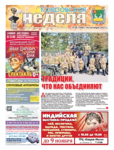 12+ Городская информационно-аналитическая газета Ковровская №38 (1085) 30 октября 2025 г. ГОРОД воинской СЛАВЫ ɇȺ ȾɈɆɍ ȻȿɁ ɋɇəɌɂə ȻȿɁ ɇȺɊɍɒȿɇɂə ɉɅɈɆȻ ɊȺȻɈɌȺȿɆ ɋ ȾɈ ȻȿɁ ɈȻȿȾȺ ɂ ȼɕɏɈȾɇɕɏ ɂɉ ɉȿɌɊɈȼȺ ɘ Ƚ ȺɌɌȿɋɌȺɌ ȺɄɄɊȿȾɂɌȺɐɂɂ 5$ 58 ȼɕȾȺɇ ɝ ȼ ɫɥɭɱɚɟ ɧɟɩɪɢɝɨɞɧɨɫɬɢ ɫɱɟɬɱɢɤɚ ɨɩɥɚɬɚ ɡɚ ɩɨɜɟɪɤɭ ɧɟ ɜɡɢɦɚɟɬɫɹ Þ Ñ Î Î Î Ç ÎÎÑÓË Ó Ñ ÑÎÑ Ö ËÑÎ ÈÌÅÞÒÑß ÏÐÎÒÈÂÎÏÎÊÀÇÀÍÈß. ÏÐÎÊÎÍÑÓËÜÒÈÐÓÉÒÅÑÜ ÑÎ ÑÏÅÖÈÀËÈÑÒÎÌ реклама «КомпСлух» пр-т Ленина, 29 8-904-259-53-83 www. korrekcia-sluha.ru СЛУХОВЫЕ АППАРАТЫ ДИАГНОСТИКА СЛУХА, ПОДБОР, НАСТРОЙКА МИКРОАППАРАТЫ (НЕВИДИМКИ) ПРОДАЖА: батарейки ушные вкладыши тонкие трубочкифильтры вт, ср, чт, пт 11.00 –15.00 время работы Св. ИФНС РФ №8 по Влад.обл. 33 №001587735 День народного единства, отмечаемый 4 ноября, напрямую связан с военными событиями 1612 года. С днем, когда народное ополчение под командованием князя Пожарского и мещанина Минина выгнало из Москвы польских оккупантов. И это событие по справедливости стало символом единения народов России перед лицом общего врага. А еще – символом начала новой эпохи в истории нашей страны. С того момента и до сегодняшних дней ее история ознаменована победами над многочисленными врагами России. Преклонение перед подвигом павших за свободу Родины героев и память о славных победах русского оружия – то, что объединяет граждан России. Так же объединяет, как и воспитание будущих защитников Отечества – русская традиция, передающаяся из поколение в поколение. О том, как она поддерживается нашими современниками из организации «Наследники Победы», читайте в этом номере. реклама ТРАДИЦИИ, ЧТО НАС ОБЪЕДИНЯЮТ страница 10 реклама ДО 9 НОЯБРЯ ТРЦ «Ковров-Молл» ул. Лопатина, 7а 1 этаж 6+ с 10.00 до 19.00 Чай, косметика, одежда, текстиль, украшения, сувениры, рис, приправы, и многое другое ДКиТ «Родина» ул. Волго-Донская, 1 А 2 ноября в 12.00 Цена билета – от 600 руб. Детям до 4 лет – вход свободный реклама
