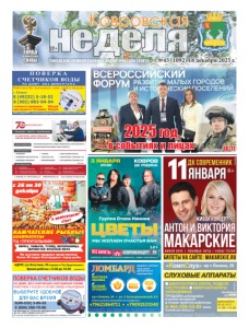 12+ Городская информационно-аналитическая газета Ковровская №45 (1092) 18 декабря 2025 г. ГОРОД воинской СЛАВЫ ɇȺ ȾɈɆɍ ȻȿɁ ɋɇəɌɂə ȻȿɁ ɇȺɊɍɒȿɇɂə ɉɅɈɆȻ ɊȺȻɈɌȺȿɆ ɋ ȾɈ ȻȿɁ ɈȻȿȾȺ ɂ ȼɕɏɈȾɇɕɏ ɂɉ ɉȿɌɊɈȼȺ ɘ Ƚ ȺɌɌȿɋɌȺɌ ȺɄɄɊȿȾɂɌȺɐɂɂ 5$ 58 ȼɕȾȺɇ ɝ ȼ ɫɥɭɱɚɟ ɧɟɩɪɢɝɨɞɧɨɫɬɢ ɫɱɟɬɱɢɤɚ ɨɩɥɚɬɚ ɡɚ ɩɨɜɟɪɤɭ ɧɟ ɜɡɢɦɚɟɬɫɹ ÈÌÅÞÒÑß ÏÐÎÒÈÂÎÏÎÊÀÇÀÍÈß. ÏÐÎÊÎÍÑÓËÜÒÈÐÓÉÒÅÑÜ ÑÎ ÑÏÅÖÈÀËÈÑÒÎÌ реклама «КомпСлух» пр-т Ленина, 29 8-904-259-53-83 www. korrekcia-sluha.ru СЛУХОВЫЕ АППАРАТЫ ДИАГНОСТИКА СЛУХА, ПОДБОР, НАСТРОЙКА МИКРОАППАРАТЫ (НЕВИДИМКИ) ПРОДАЖА: батарейки ушные вкладыши тонкие трубочкифильтры вт, ср, чт, пт 11.00 –15.00 время работы Св. ИФНС РФ №8 по Влад.обл. 33 №001587735 реклама : +79621864711 • +79092533340 !- " # # , 29 • . . %&# ' , 5/1 " ()* : ;<= *> * . Freepik – Flaticon !"#$ %! & " % !' %( ! )* + %$ реклама 2025 год в событиях и лицах страницы 10-11 АДРЕС: ул. Ватутина, 59 (справа от ТЦ «Треугольник») Время работы: с 9.00 до 18.00 ÍÅÐÊÀ, ×ÀÂÛ×À, ÒÓÍÅÖ, ÁÅËÎÐÛÁÈÖÀ, ÇÅÐÍÈÑÒÀß ÊÐÀÑÍÀß ÈÊÐÀ Íà âûñòàâêå-ïðîäàæå ïðåäñòàâëåíû áîëåå 20 âèäîâ áëàãîðîäíûõ ïîðîä ðûáû реклама 0+ ñ 26ïî30 äåêàáðÿ ÊÀÌ×ÀÒÑÊÈÅ ÐÛÁÍÛÅ ÄÅËÈÊÀÒÅÑÛ ТЦ «ТРЕУГОЛЬНИК» Ê ÍÎÂÎÃÎÄÍÅÌÓ ÑÒÎËÓ ÐÛÁÍÛÅ реклама ООО «СервисПОС», аттестат аккредитации № RA.RU.314409 от 06.01.2023 г. стоимость проверки: 500 руб. при заказе от 10 заявок: 450 руб. реклама 6+